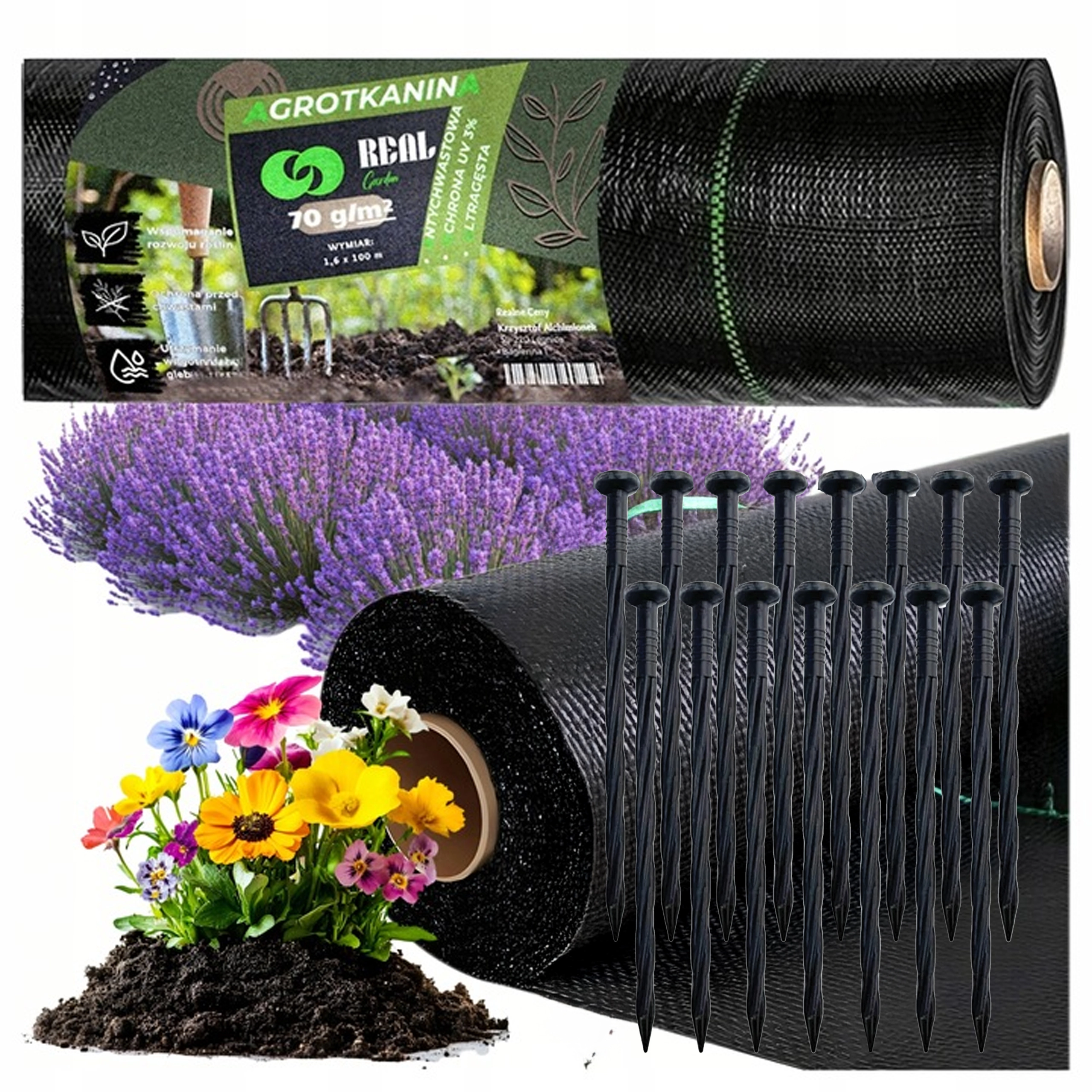 Praktisk have-agrotekstiler i sort med vægt på 70 g og mål 1,6 × 100 m, som effektivt hæmmer ukrudtsvækst, beskytter beplantning og muliggør nem bark- eller sten-muldning. Den robuste UV-stabilisering sikrer lang levetid. Leveres med haveankre for hurtig installation.