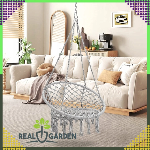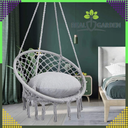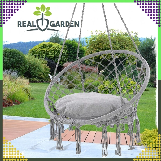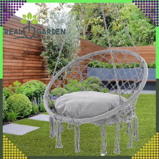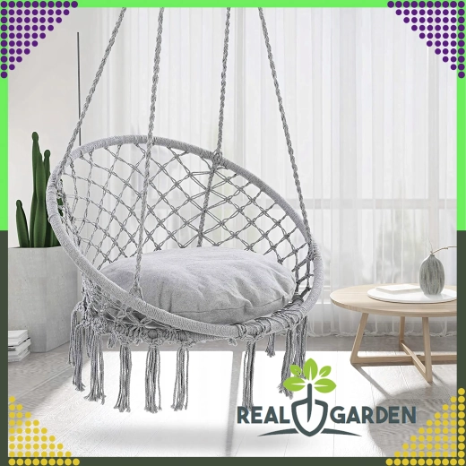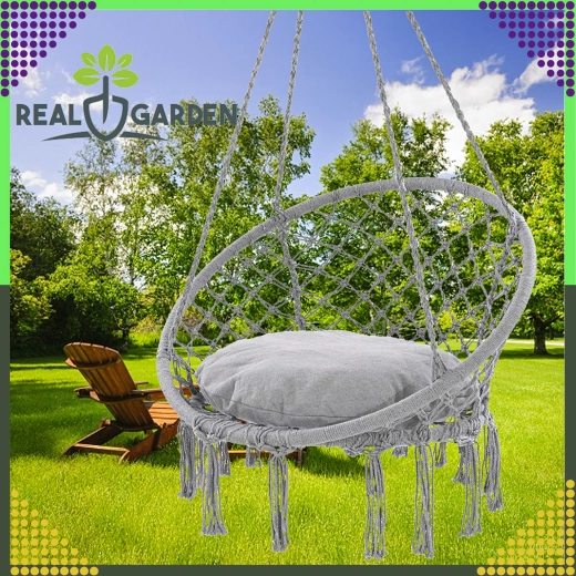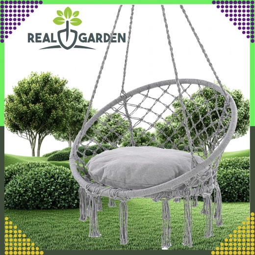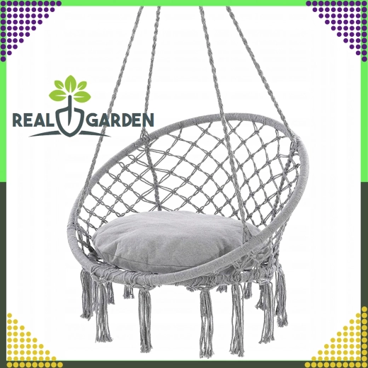 Stilfuld hængestol af typen storkerede til have, altan og indendørs med behagelig gyngning, robust konstruktion og nem montering. I pakken er der en pude for ekstra komfort, og alt er lavet af stærkt, åndbart stof med bæreevne op til 150 kg.