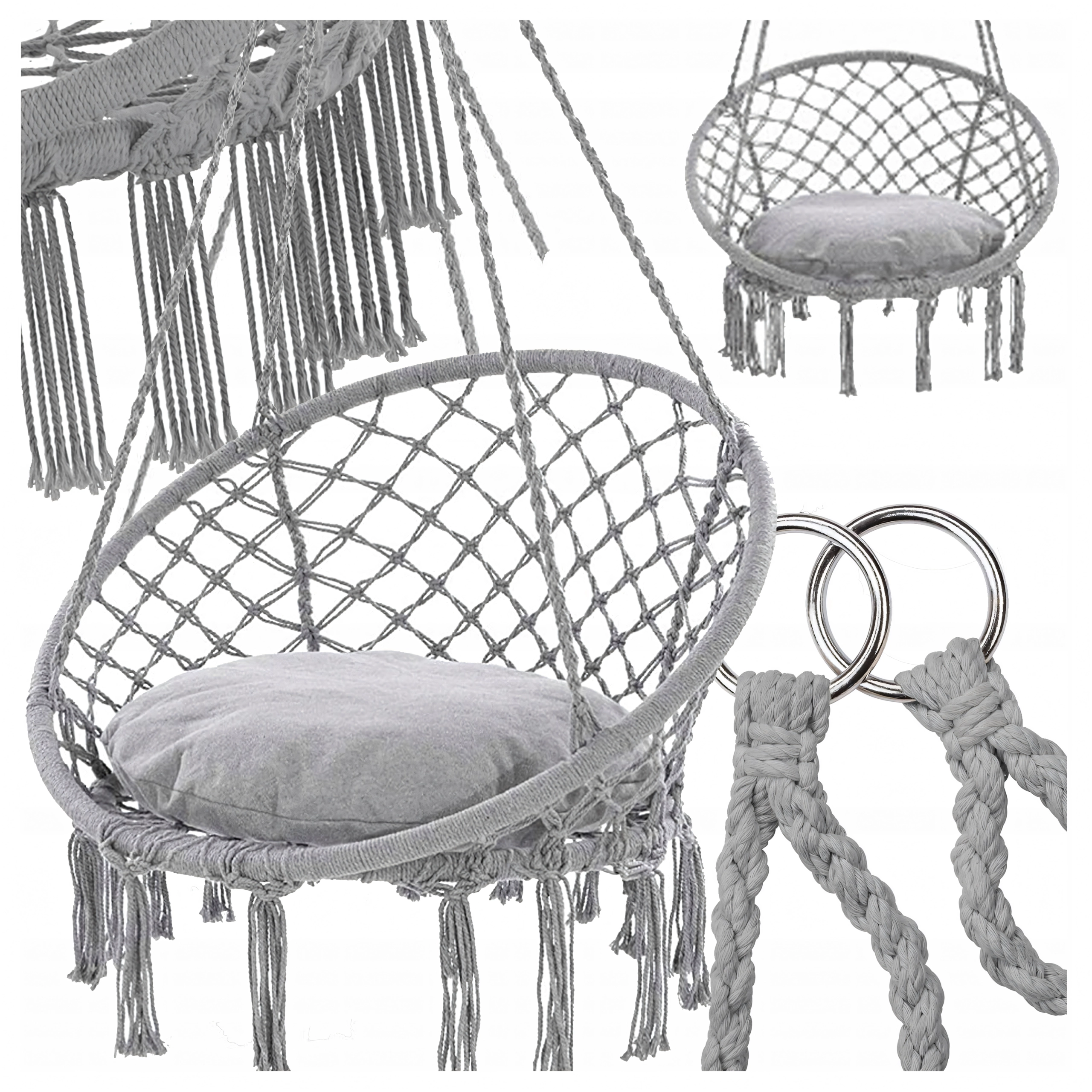 Monteringen er hurtig og fleksibel: vælg klassisk ophæng for gyngning frem og tilbage, eller forbind de to ophæng og nyd blid rotation ideel til læsning. Puden i pakken øger komforten, så din hvile bliver endnu mere behagelig.