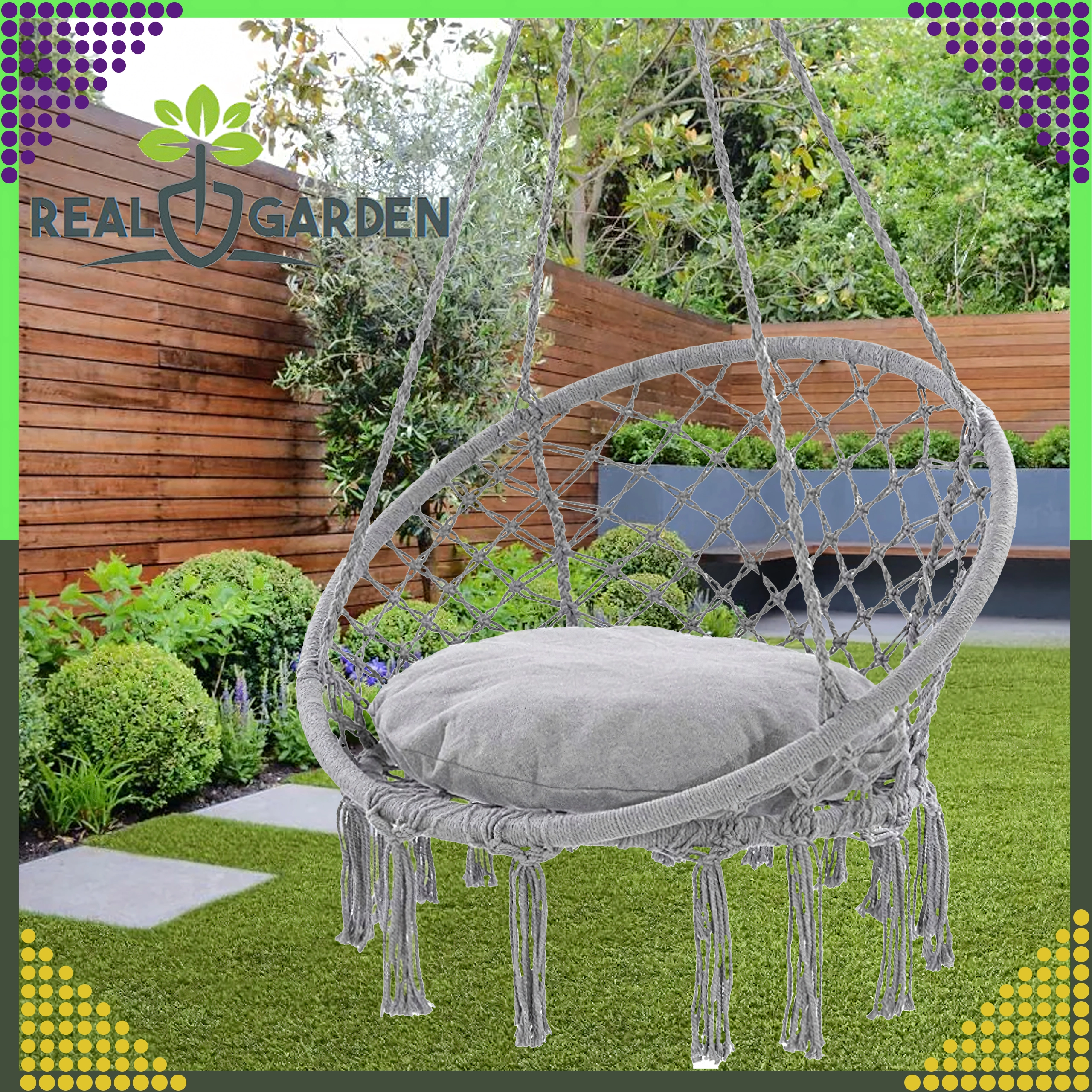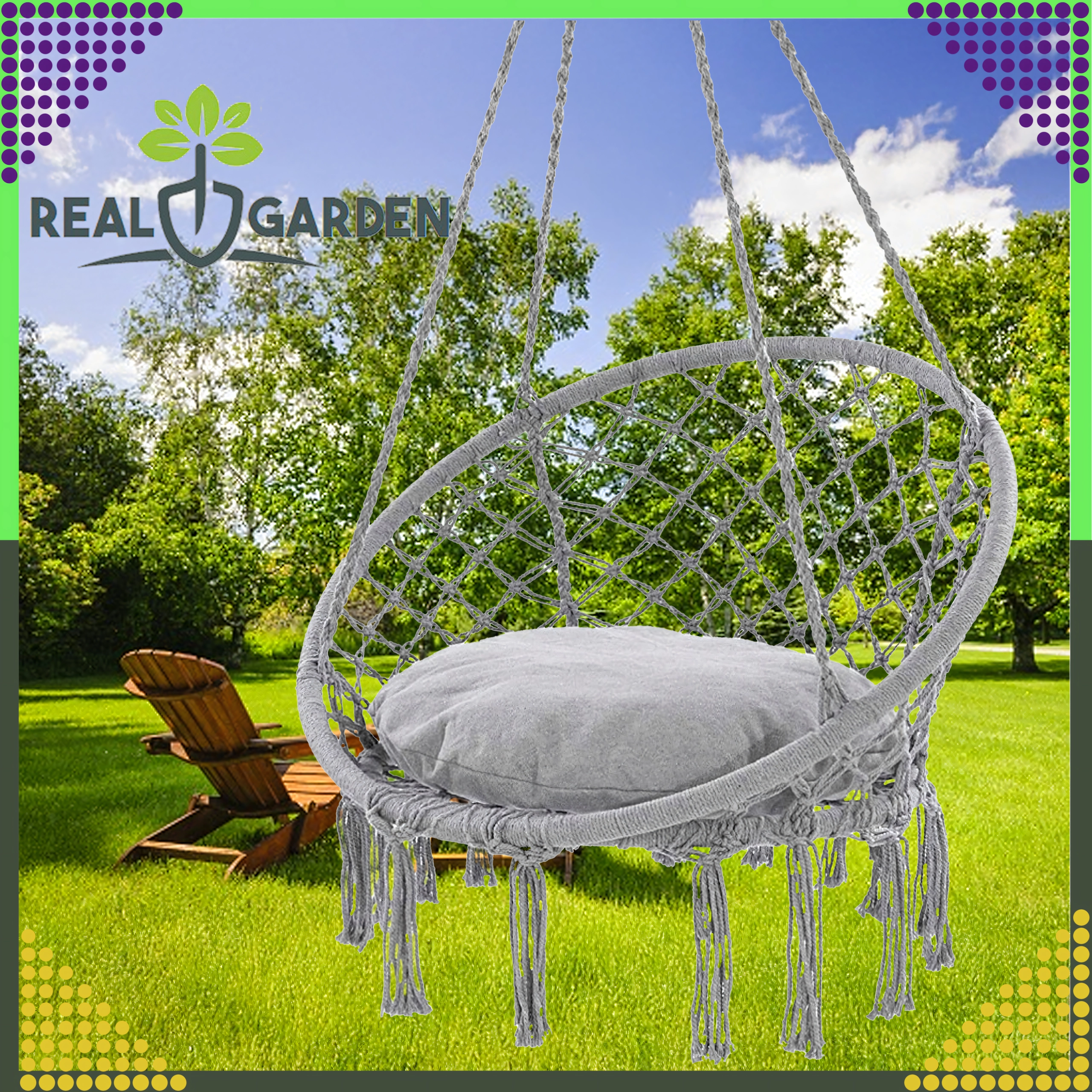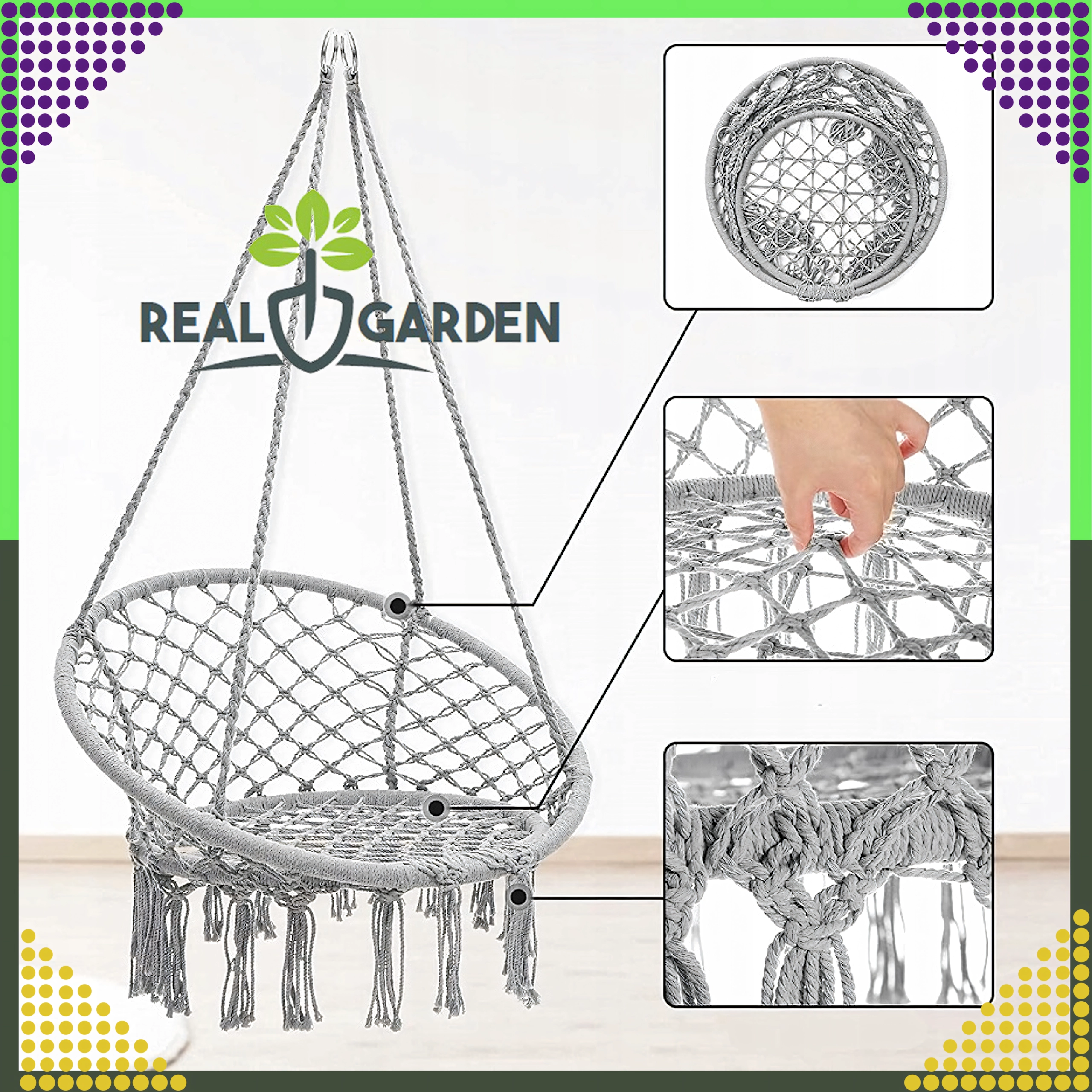 Nyd afslapning i den hængende rede, som med sit moderne boho-look passer i stuen, på terrassen, altanen og på rejser. Stærke snore og robust, åndbart bomuldsstof sikrer stabilitet og komfort selv ved længere tids siddning.