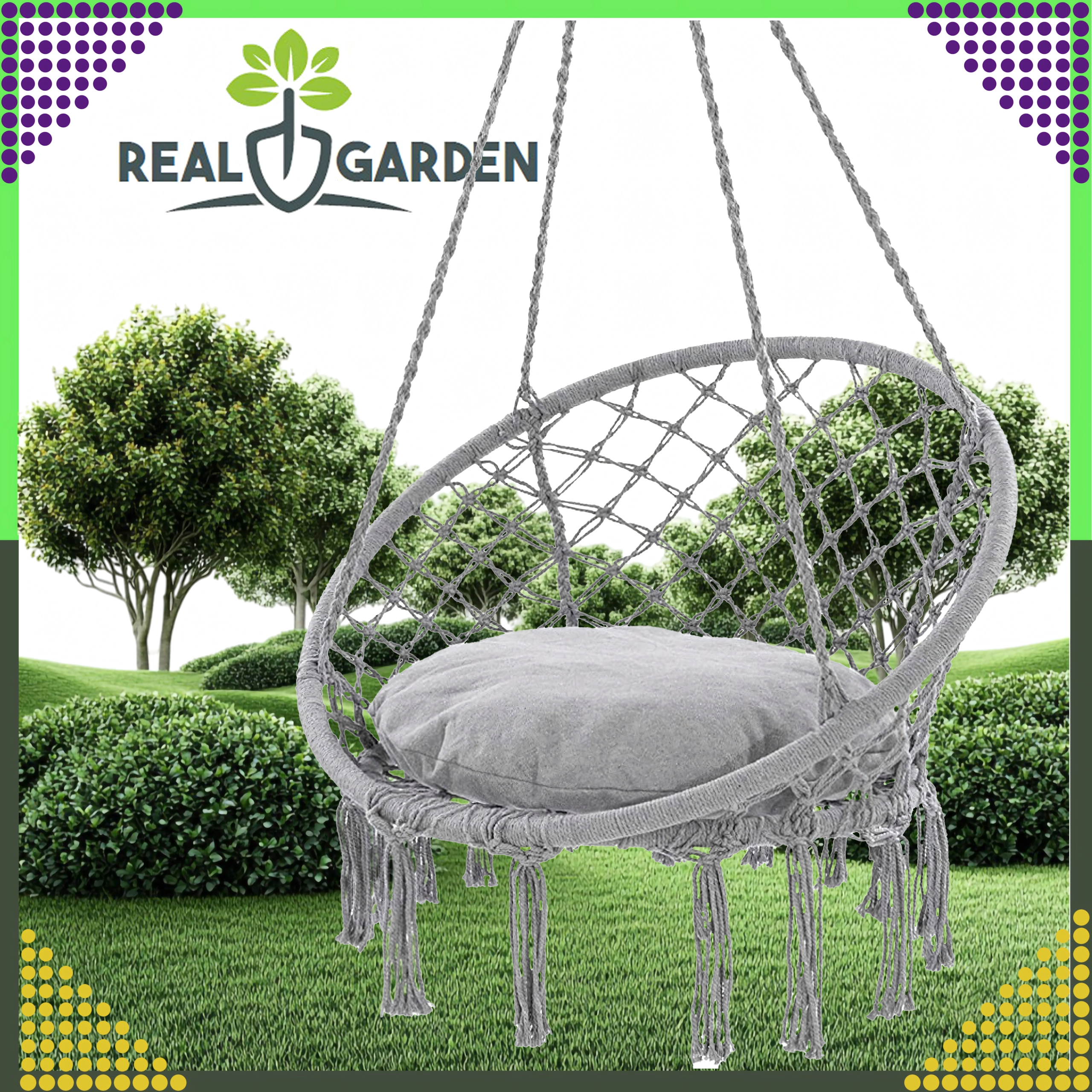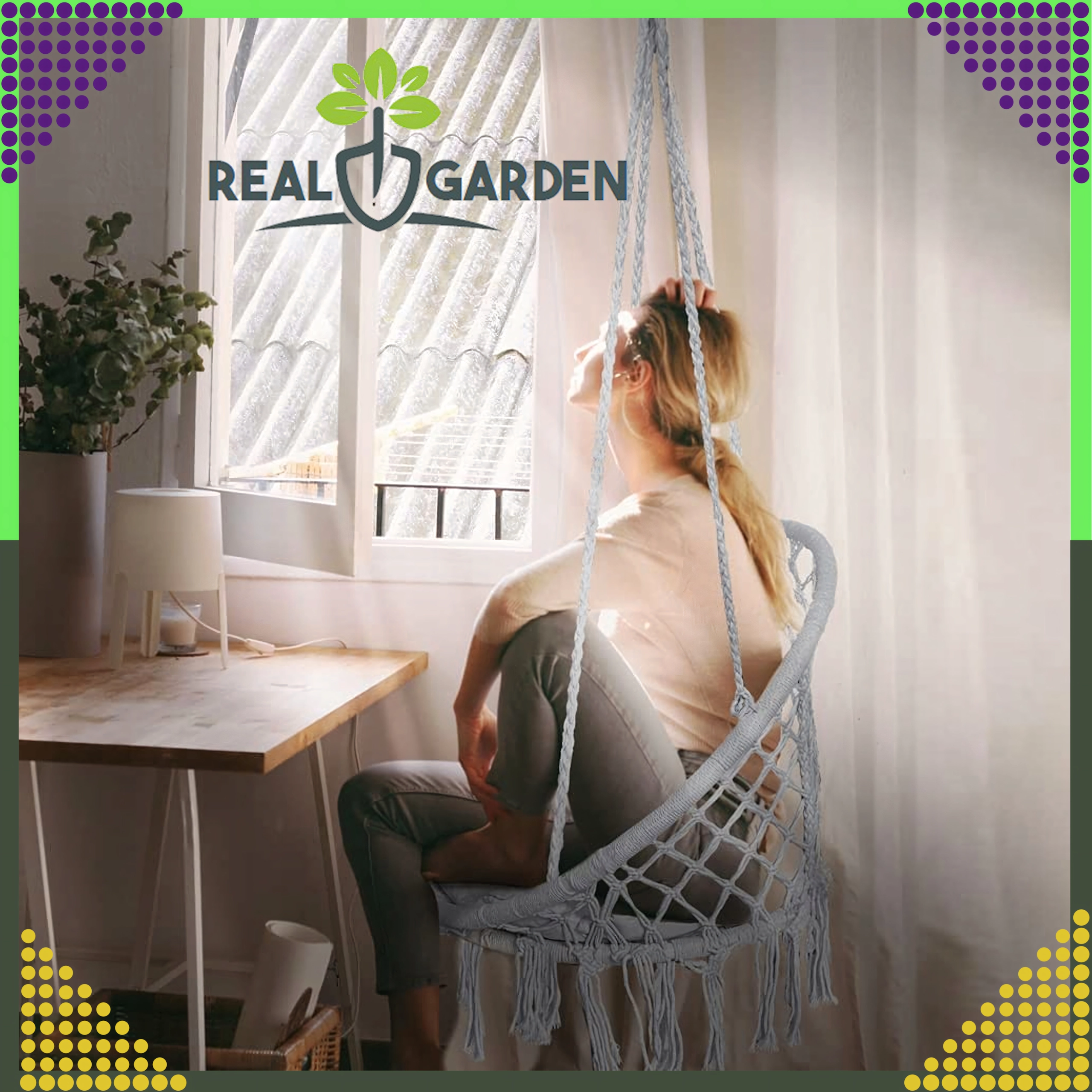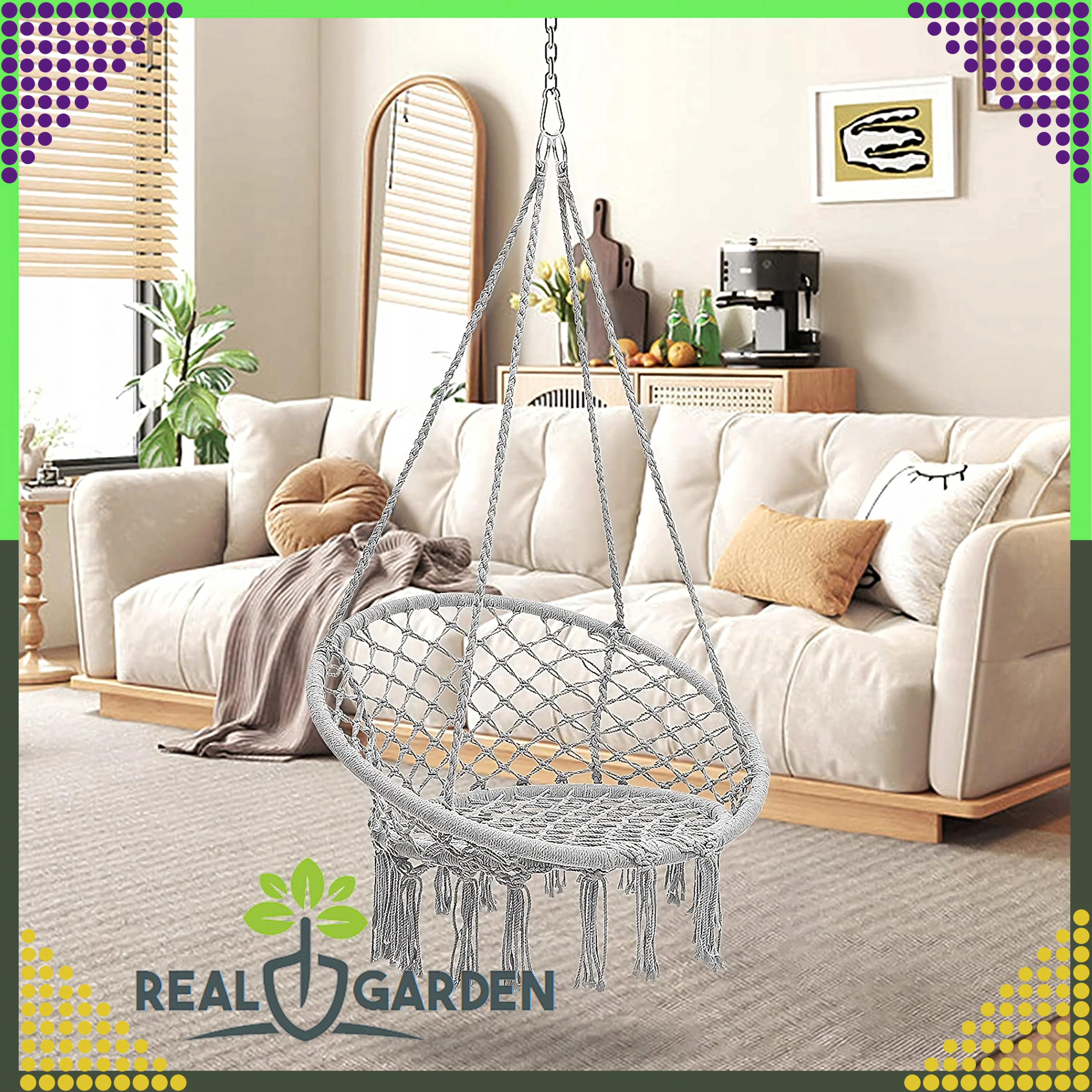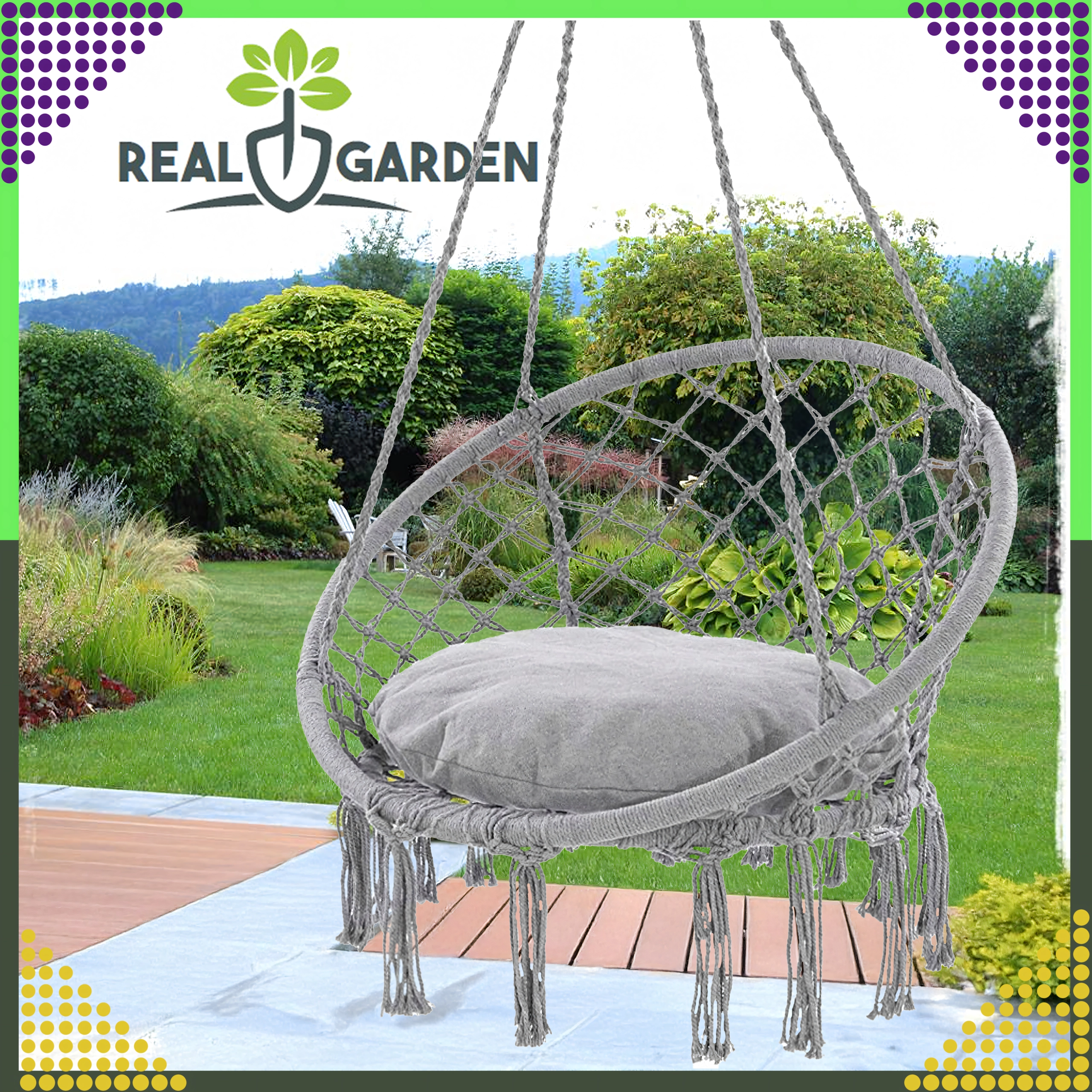 Nyd afslapning i den hængende rede, som med sit moderne boho-look passer i stuen, på terrassen, altanen og på rejser. Stærke snore og robust, åndbart bomuldsstof sikrer stabilitet og komfort selv ved længere tids siddning.