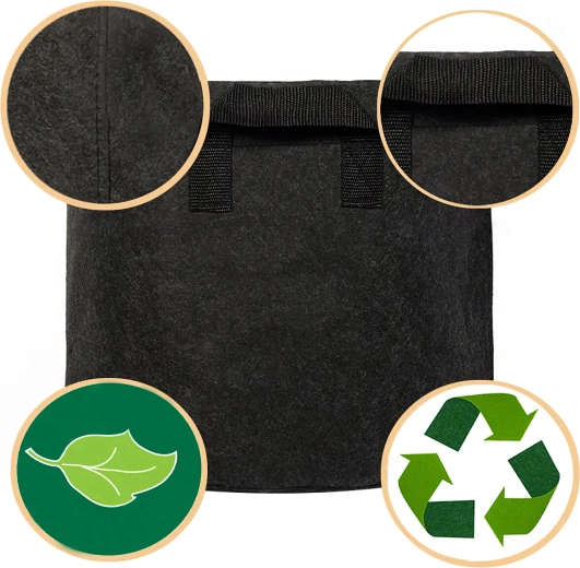 Den tekstile dyrkningspotte af slidstærkt filt-/fiberstof hjælper planter med at udvikle et stærkt rodsystem takket være den gode luftcirkulation. Materialet holder naturligt en gunstig temperatur – køler i varme og isolerer i kulde – og understøtter dermed kraftig vækst og rig høst. To solide hanke gør det nemt at håndtere og flytte planterne efter vejr- eller lysforhold.