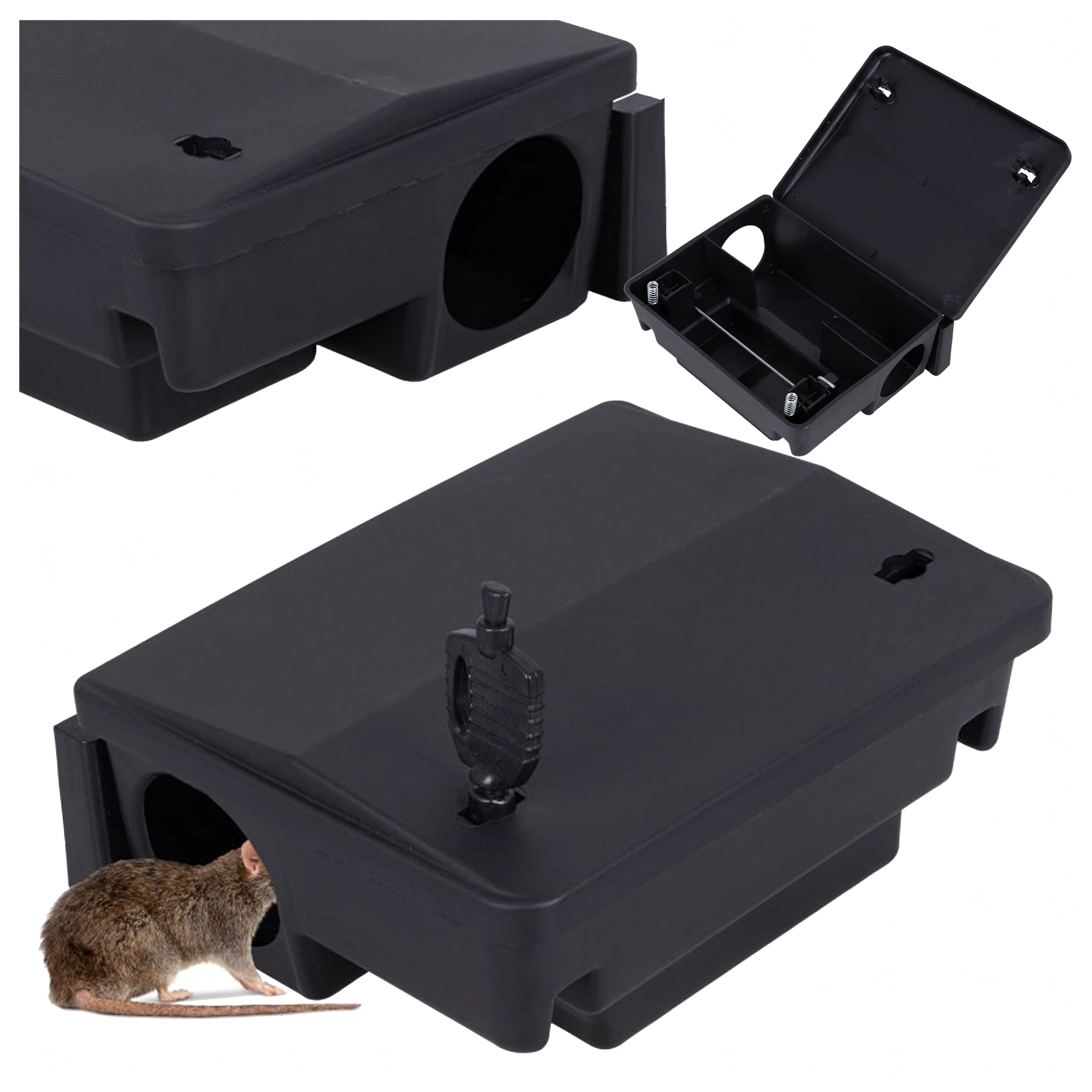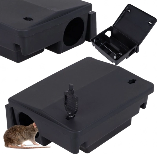 Den låsbare foderstation til gnavere gør det muligt sikkert at opbevare gift (agn ikke inkluderet) og lokke skadedyr med duft direkte ind i stationen. Den robuste konstruktion af PP-plast sikrer høj modstandsdygtighed, nem vedligeholdelse og lang levetid, både i hjem, lagre, garager og drift.