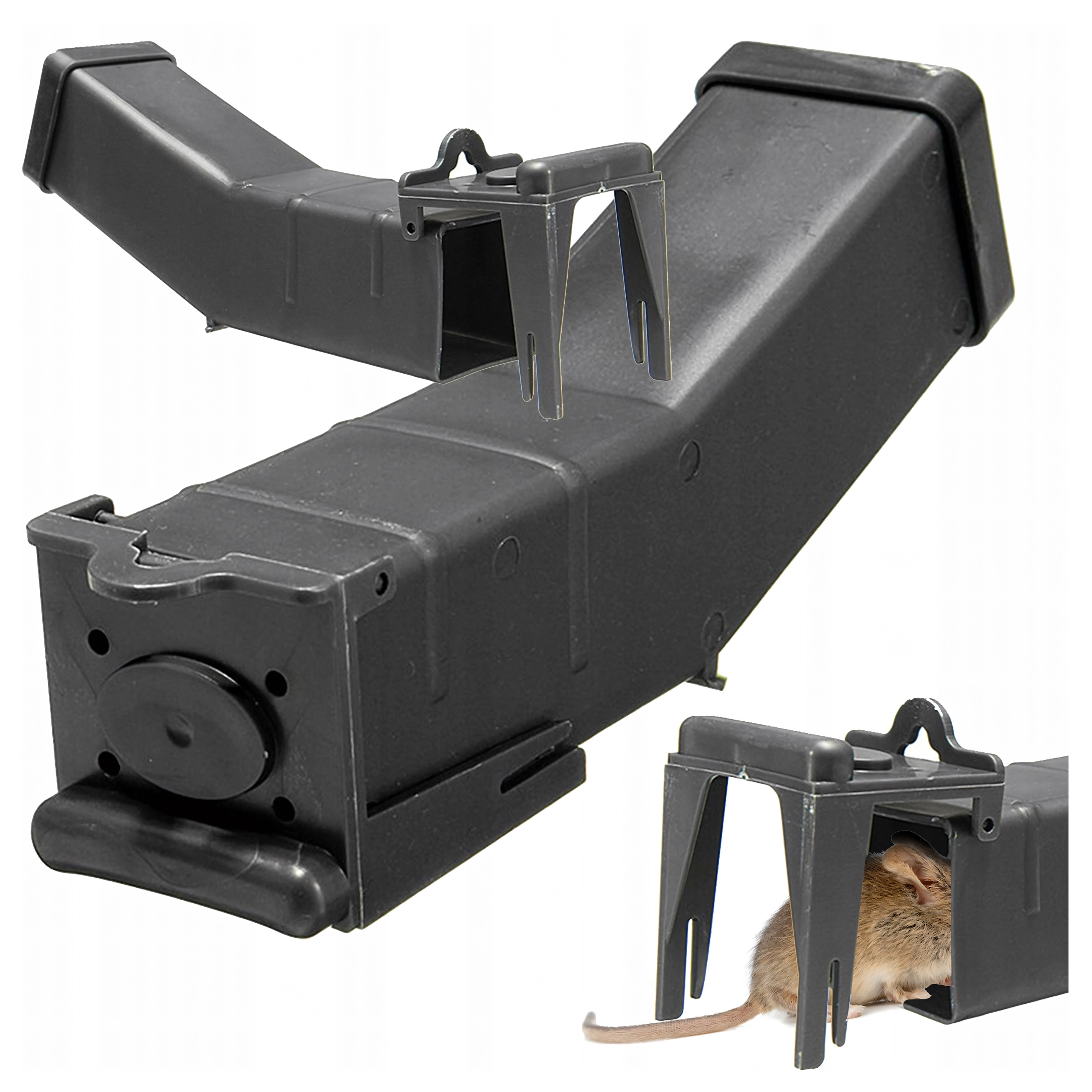 Humanitær levende-fælde er en praktisk og etisk løsning til at slippe af med skadedyr uden brug af gift. Takket være den gennemtænkte tunnelkonstruktion lokker den gnavere ind, lukker dem sikkert inde og muliggør udsætning tilbage i naturen. Holdbar udførelse i plast sikrer pålidelighed og enkel vedligeholdelse.