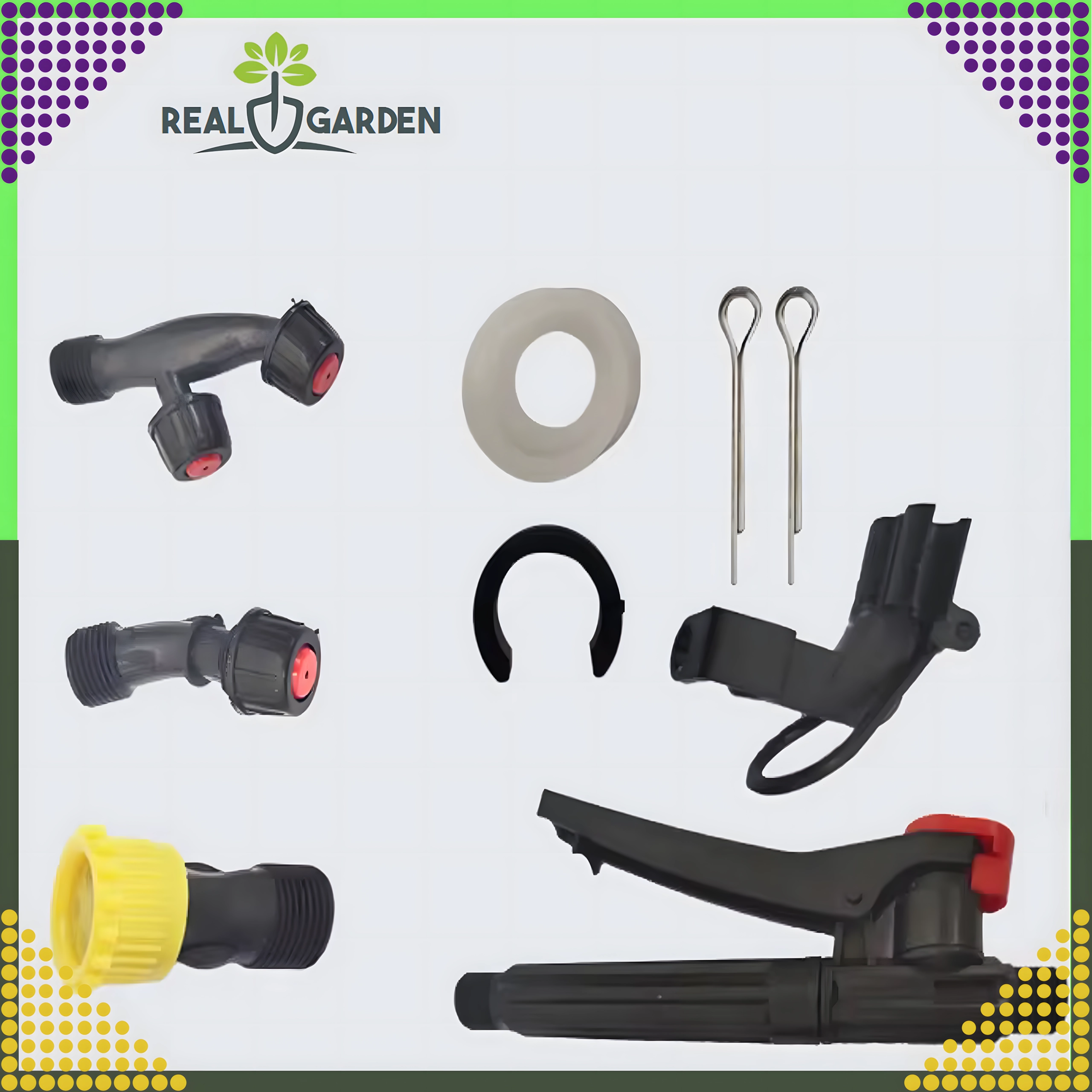 - Udskiftelige dyser til forskellige sprøjtemønstre (tåge, stråle, spredning).