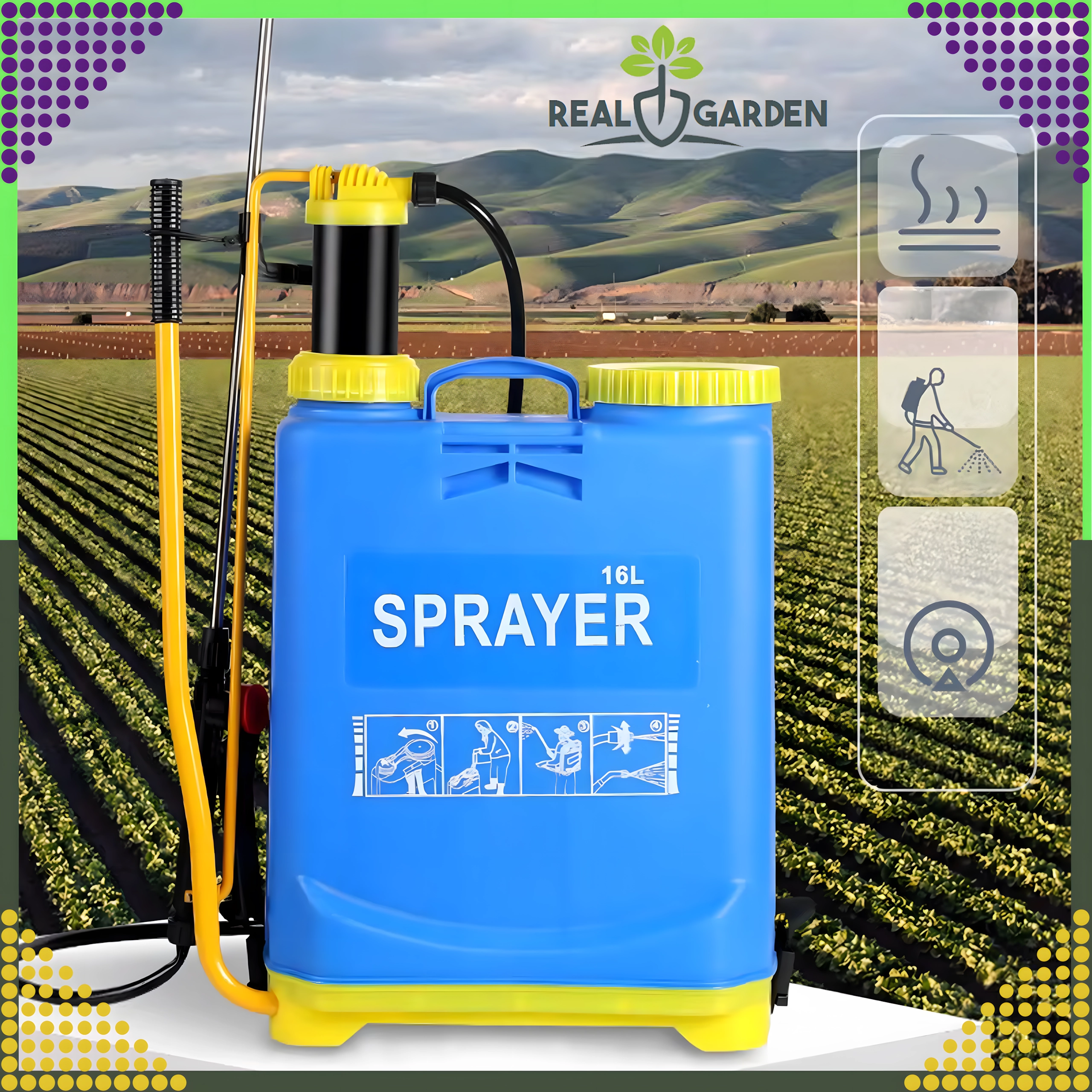 Sprøjten er ideel til påføring af herbicider, fungicider, insekticider og flydende gødning. Den ergonomiske konstruktion med justerbare seler reducerer træthed i ryg og skuldre ved længere arbejde.