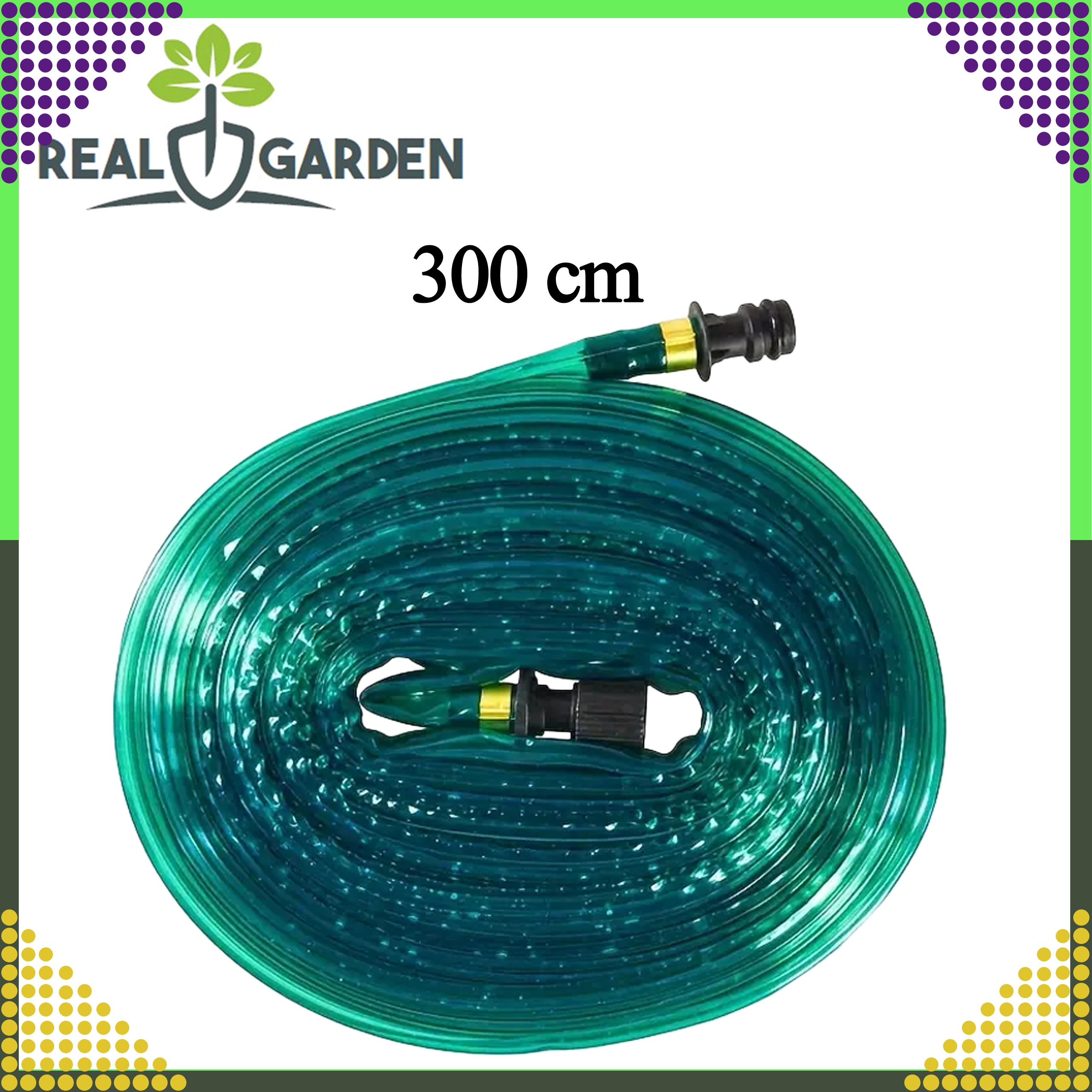Slangen er fleksibel, nem at lægge langs planterne eller under muld, og den tilsluttes ved hjælp af lynkoblinger til almindelige havesystemer. Ideel til haver, drivhuse og bede, hvor der er behov for jævn drypvanding.