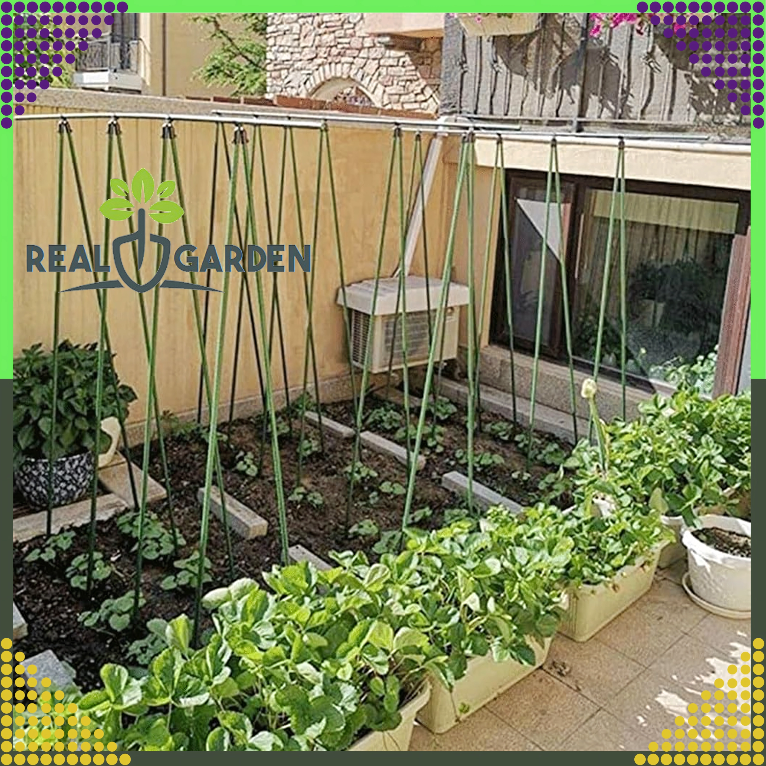 Støtte af klatreplanter, drivhuse, bede