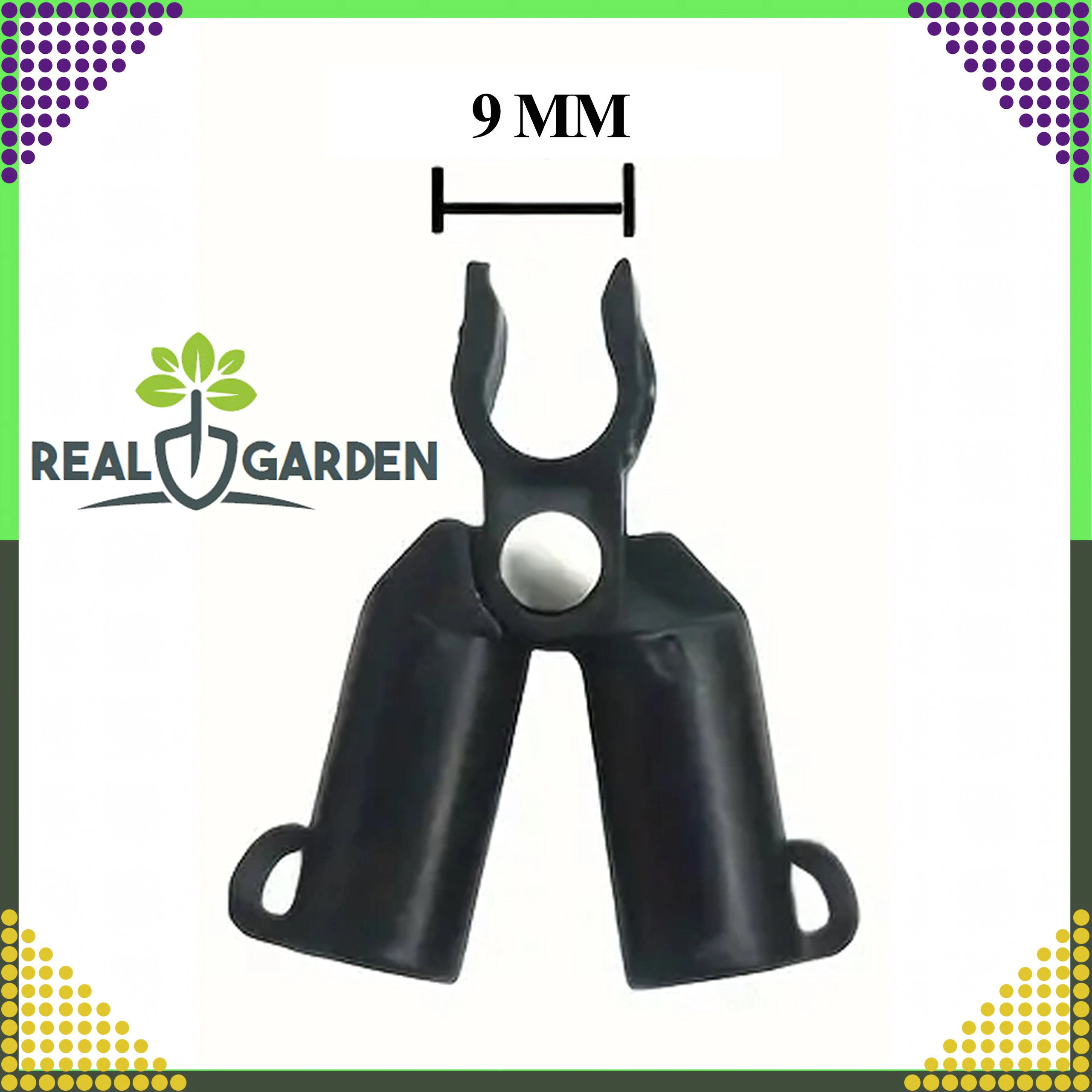 Praktisk top-leddet T-samling fra Real Garden til stænger med en diameter på 9 mm, i en pakke med 10 stk. Ideel til at skabe støtte for klatreplanter og stabile konstruktioner i drivhus og på bed. Fremstillet af holdbar plast og metal for lang levetid og pålidelig stabilitet.