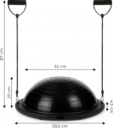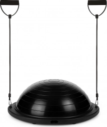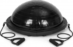 Takket være træningsmuligheder på begge sider og de fastgjorte modstandsbånd kan du udføre balance- og stabilitetsøvelser, coretræning samt trækøvelser for overkroppen. Efter træning kan halvkuglen let foldes til et kompakt format og opbevares under sengen eller i skabet. Fodpumpen med to mundstykker gør det nemt at pumpe op og tømme hurtigt.
