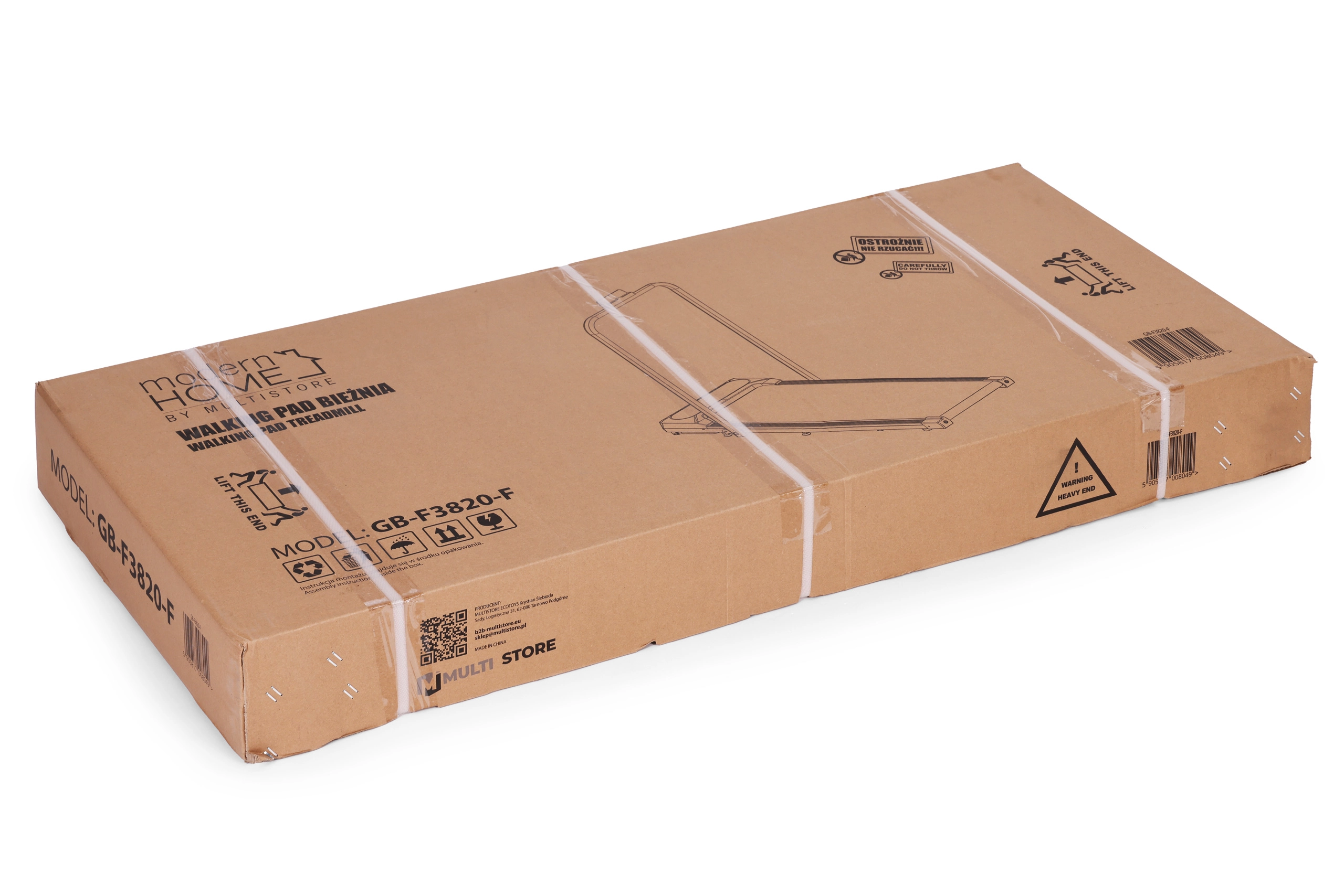 En robust kasse med forstærkede bånd beskytter gangbåndet under transport og opbevaring.
