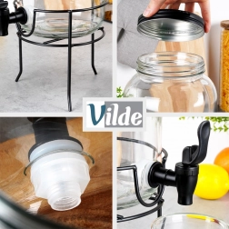 Det matte sorte skruelåg beskytter drikken mod insekter og snavs, og hanen med pakning sikrer jævn dosering.