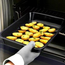 Takket være de høje kanter er den ideel til saftigt kød, gratiner, tærter med fyld og kartofler – uden risiko for overløb. Den universelle størrelse passer fint i de fleste husholdningsovne og giver en pålidelig ydeevne til daglig bagning.