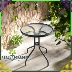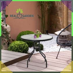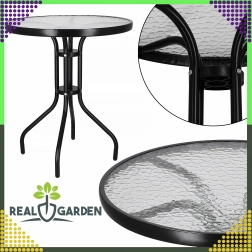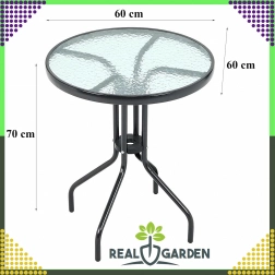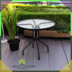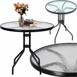Tilfør stil og funktionalitet til din udendørs hyggekrog. Det runde bord med en diameter på 60 cm er ideelt til morgenkaffen, eftermiddagsteen og aftenafslapning. Hærdet glas er sikkert, nemt at rengøre og imponerer med en dekorativ effekt, der minder om bølgende vand.