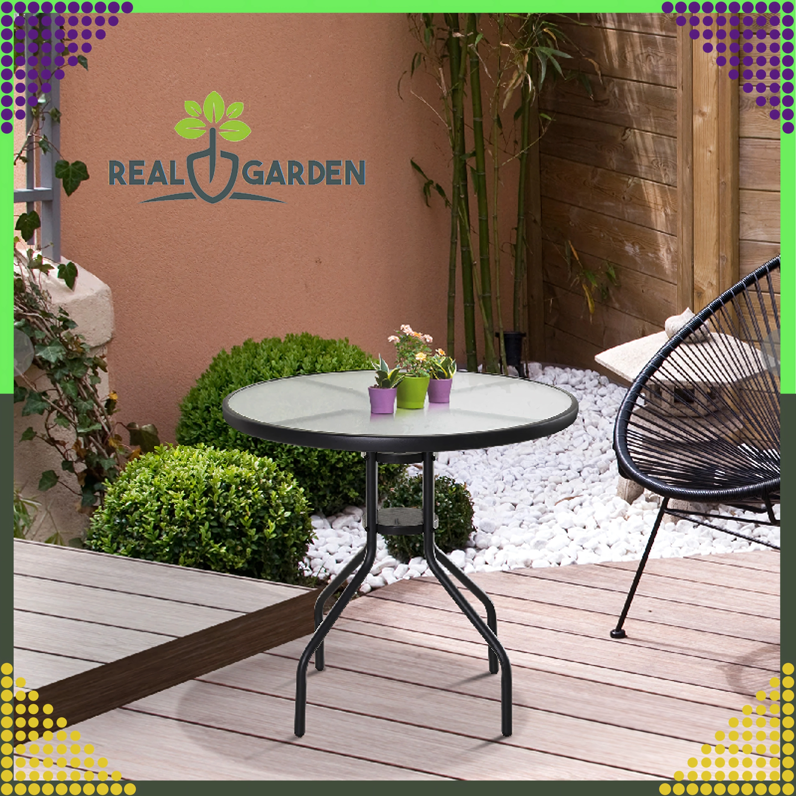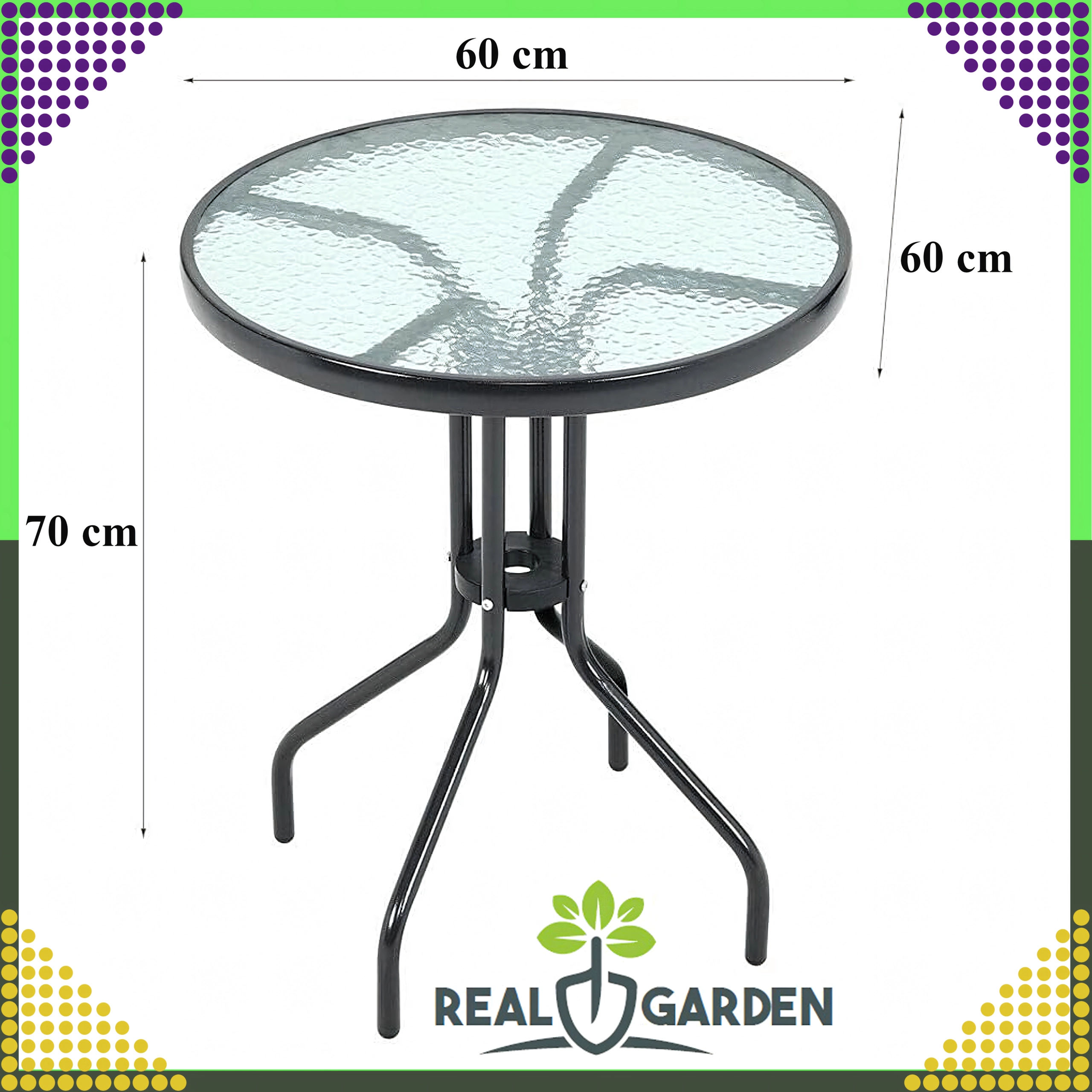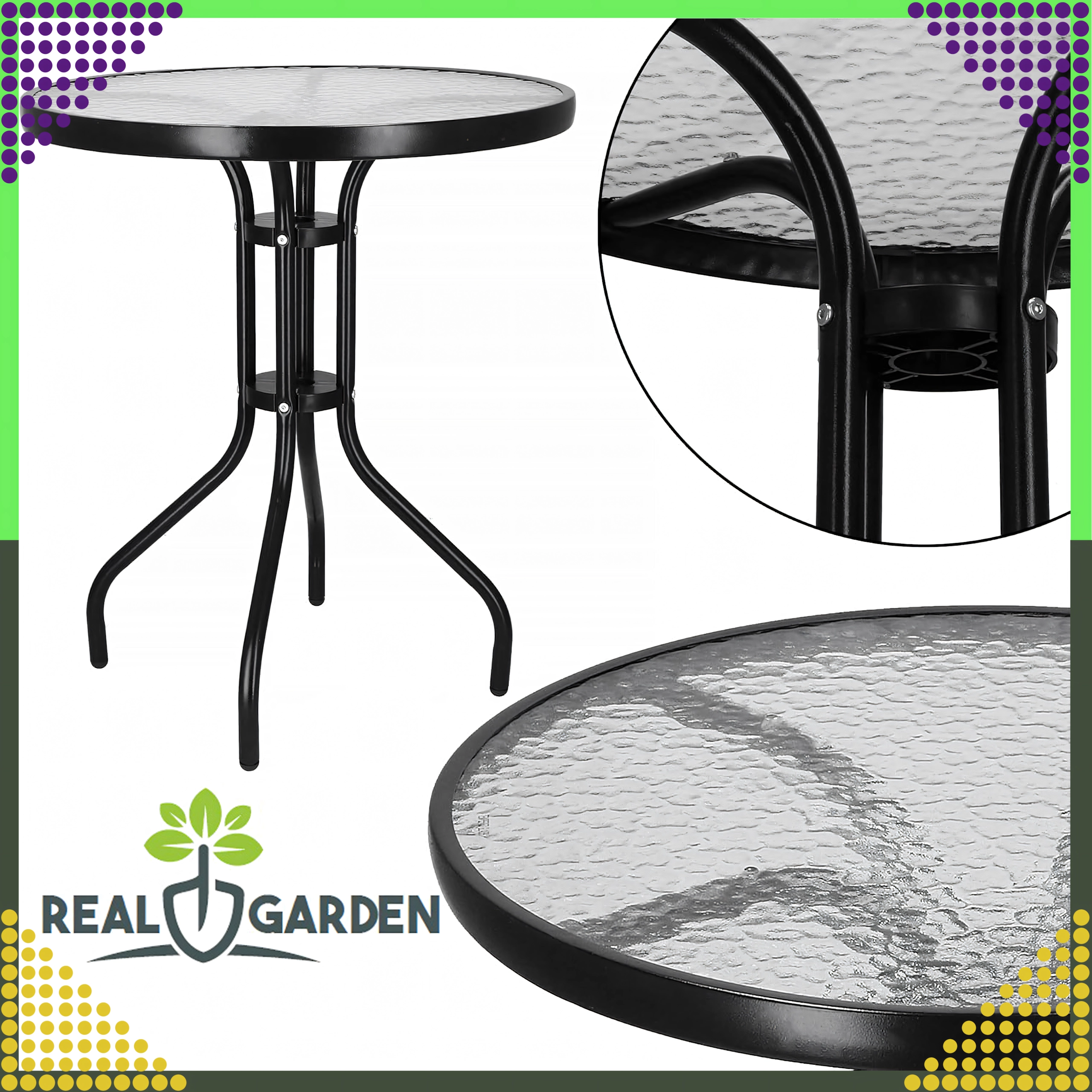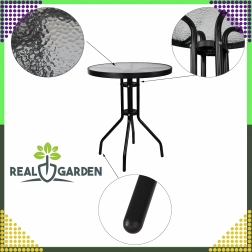 Den robuste ramme af stål med pulverlakering giver stabilitet og beskytter mod korrosion, så bordet er ideelt til udendørs brug – altan, terrasse, patio og have. Takket være den alsidige sorte farve matcher det det meste havemøblement og fremstår moderne og elegant.
