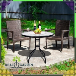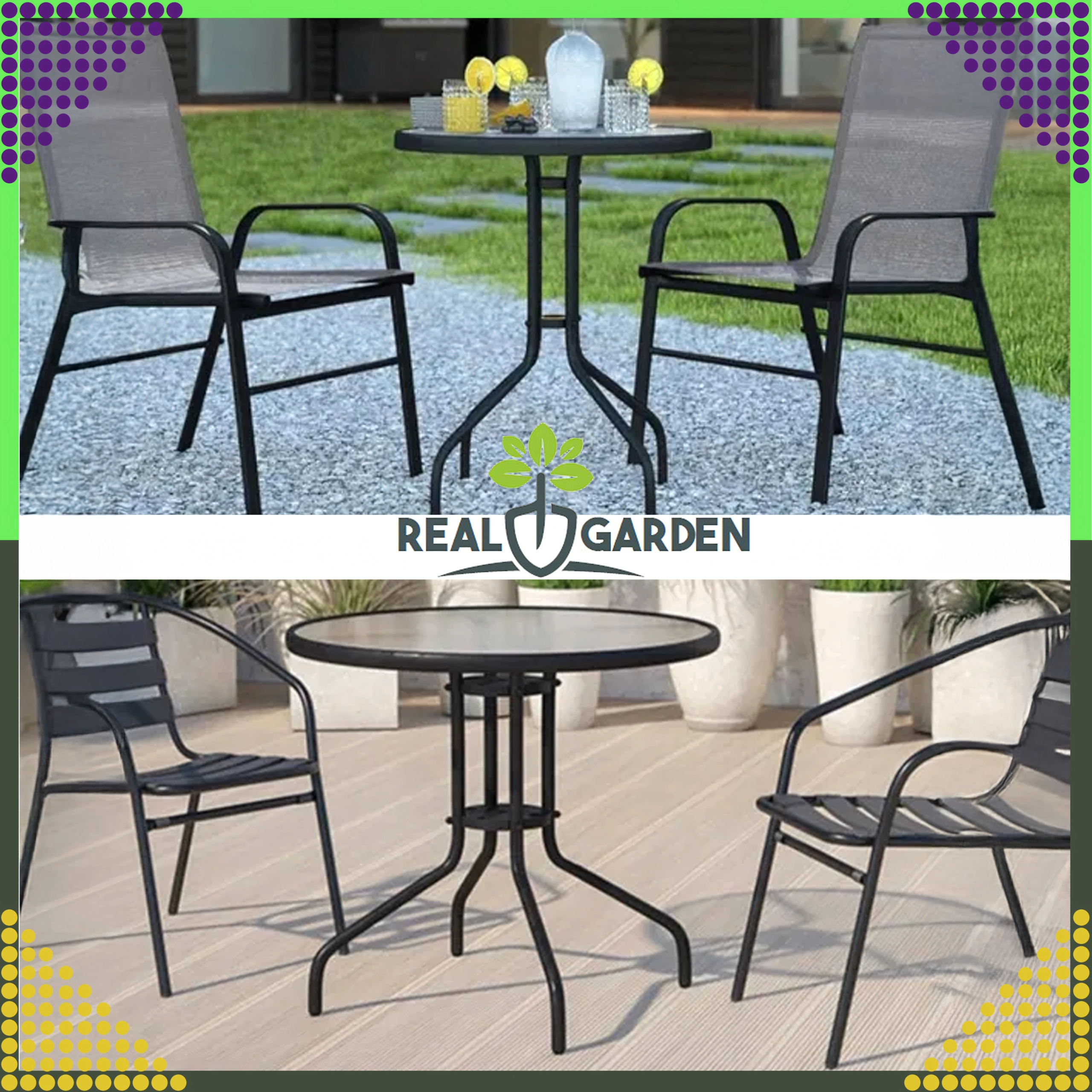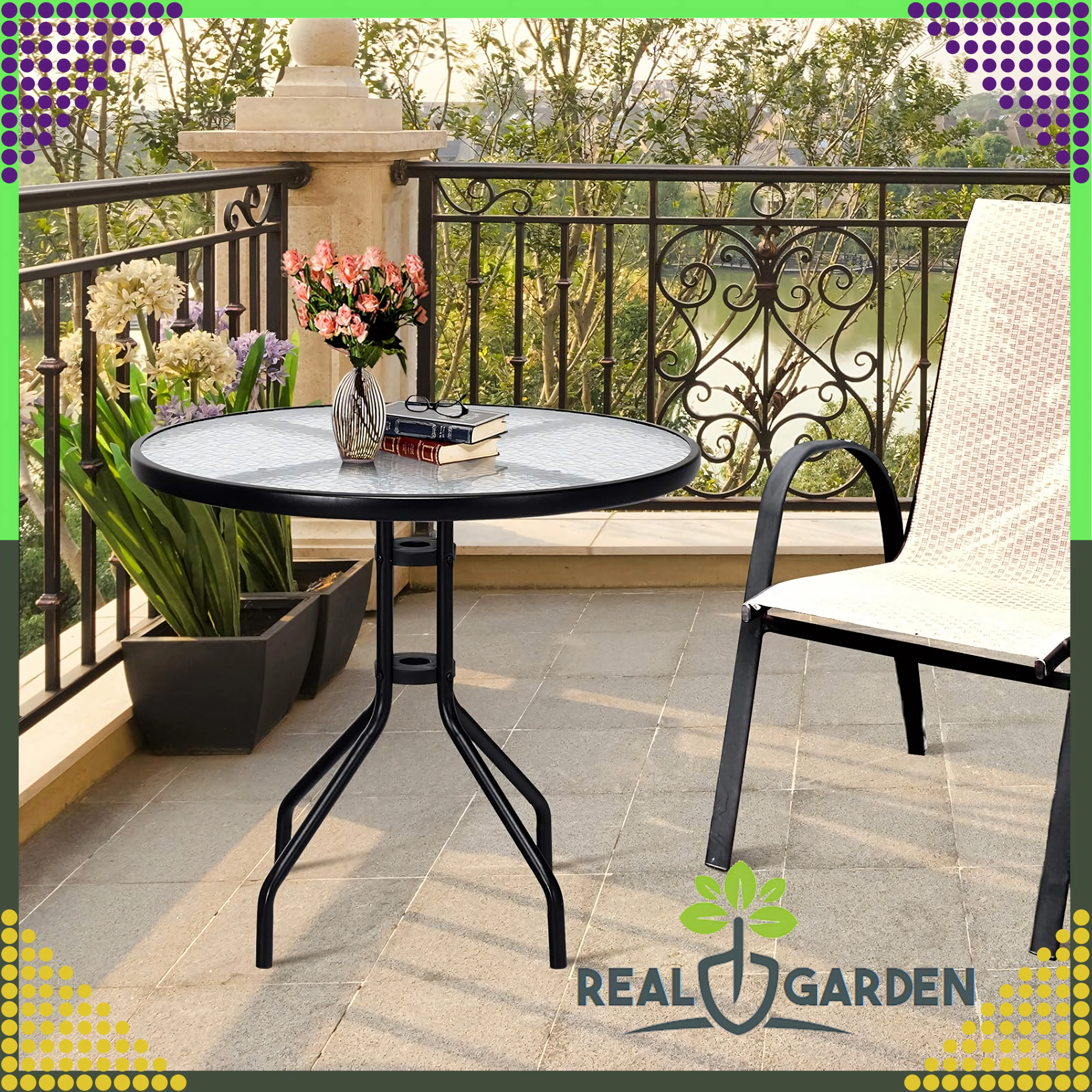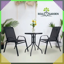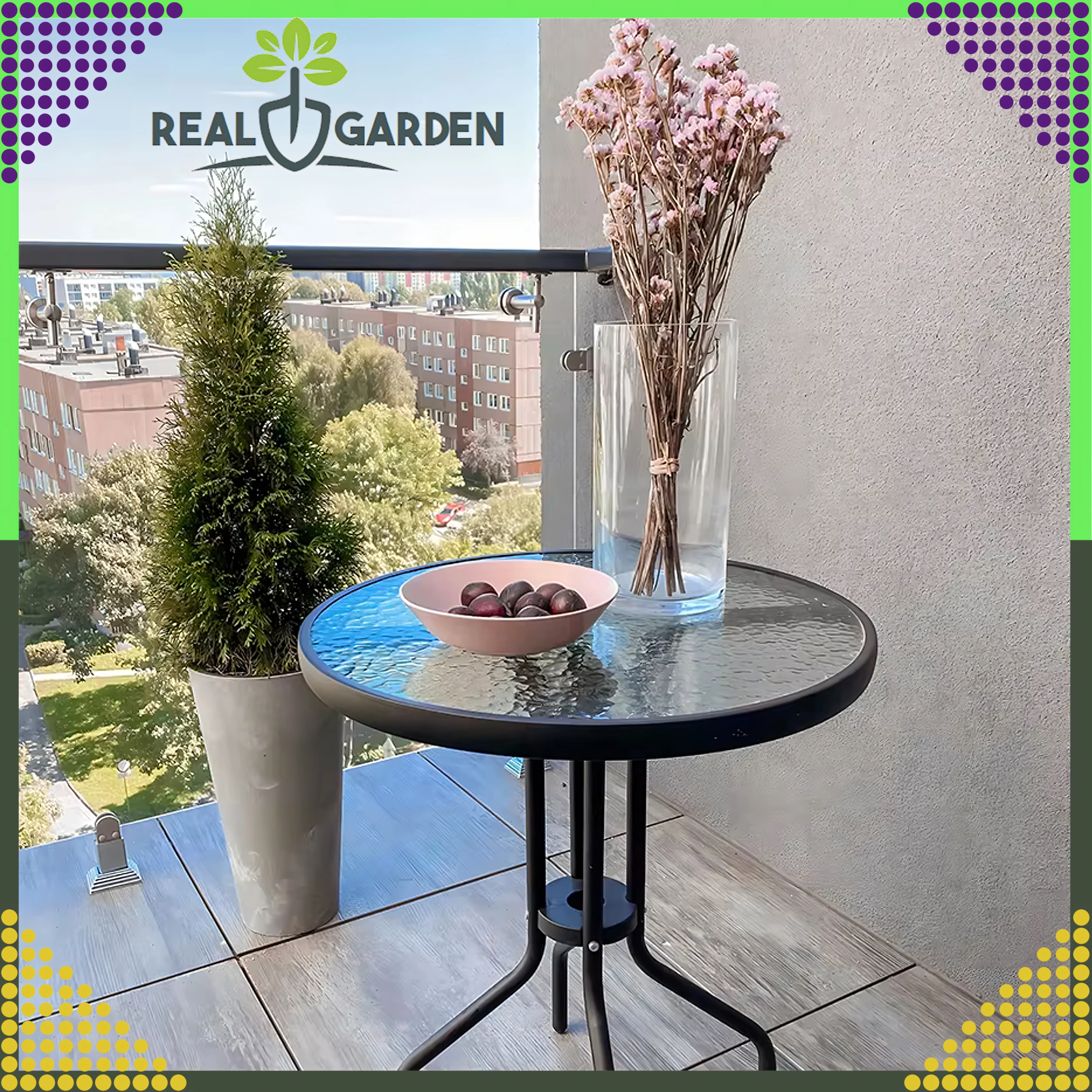Den robuste ramme af stål med pulverlakering giver stabilitet og beskytter mod korrosion, så bordet er ideelt til udendørs brug – altan, terrasse, patio og have. Takket være den alsidige sorte farve matcher det det meste havemøblement og fremstår moderne og elegant.