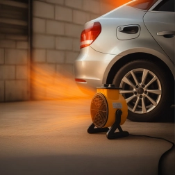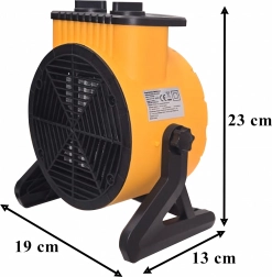 Det stabile, vippende stativ og det integrerede håndtag gør det muligt at lede luftstrømmen præcist derhen, hvor du har brug for den – på badeværelset, i værkstedet eller i garagen.
