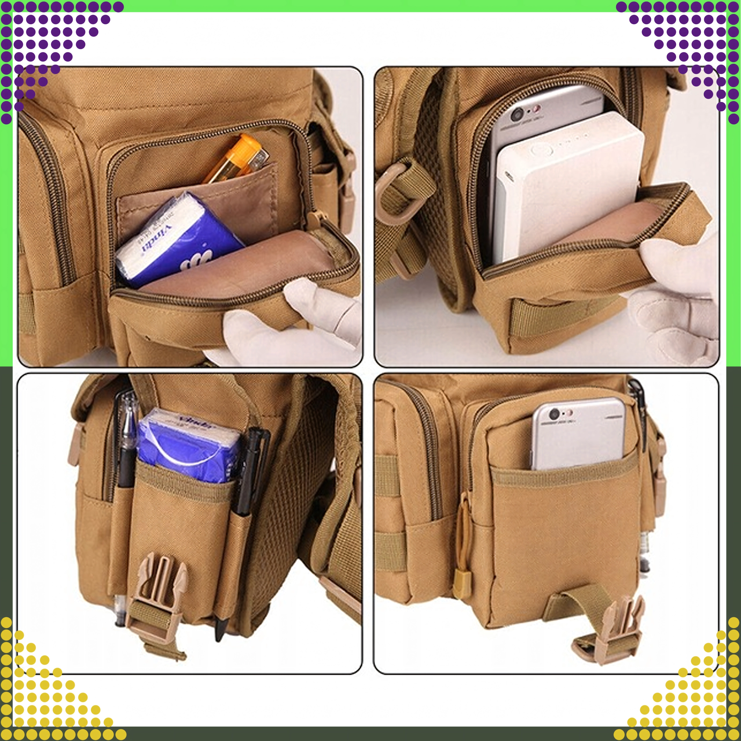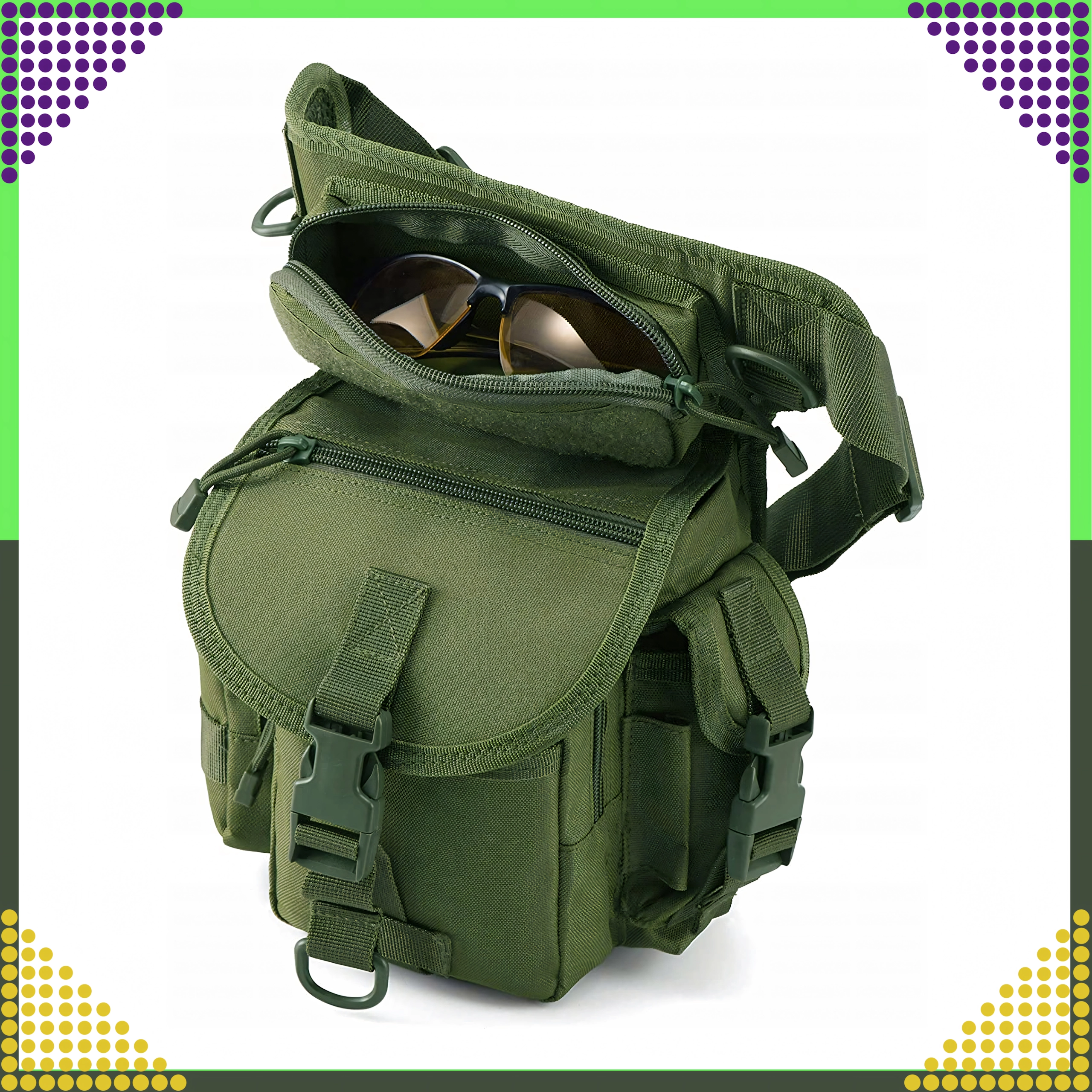 Denne alsidige taktiske taske kombinerer funktionalitet, holdbarhed og komfort. Flere lynlåslommer, organisering og løkker gør det muligt at opbevare telefon, multitool, pung, førstehjælp og andet EDC-udstyr. Takket være den smarte inddeling har du hurtig adgang til dine ting, selv i bevægelse.