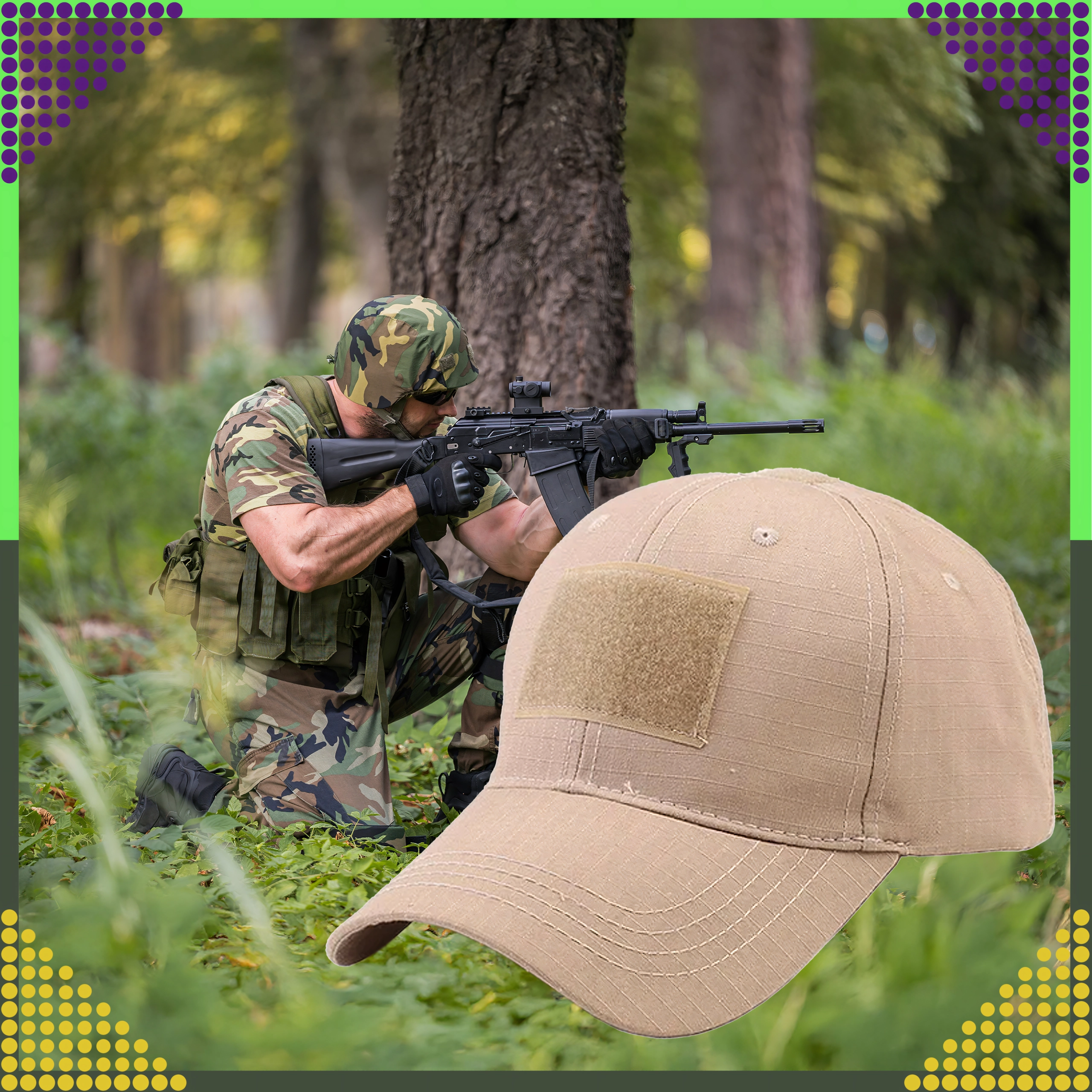 Let og holdbar taktisk kasket i ripstop-materiale med velcro-paneler til personalisering. Den tilbyder hurtig størrelsesjustering, er åndbar og kompatibel med høreværn og andet hovedudstyr. Ideel til vandring, camping, fiskeri og daglig brug.