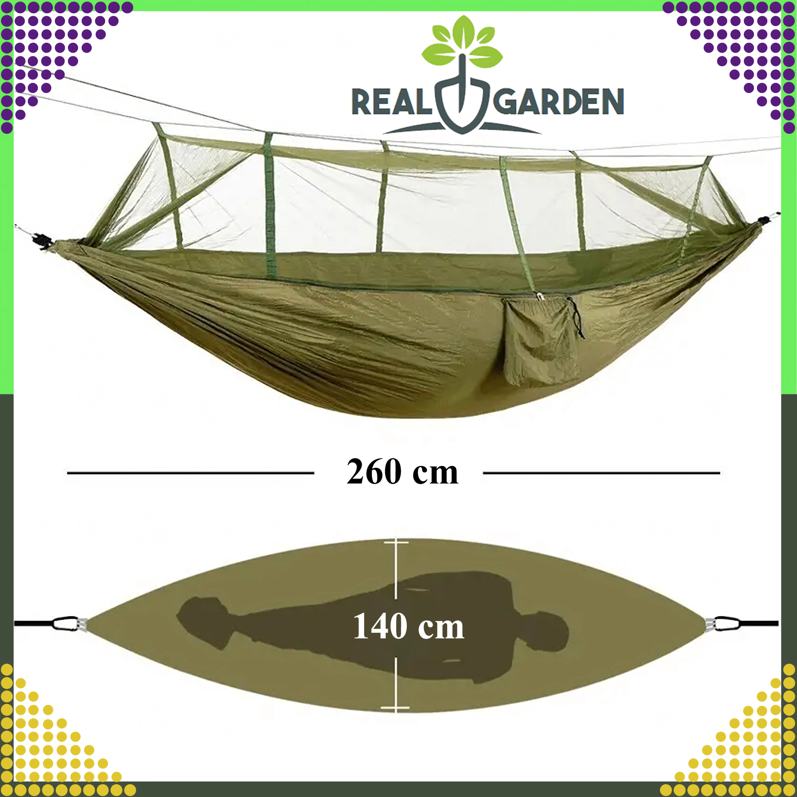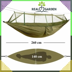 Det integrerede myggenet beskytter dig pålideligt mod insekter, så du kan nyde en rolig søvn i naturen. Med målene 260 × 140 cm giver den masser af plads, og bæreevnen på 180 kg sikrer sikker brug.