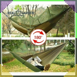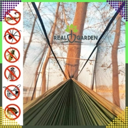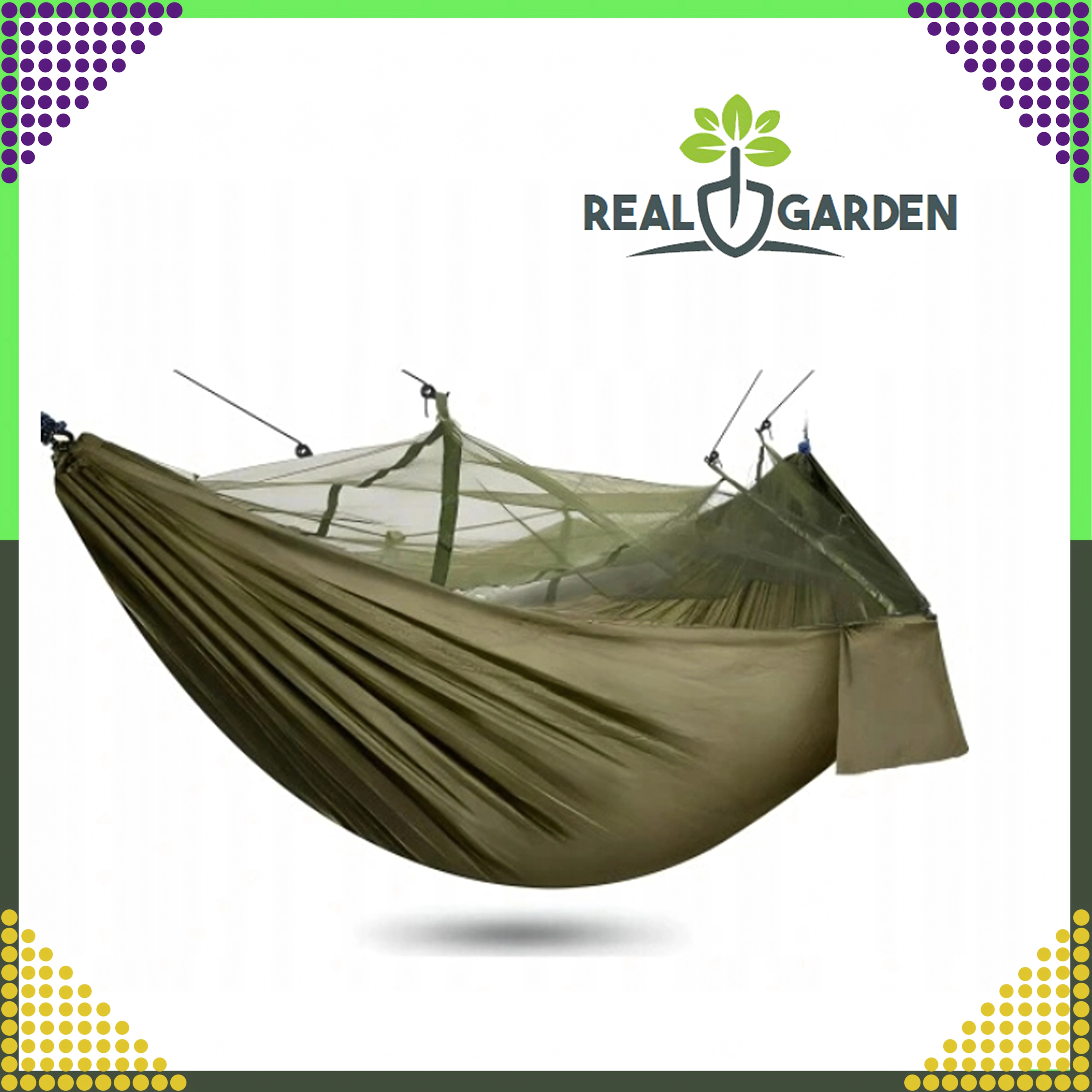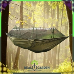 Hængekøjen med myggenet er et ideelt valg til camping, udflugter og afslapning i haven. Det lette og åndbare nylon sikrer komfort selv ved længere brug, og takket være den hurtige installation kan den nemt hænges op mellem træer eller stolper med snore og karabiner.