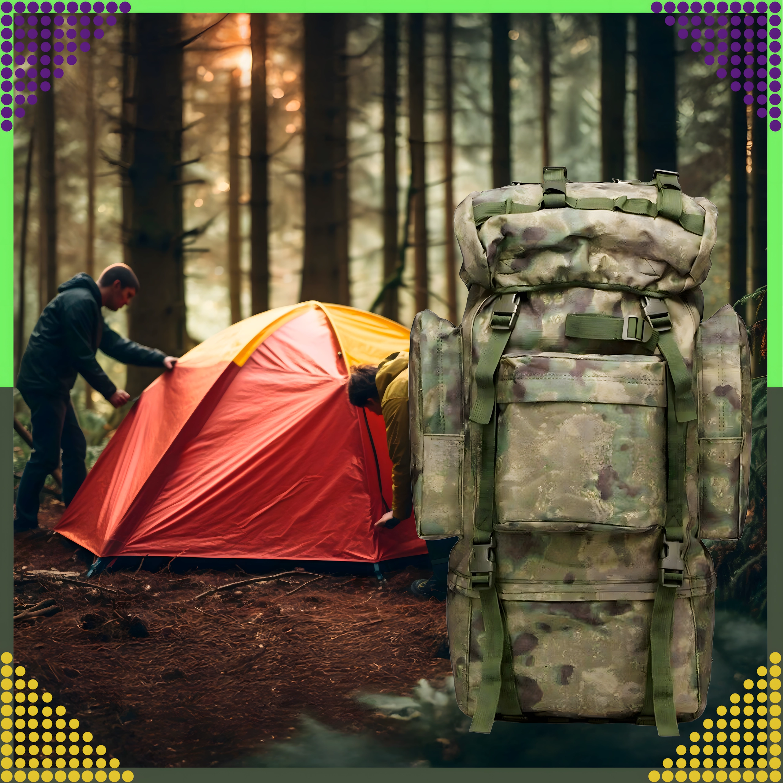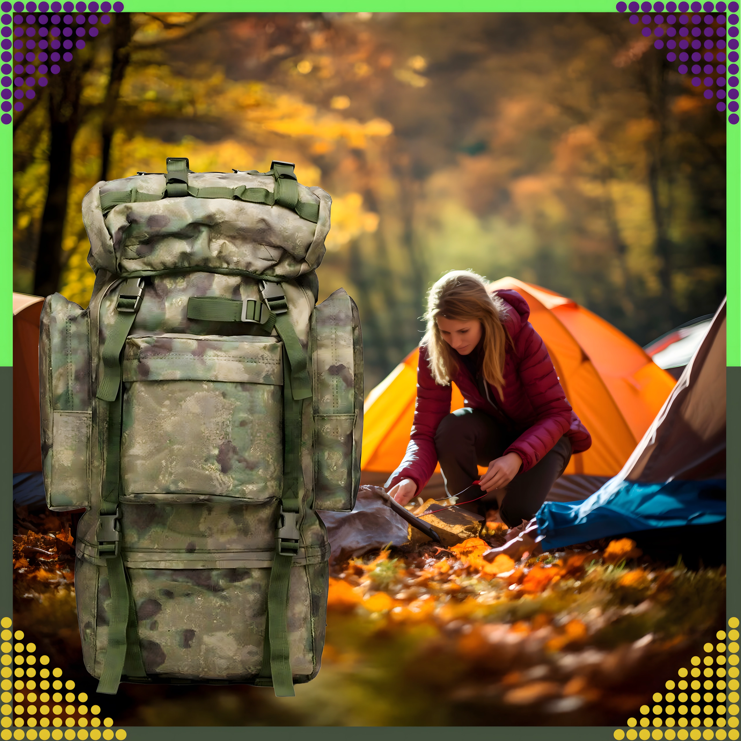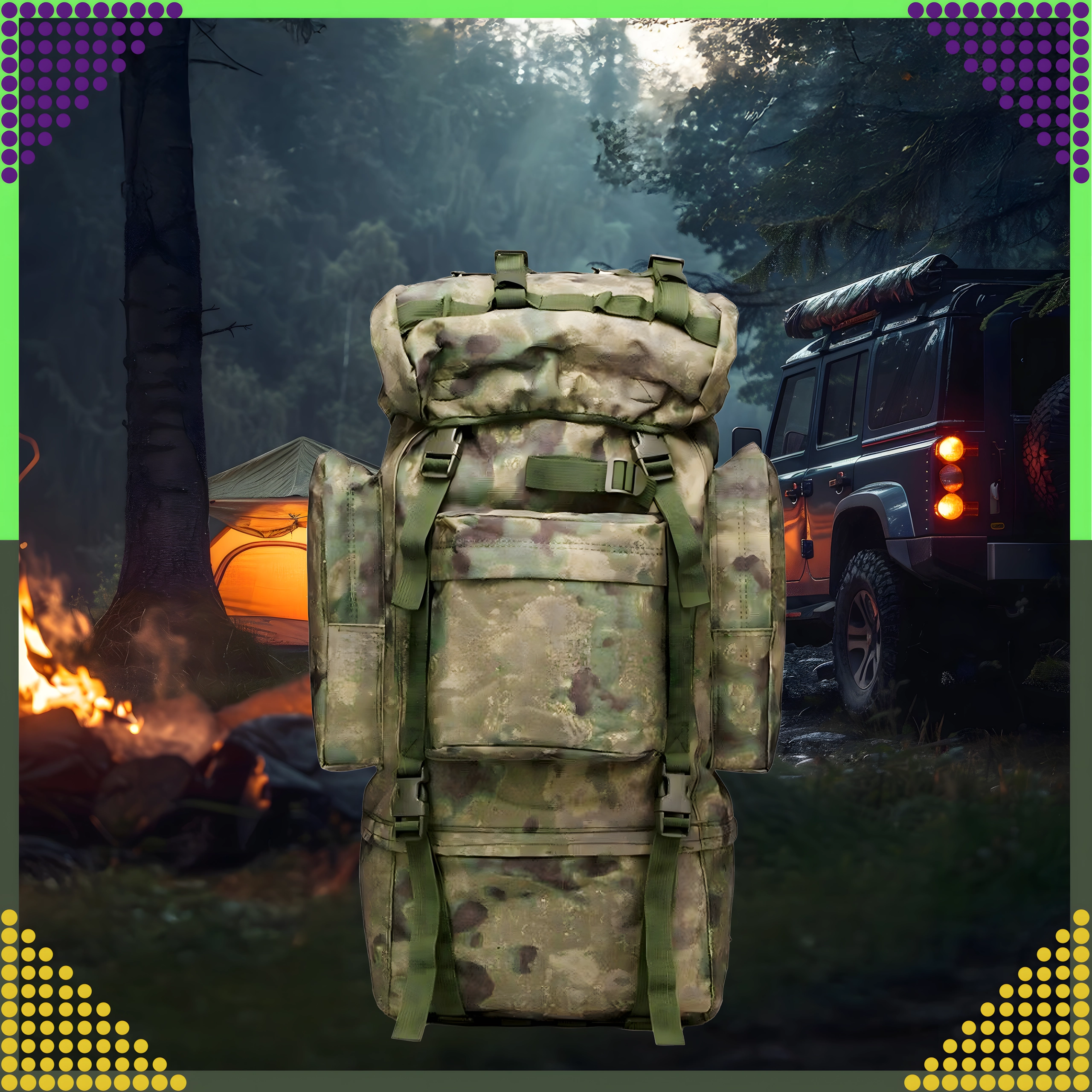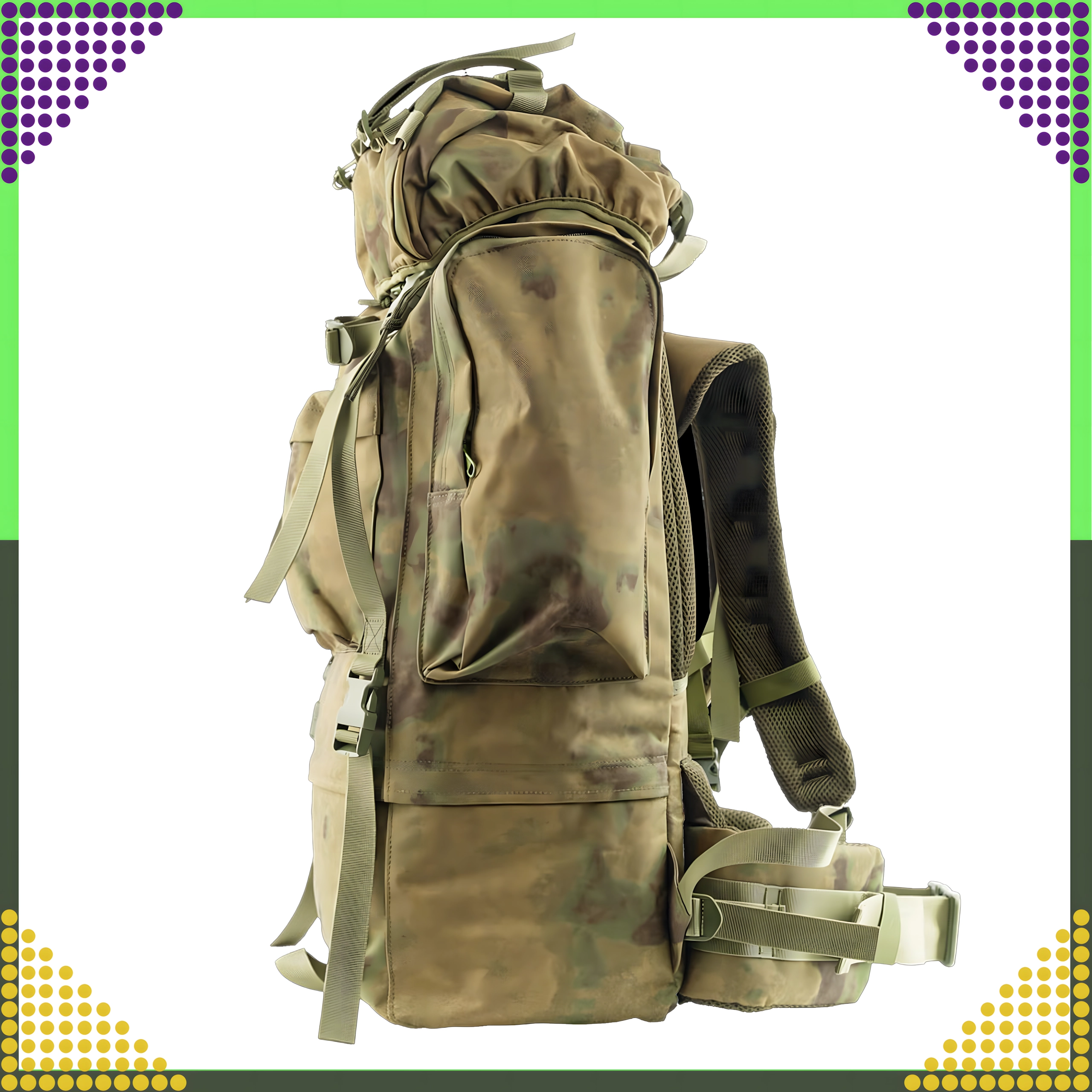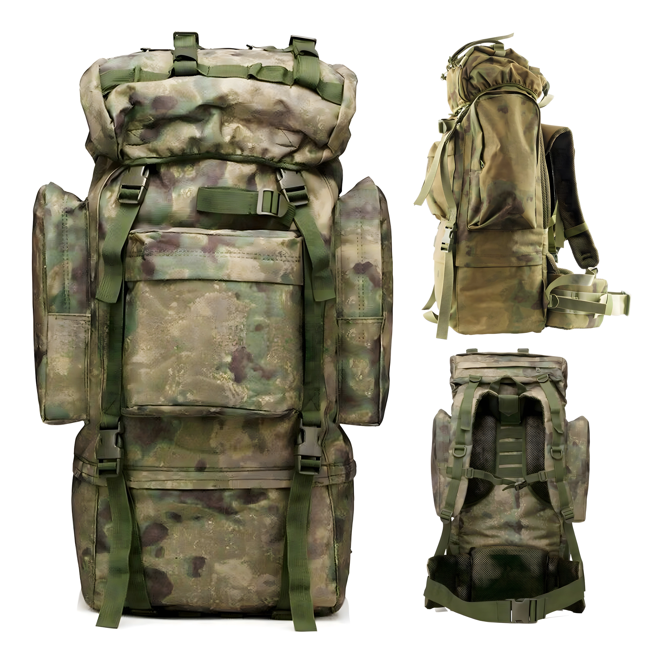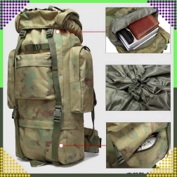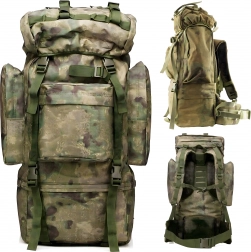 Stor taktisk rygsæk med kapacitet på 65 liter fremstillet af slidstærk 800D polyester. Tilbyder vandafvisning, komfortabelt ventilationssystem i ryg og skulderstropper, justerbart bæresystem, hoftebælte og masser af lommer til overskuelig organisering af udstyr. Ideel til vandring, camping, survival og militær brug.
