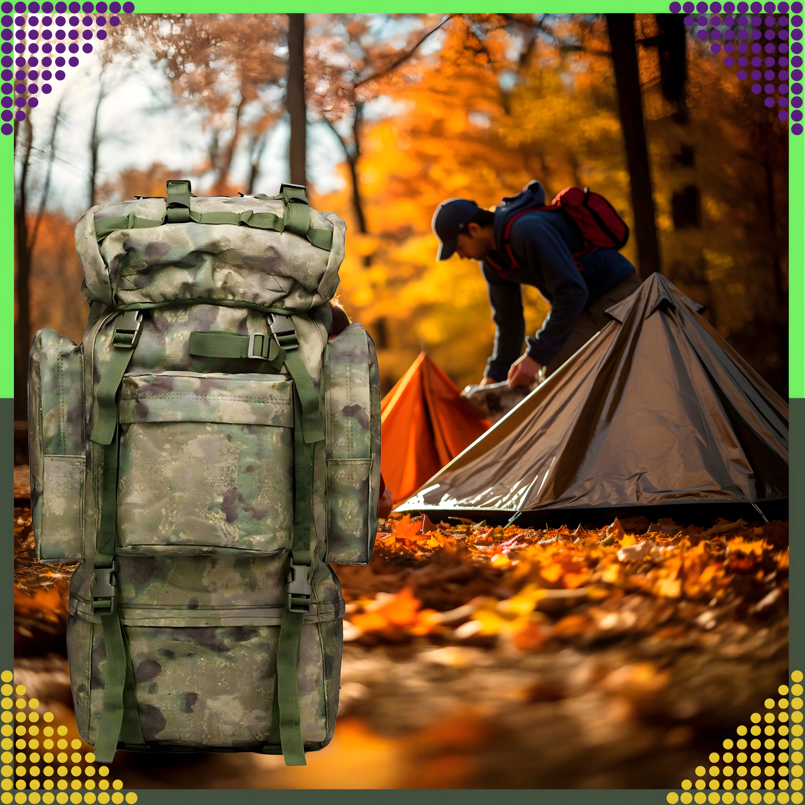 Leder du efter en pålidelig rygsæk til lange ture, treks og eventyr i naturen? Denne taktiske vandrerygsæk på 65 l er designet til at modstå krævende forhold og samtidig give maksimal komfort. Takket være 800D polyester med vandafvisende behandling beskytter den dit udstyr mod fugt og slid.