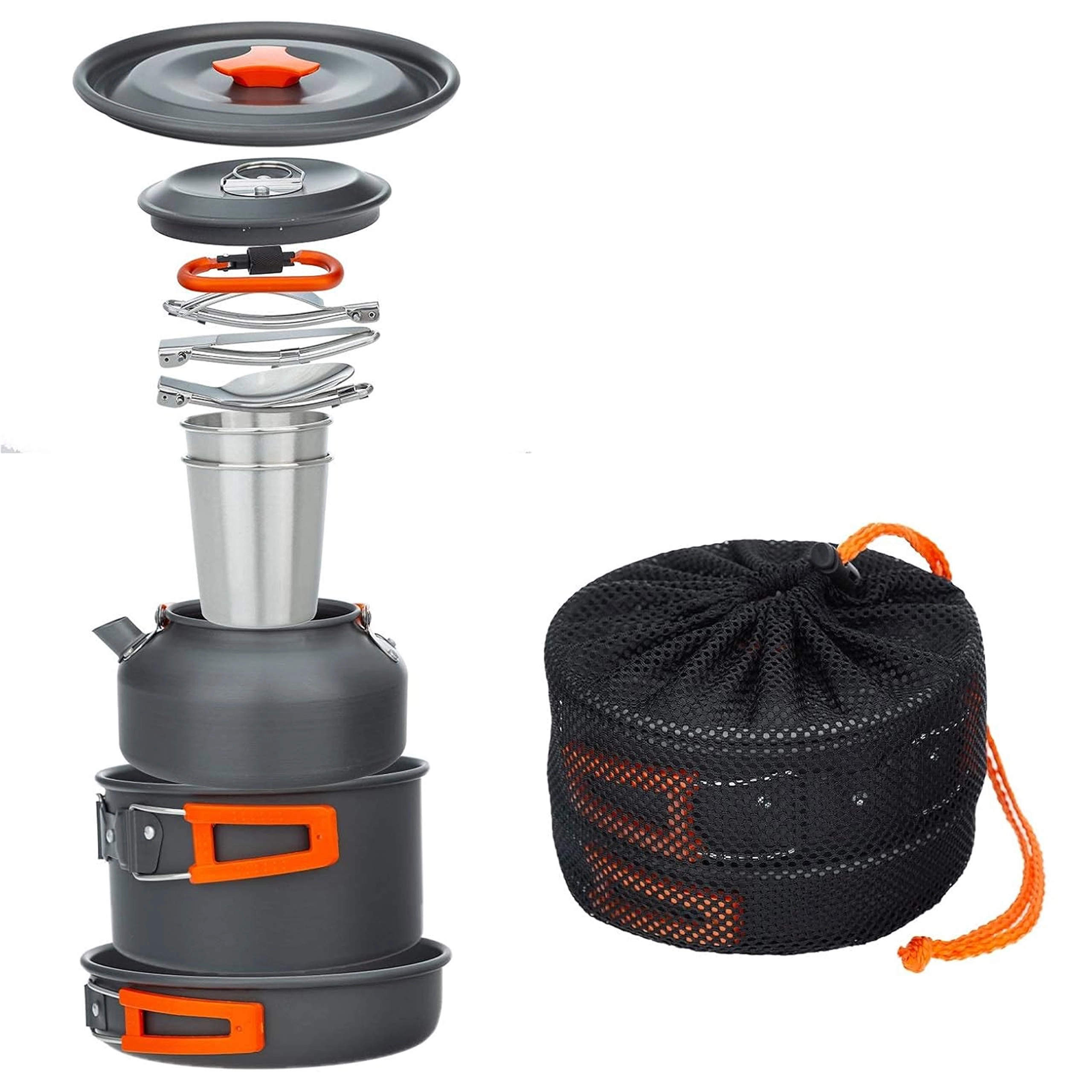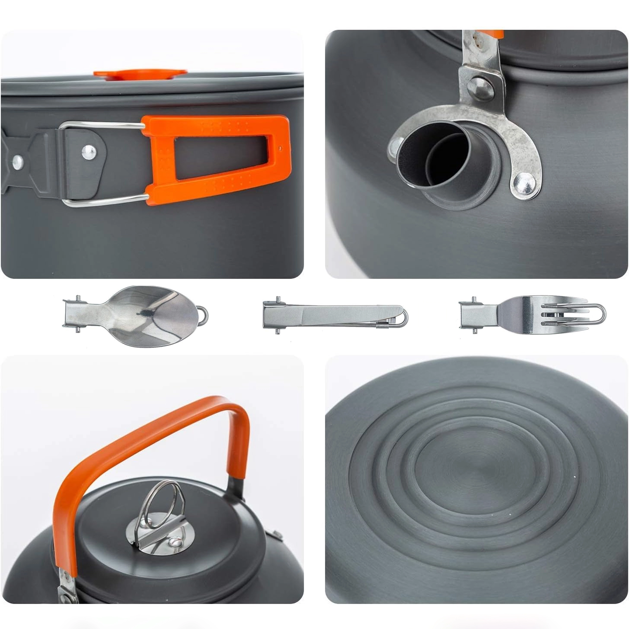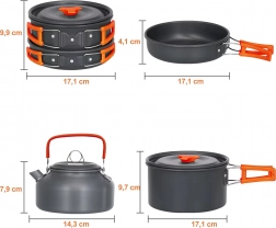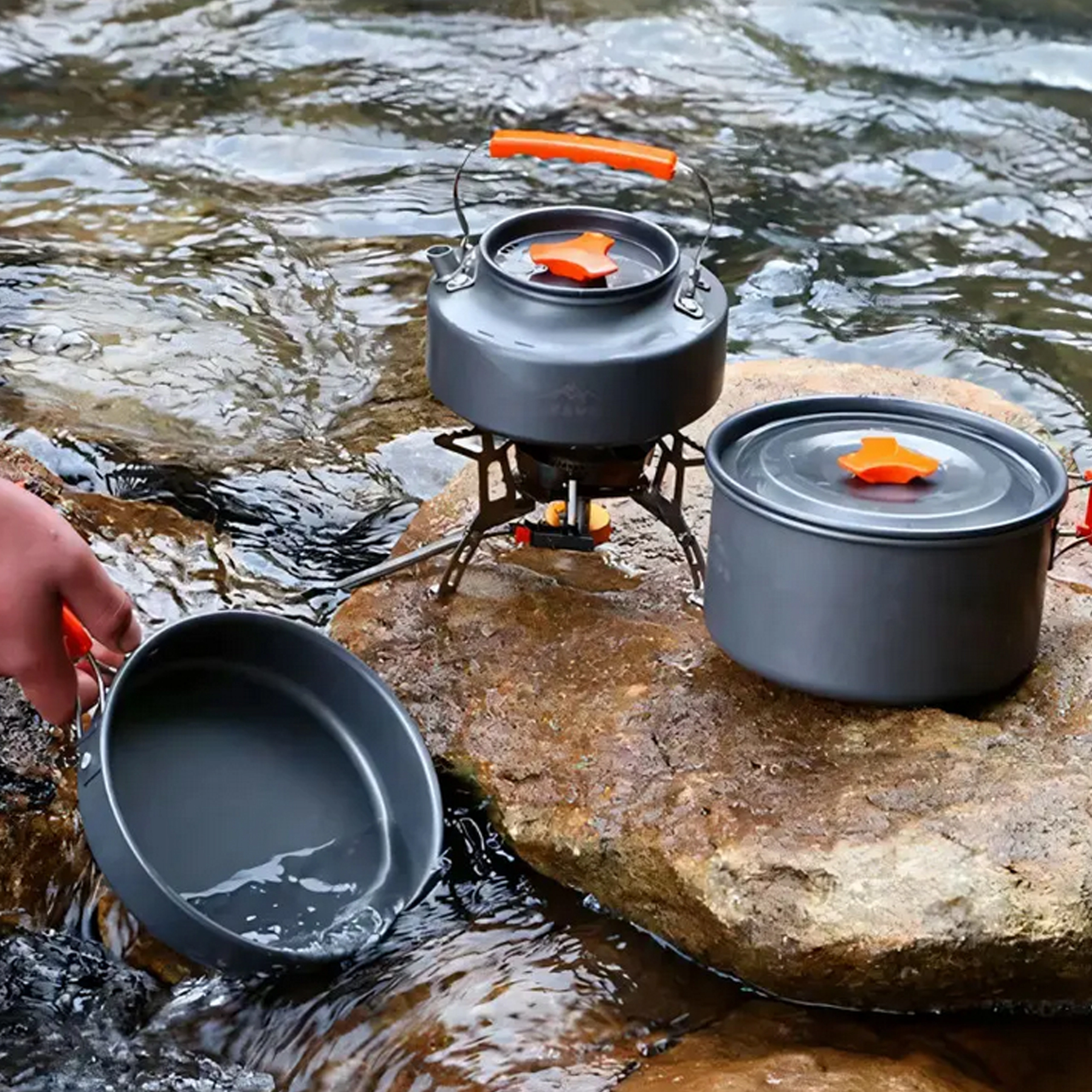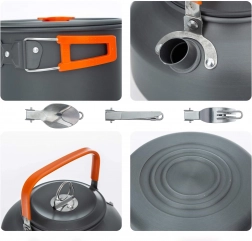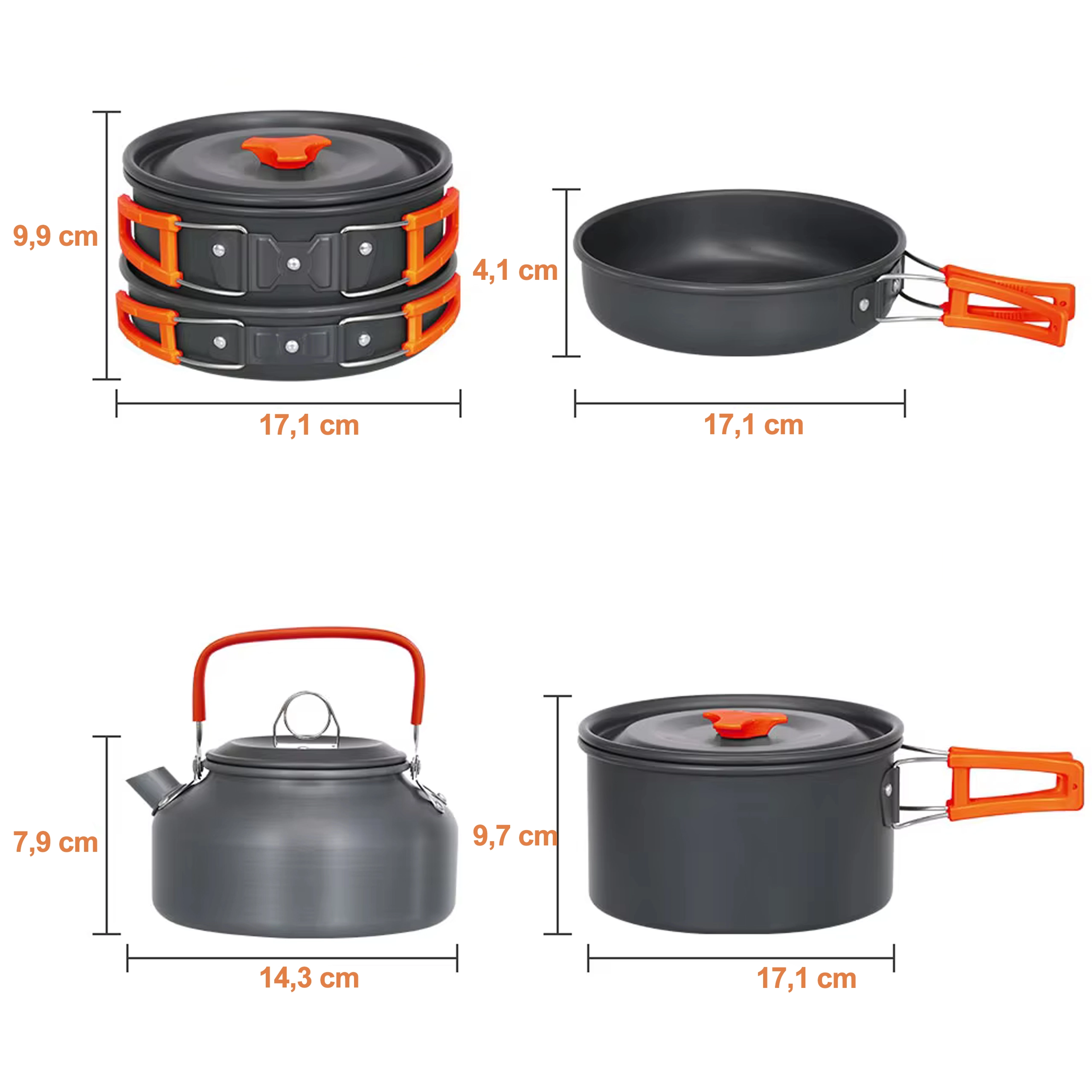 Sættet egner sig til madlavning på en bærbar gasbrænder samt opvarmning af vand i kedlen. Den non-stick belægning gør både madlavning og rengøring lettere.