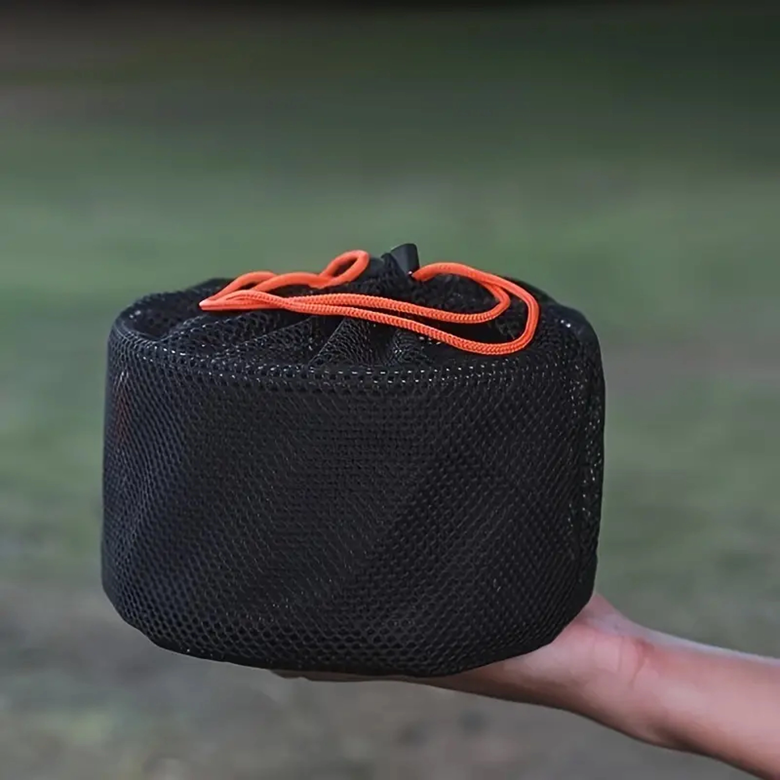 Det lette metallegeme med non-stick belægning (PTFE) gør både madlavning og rengøring nem, mens netposen holder alt samlet og tørrer hurtigt. Sættet er designet til 2 personer og kan bruges på gasbrænder og over bål (afhængigt af forhold og brugsanvisning).