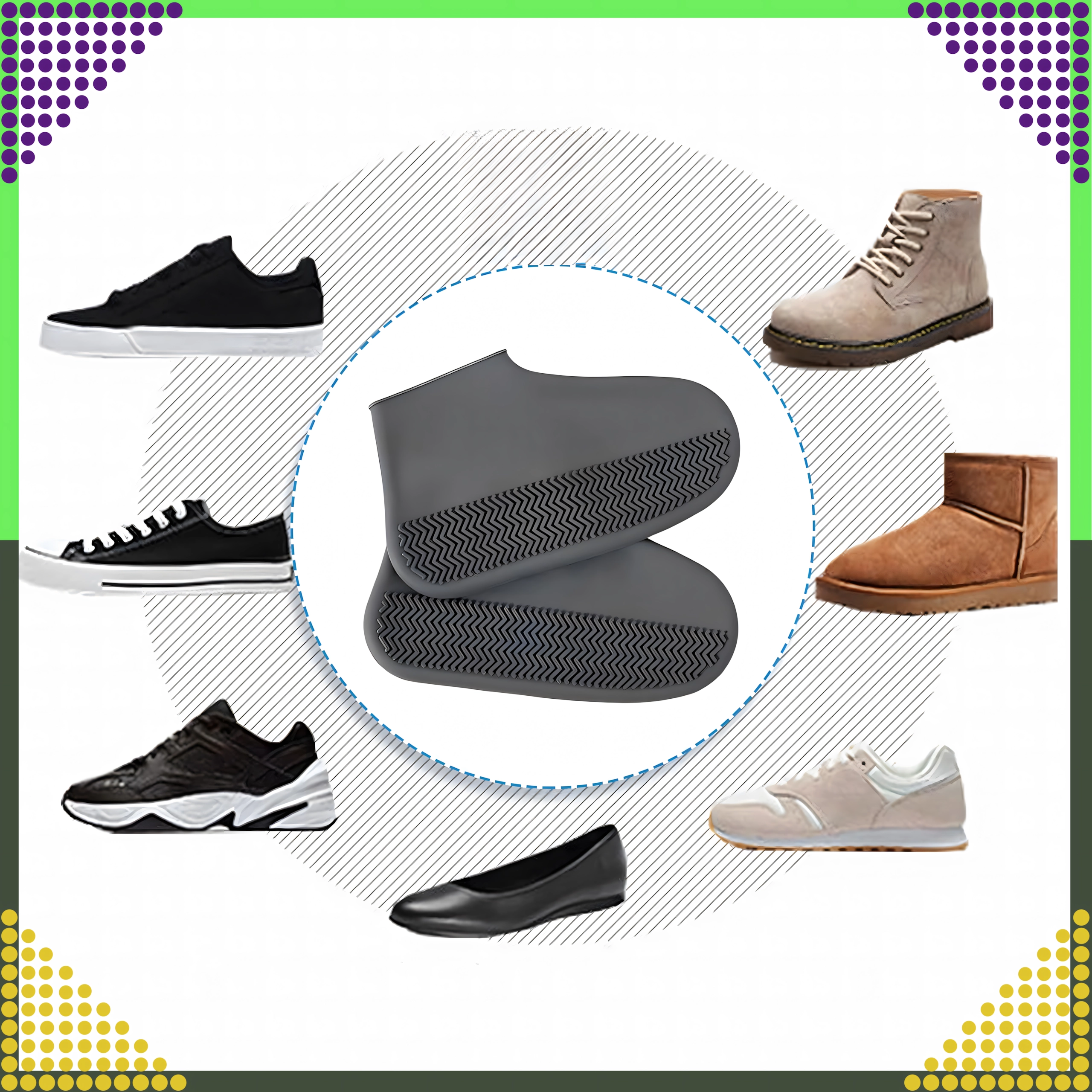Beskyt dine yndlingssko mod regn, mudder og snavs. Disse vandtætte silikoneovertræk trækkes nemt over skoene og giver straks pålidelig beskyttelse og et sikkert fodfæste på våde overflader takket være den skridsikre tekstur.