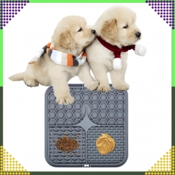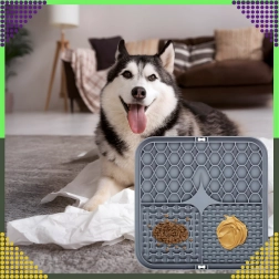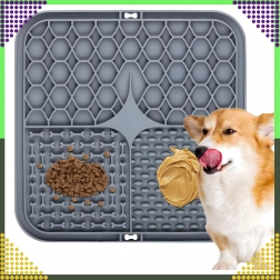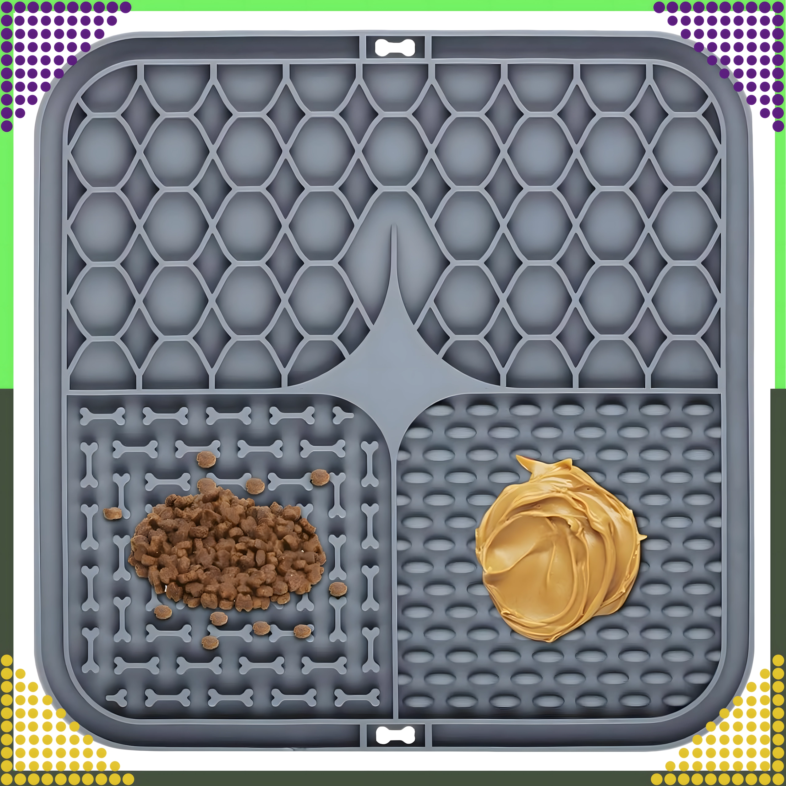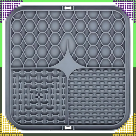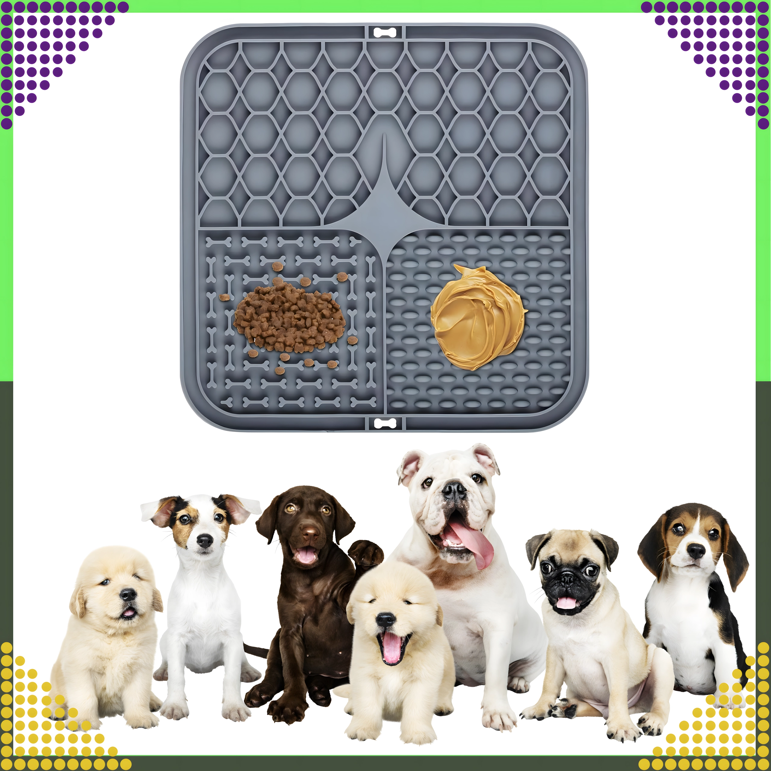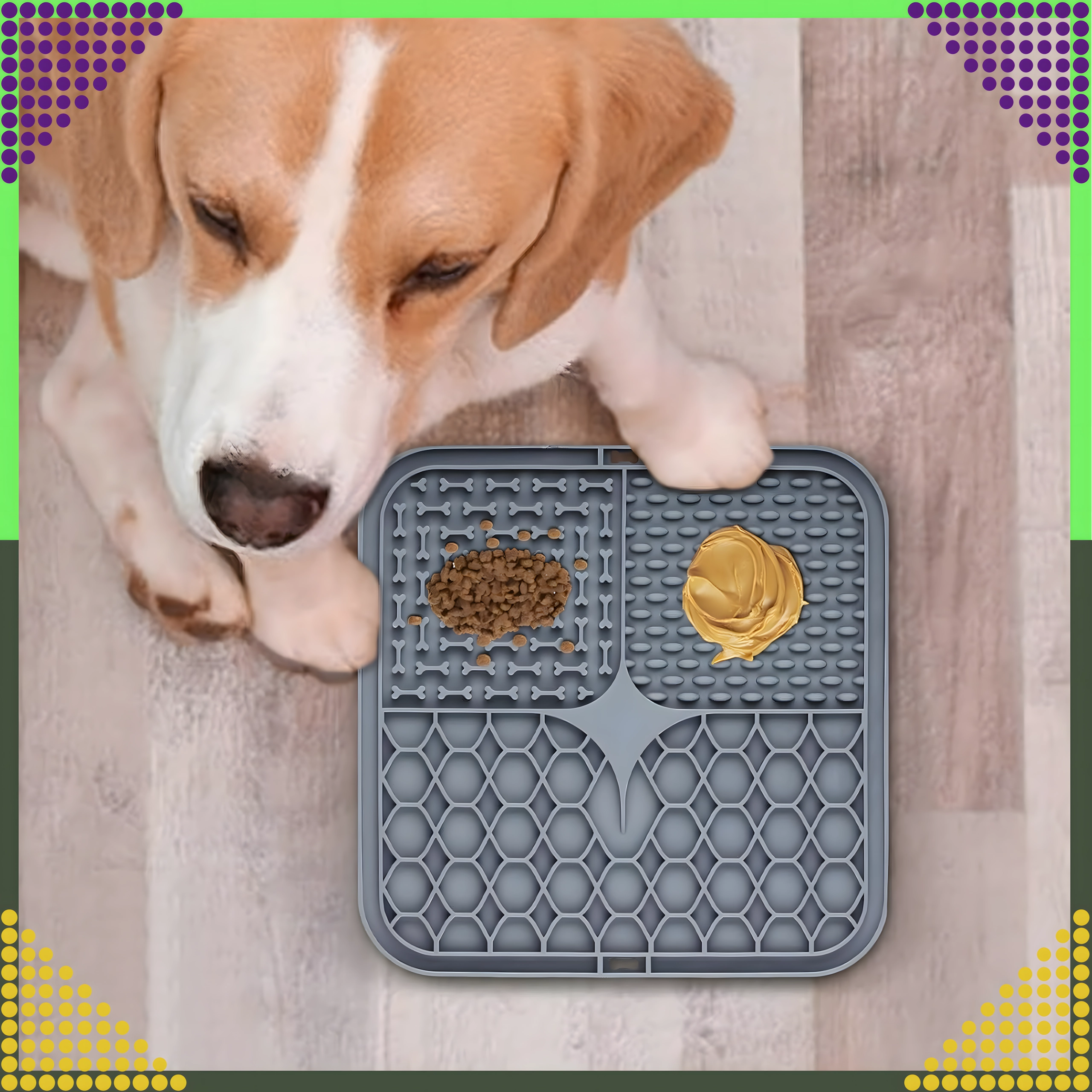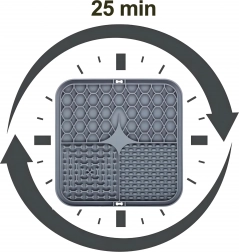 Bagsiden med skridsikre sugekopper holder måtten sikkert på gulvet eller på en lodret overflade (fx i badeværelset under bad). Måtten er lavet af blød, let rengørlig silikone og er ideel til at sænke spisehastigheden og som afledning under pelspleje eller ved besøg hos dyrlægen.