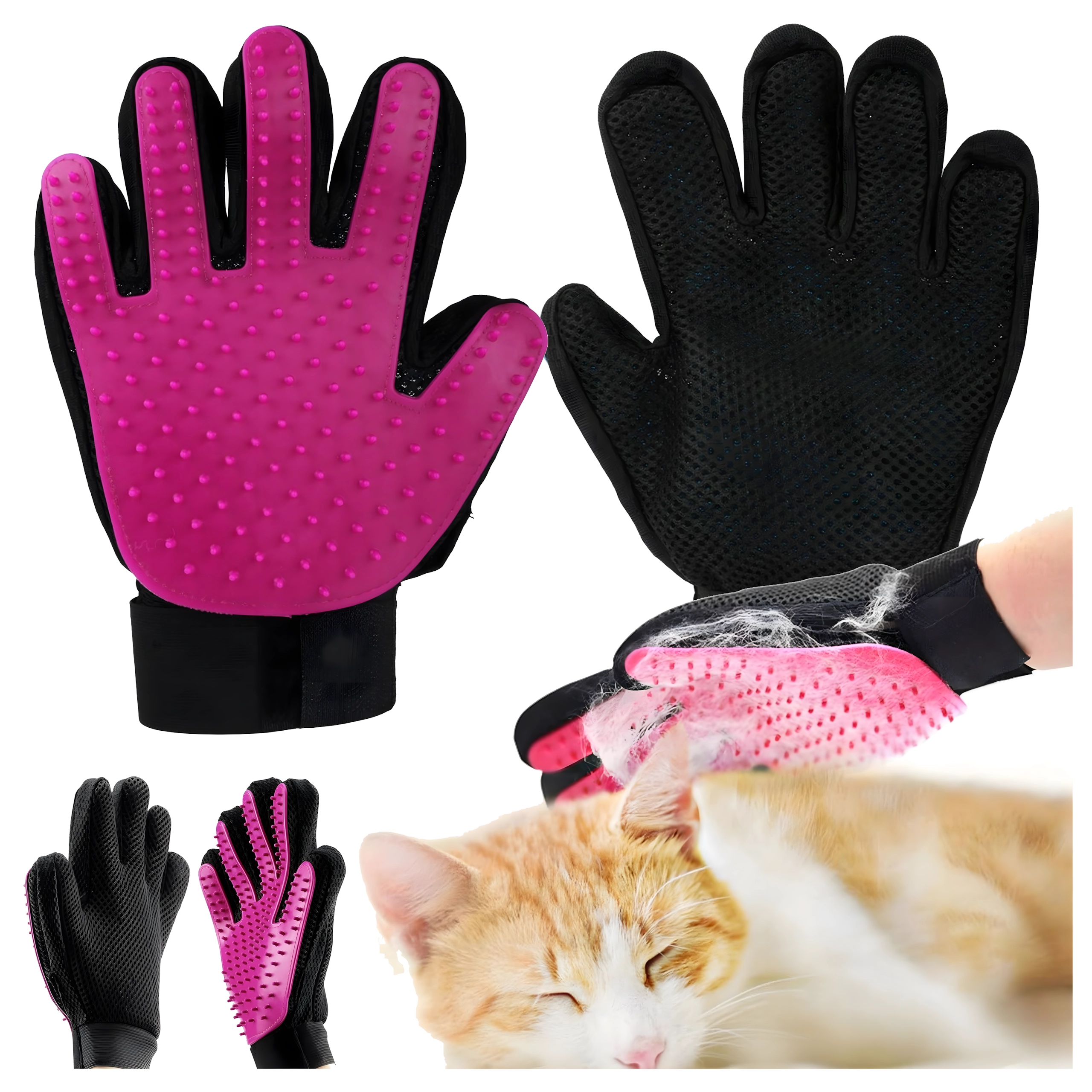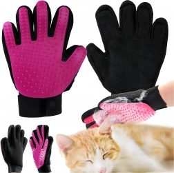 Praktisk handske til daglig pleje af kæledyr, som kombinerer skånsom fjernelse af løs pels og afslappende massage. Bløde silikoneknopper samler effektivt hår i totter, ridser ikke og gør ikke ondt, og overfladen er nem at rengøre med vand. Ideel til hunde, katte og kaniner.