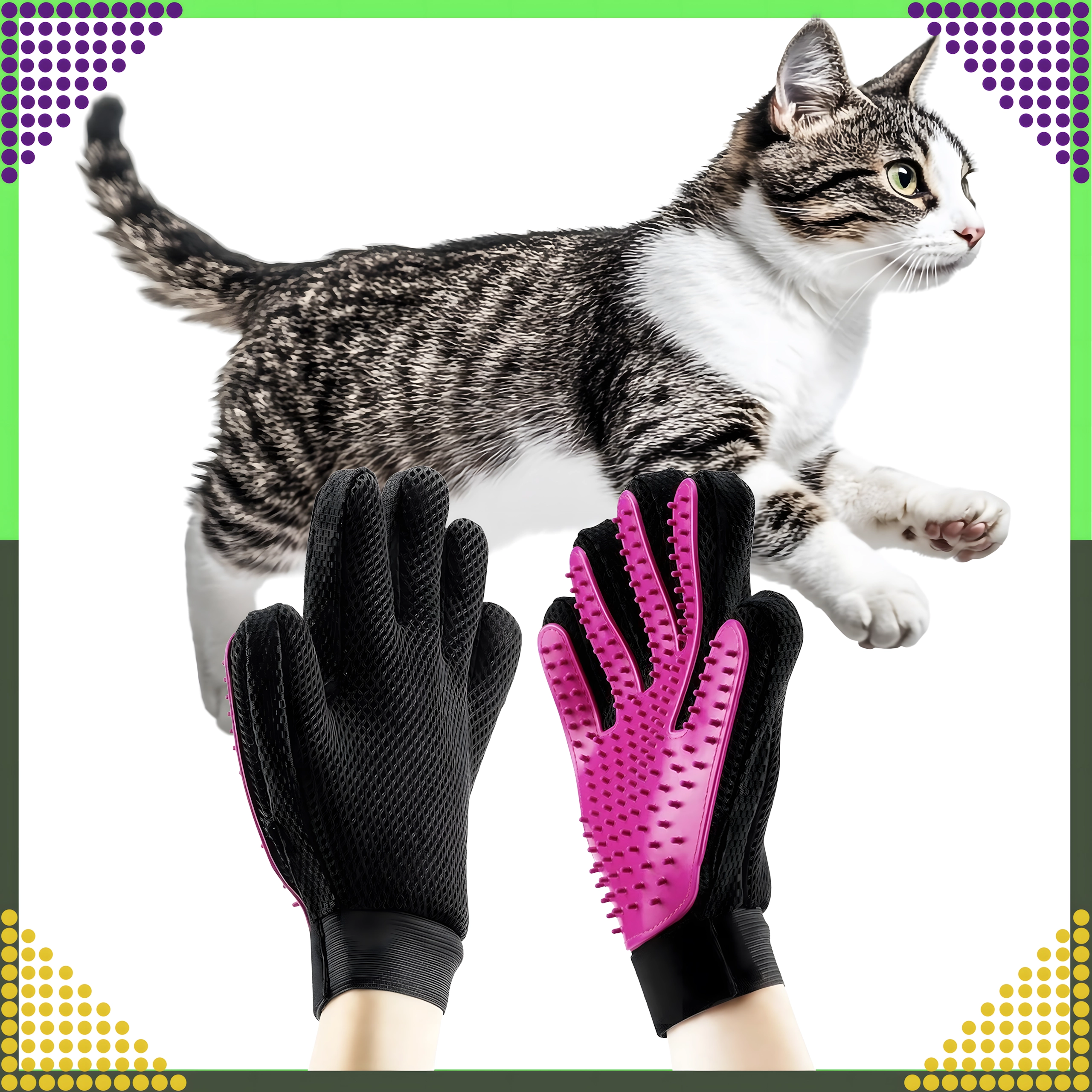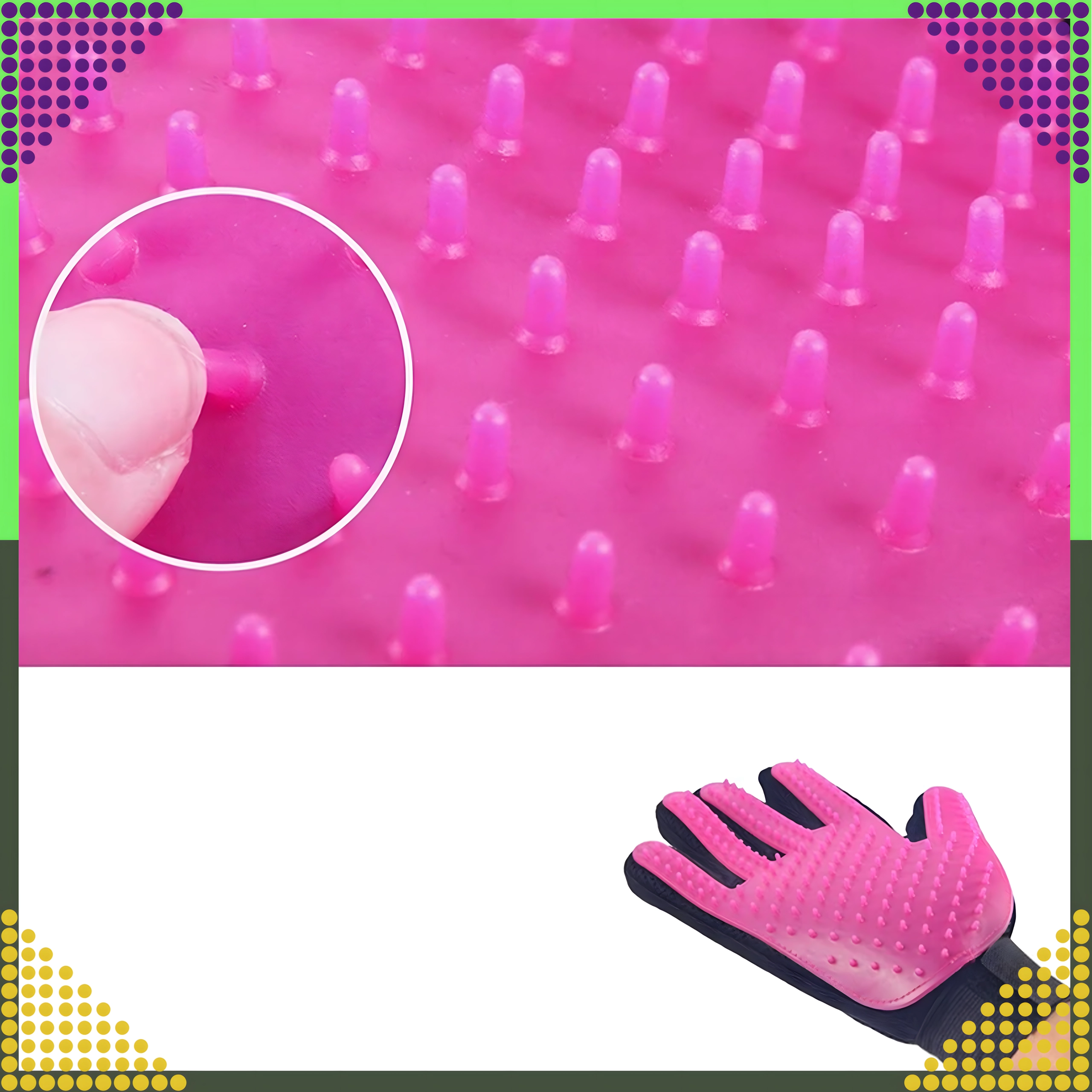 Opdag en enkel måde at holde dit kæledyrs pels ren og glansfuld uden stress. Handsken med bløde silikonespidser opfanger effektivt løse hår under nus og giver samtidig en behagelig massage, der understøtter blodcirkulationen i huden og pelsens naturlige glans.
