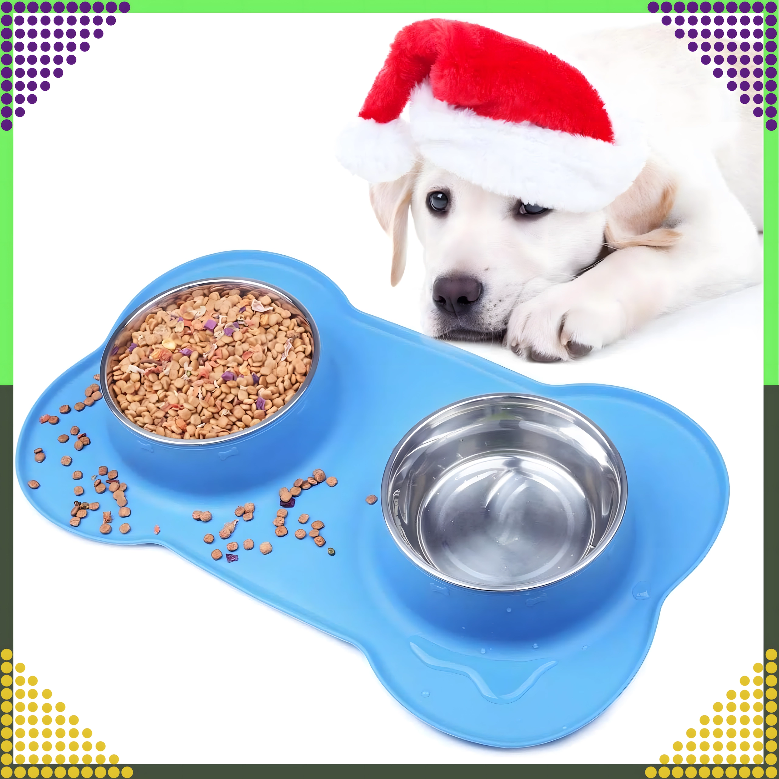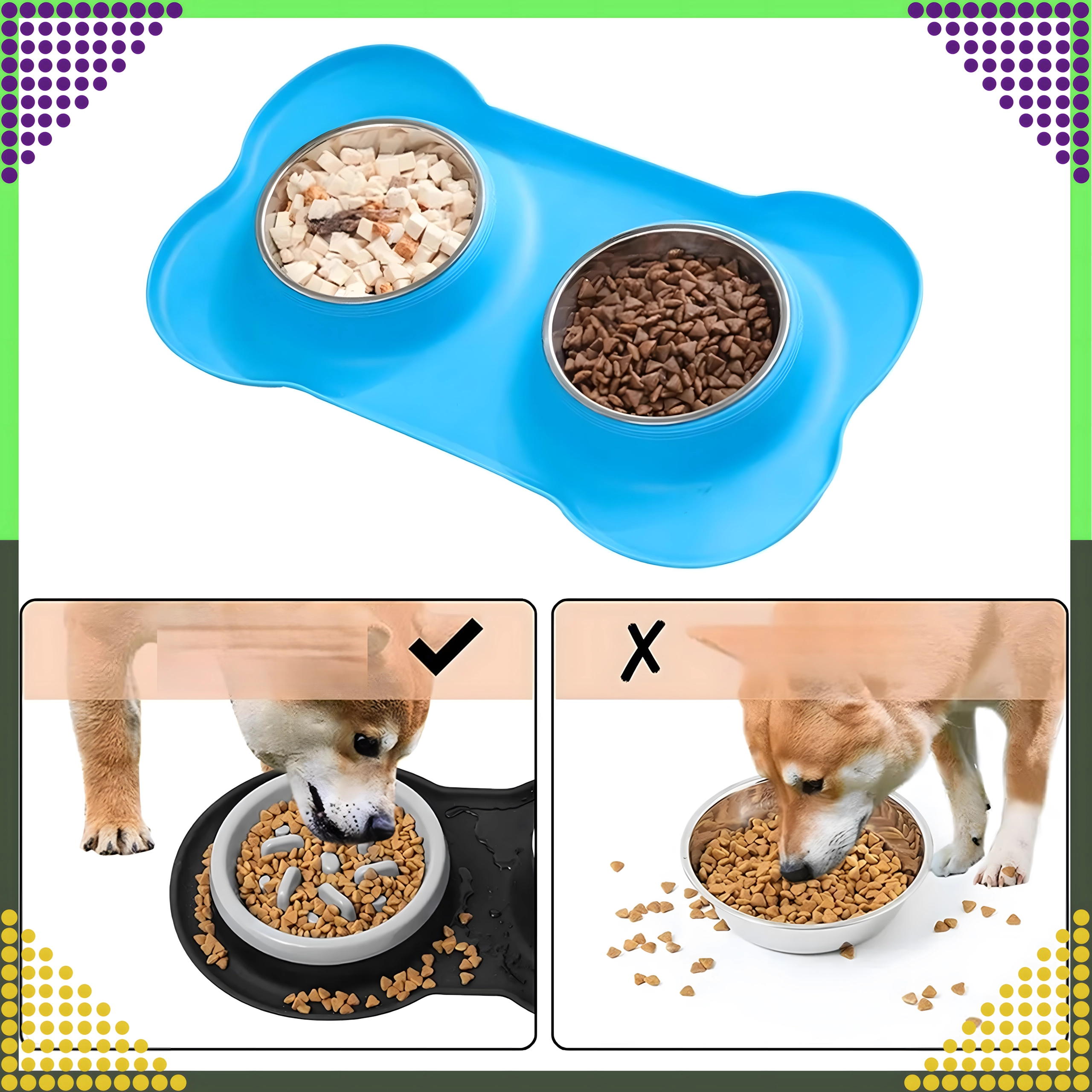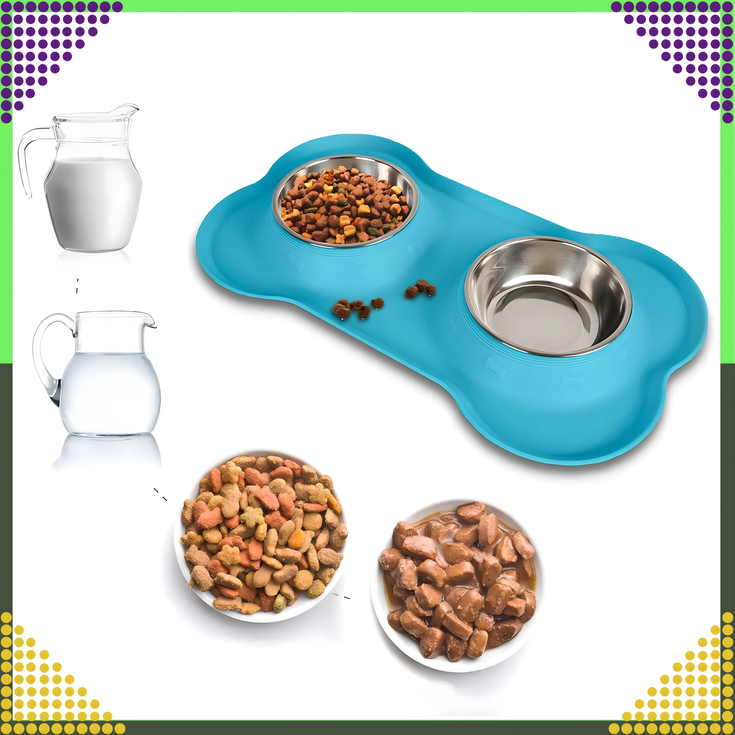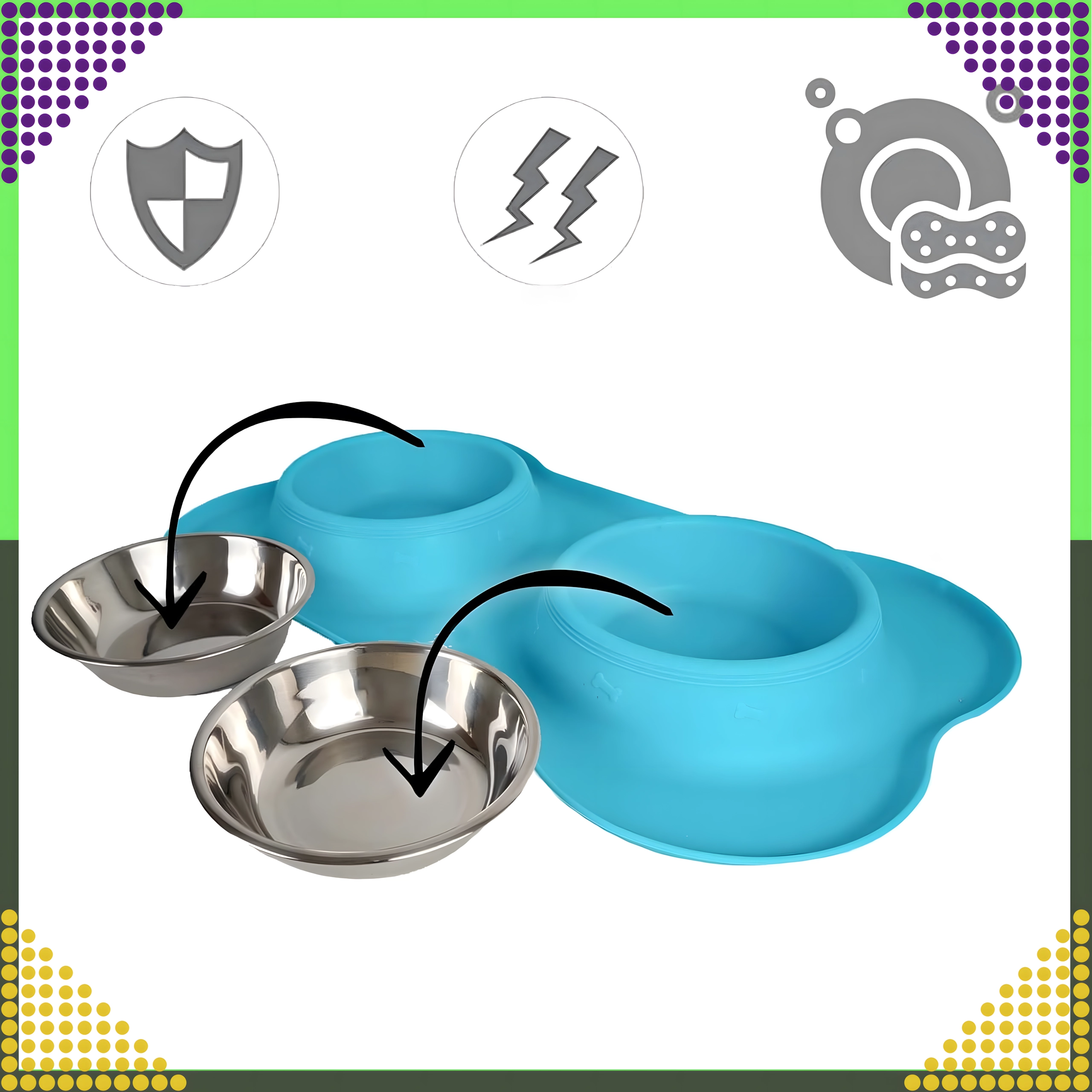 Gør fodringen renere og mere bekvem. Den dobbelte skål med solid silikone-måtte holder det hele på plads, opfanger spildte foderkugler og vanddråber, og takket være de indsatser i rustfrit stål er den let at rengøre – også i opvaskemaskinen.