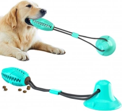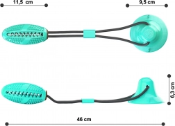 Fastgør sugekoppen på en glat overflade, og lad hunden trække, tygge og opdage belønningerne indeni. De robuste materialer og det elastiske reb tåler intens trækkeleg, mens de bløde gummispidser er skånsomme mod tænder og tandkød. Regelmæssig leg hjælper med at reducere kedsomhed, overskydende energi og understøtter en sund mund.