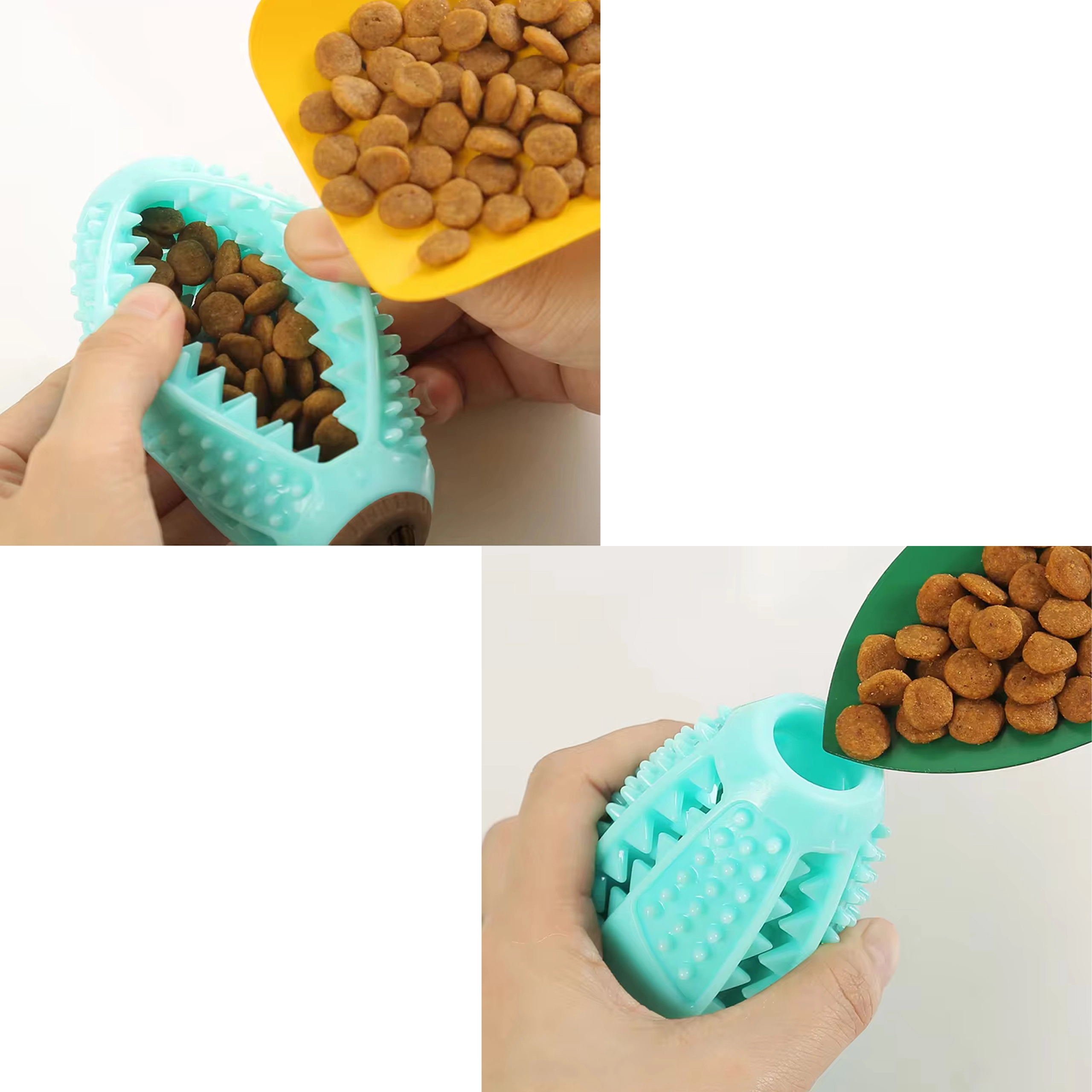 Åbninger til foder og godbidder belønner hvert tyg. Legetøjet fremmer langsommere fødeindtag og mindsker fråseri.