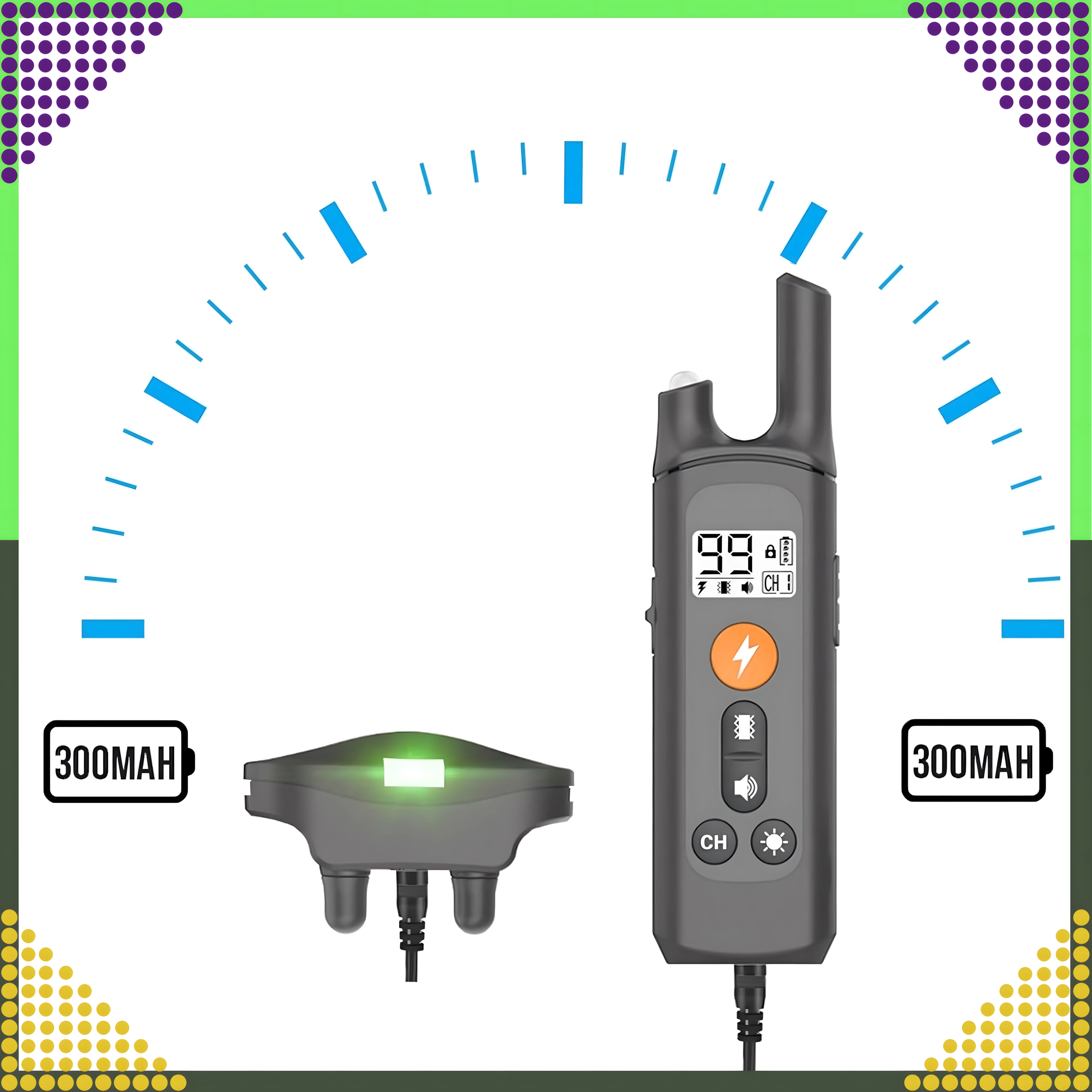 Stød, vibration, lys og lyd hjælper med at korrigere gøen, løben væk eller hoppen. Niveauet kan tilpasses hundens følsomhed.