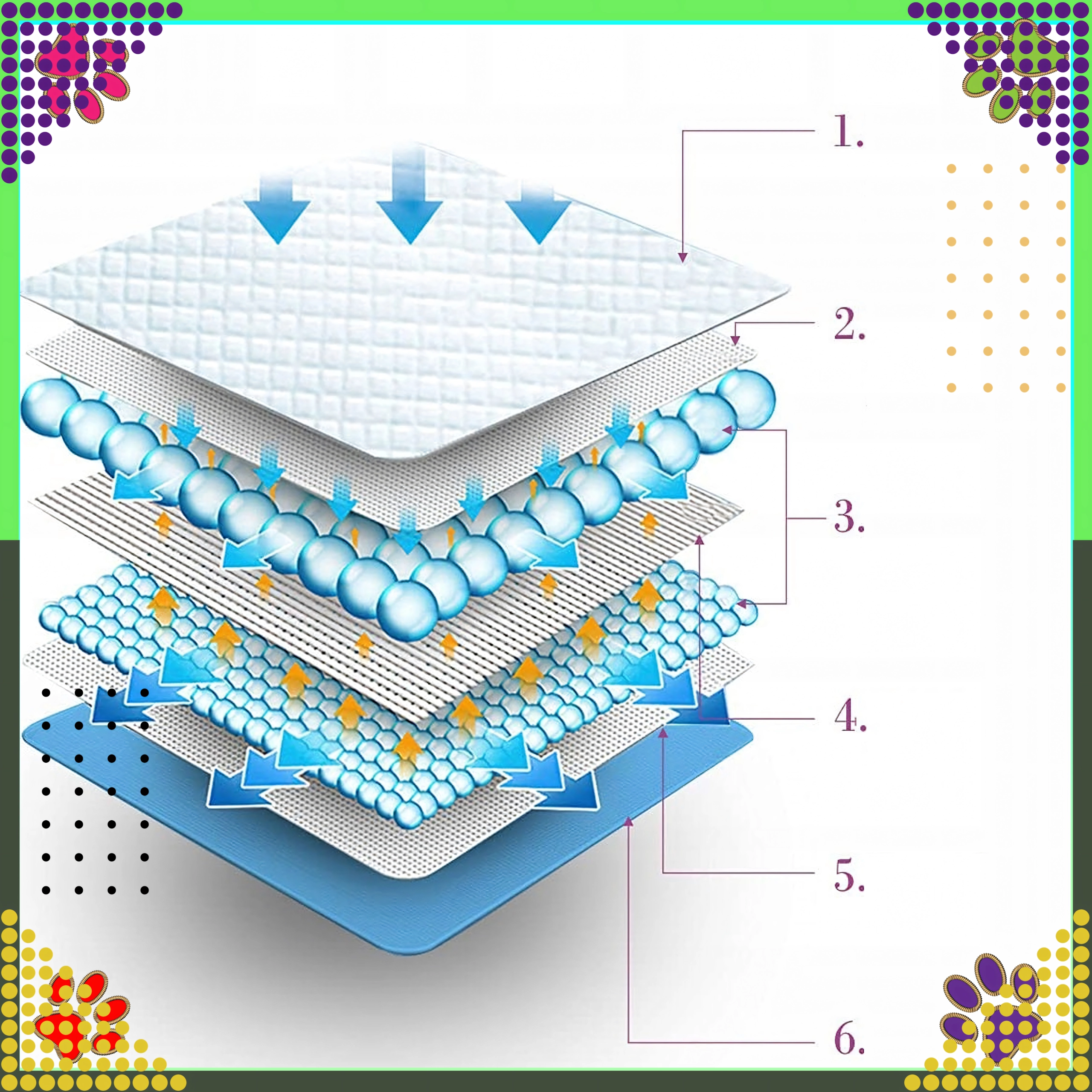Avanceret konstruktion med absorberende gelperler og en uigennemtrængelig bundfilm fordeler og låser væsken hurtigt, så overfladen forbliver tør.