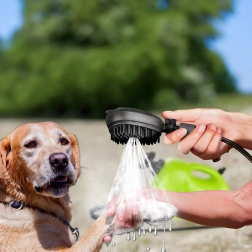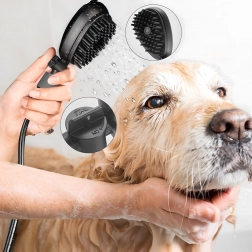 Hovedet med bløde gummibørster skyller og masserer pelsen samtidig, fjerner effektivt mudder og løse hår og forkorter badetiden.