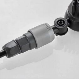Let tanksystem med integreret håndtag og lynkoblinger sikrer bekvem brug udendørs og på rejser, uden behov for strøm.