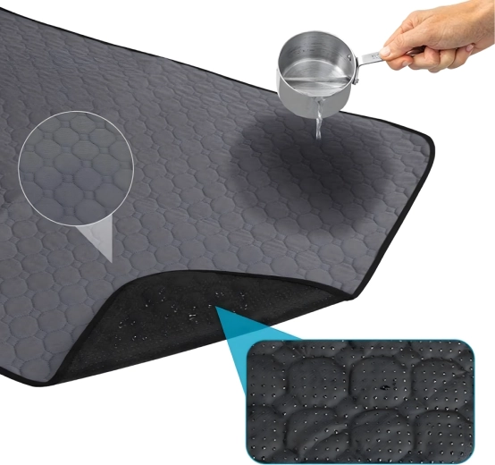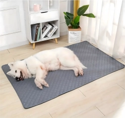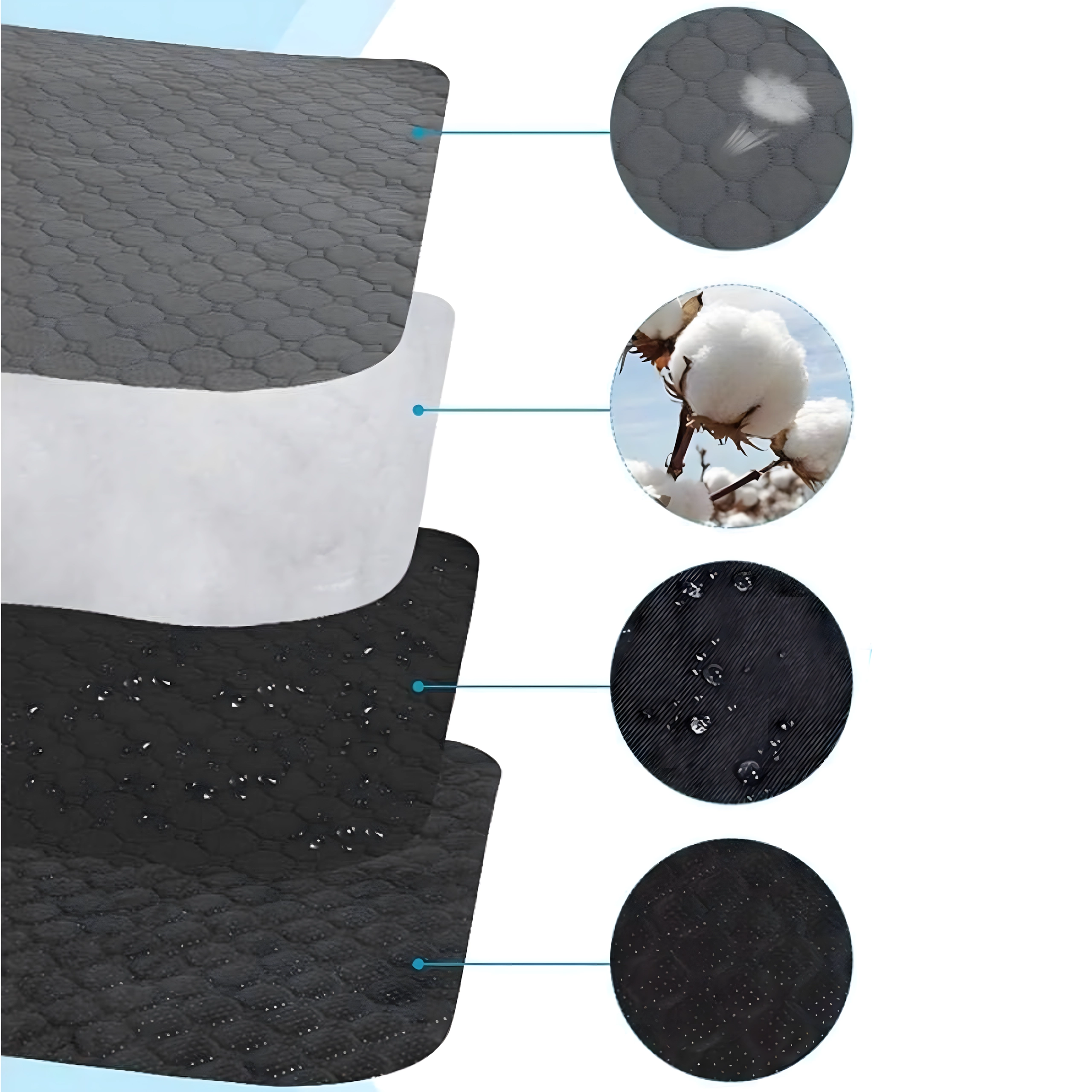 Det genanvendelige underlag til hunde og katte kombinerer komfort, hygiejne og beskyttelse af gulve og møbler. Den flerlagede konstruktion absorberer hurtigt fugt og lader den ikke trænge igennem til gulvet, mens det bløde topmateriale er behageligt til både hvile og daglig brug.
