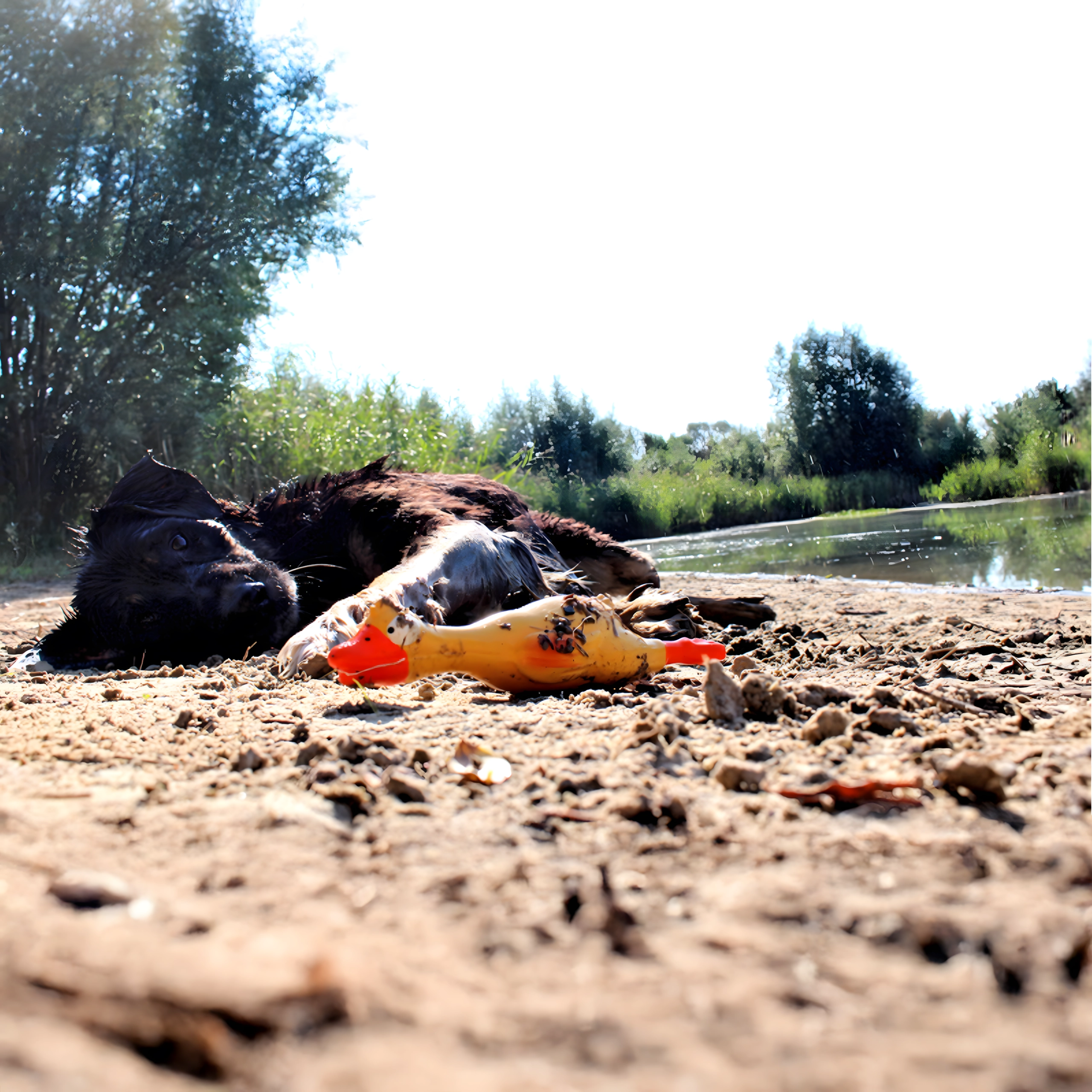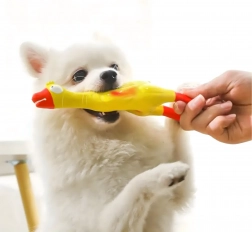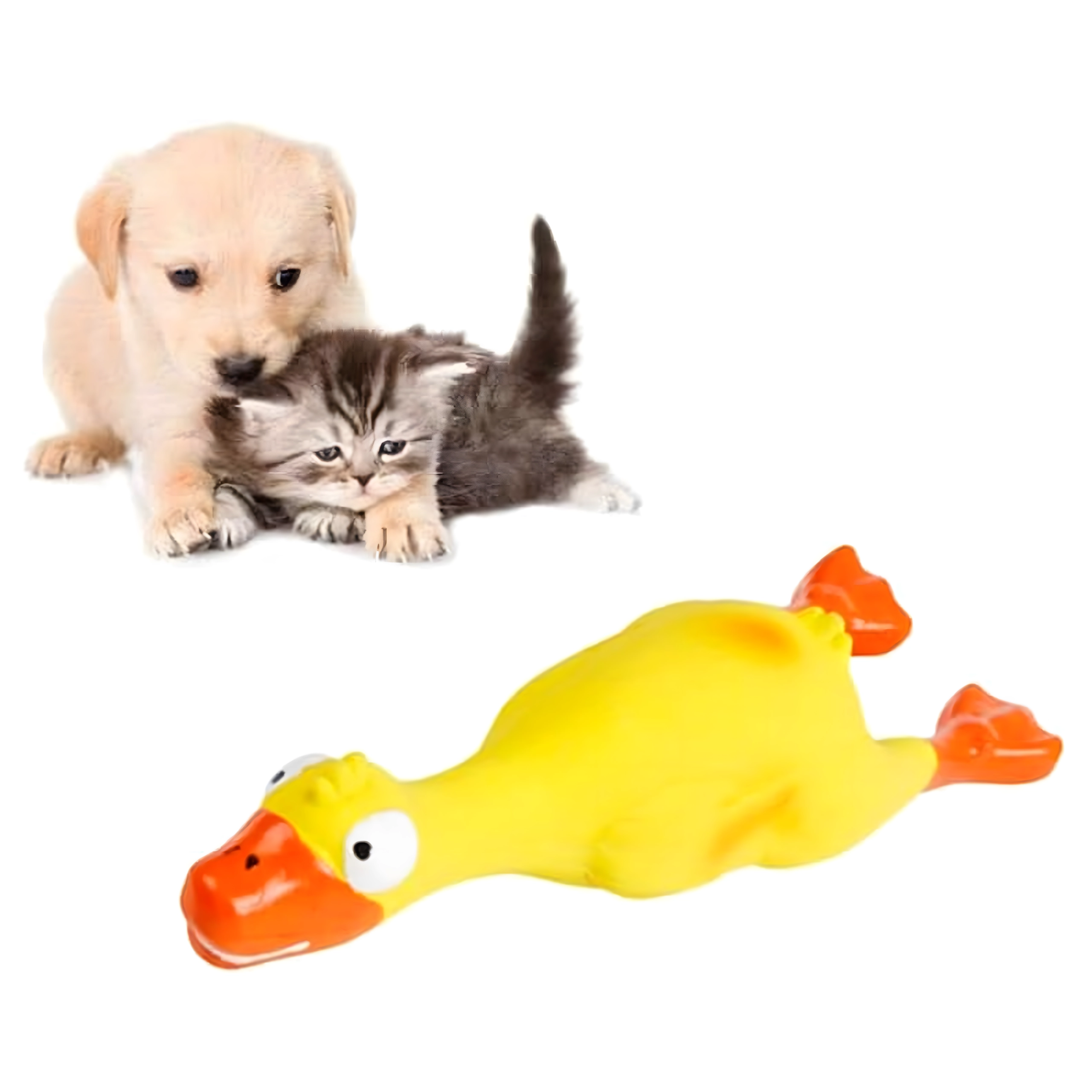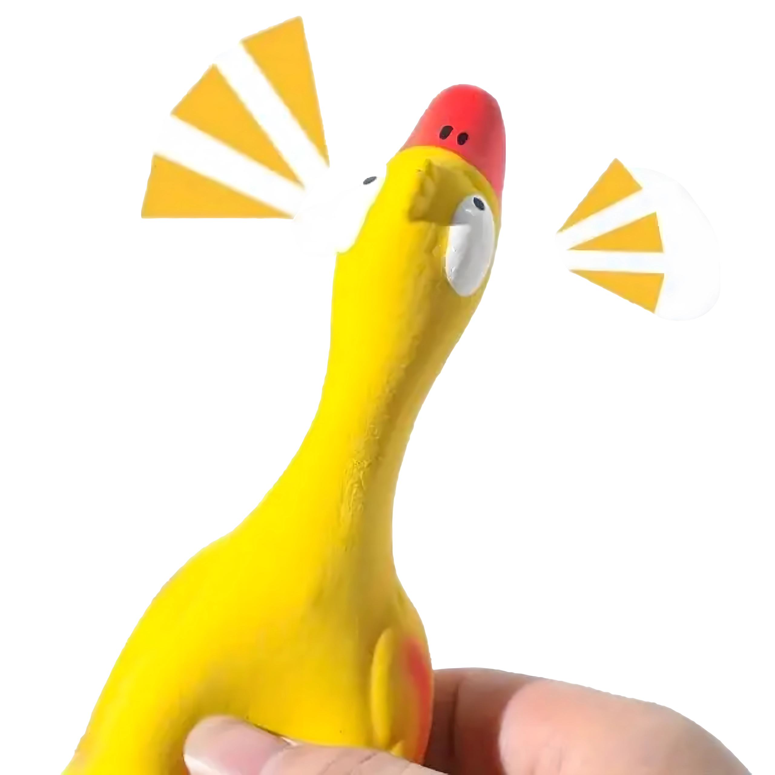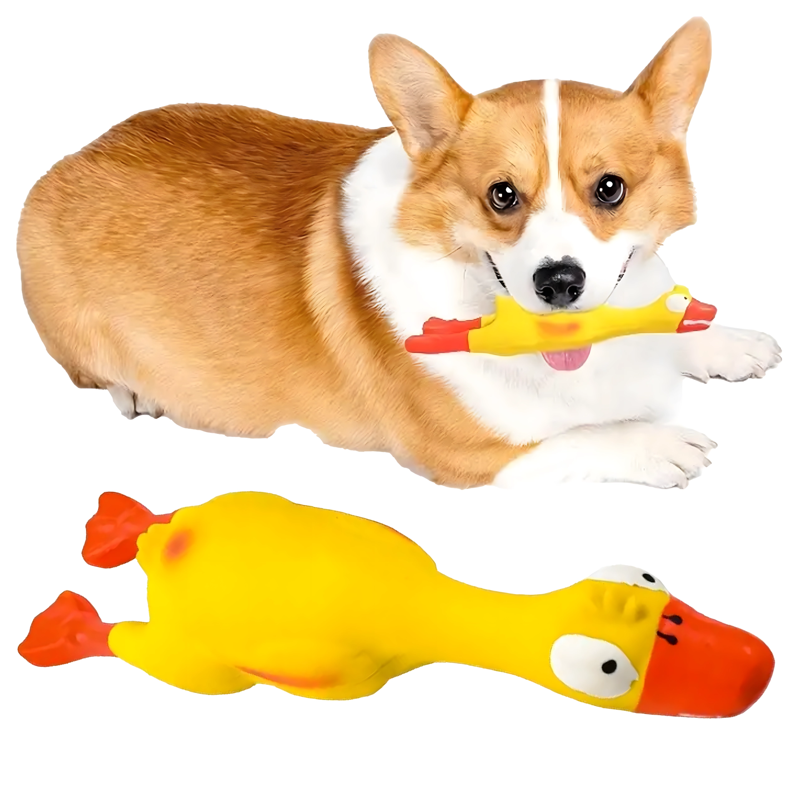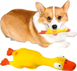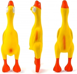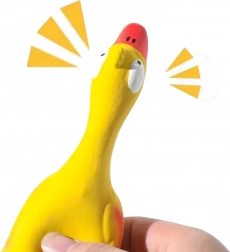 Den pivende gummi-kylling på 22 cm er et alsidigt legetøj til daglig sjov både inde og ude. Den klare gule farve med orange næb og fødder er let at se i græsset og på gulvet, og pivelyden indeni motiverer pålideligt enhver pelsven til leg.