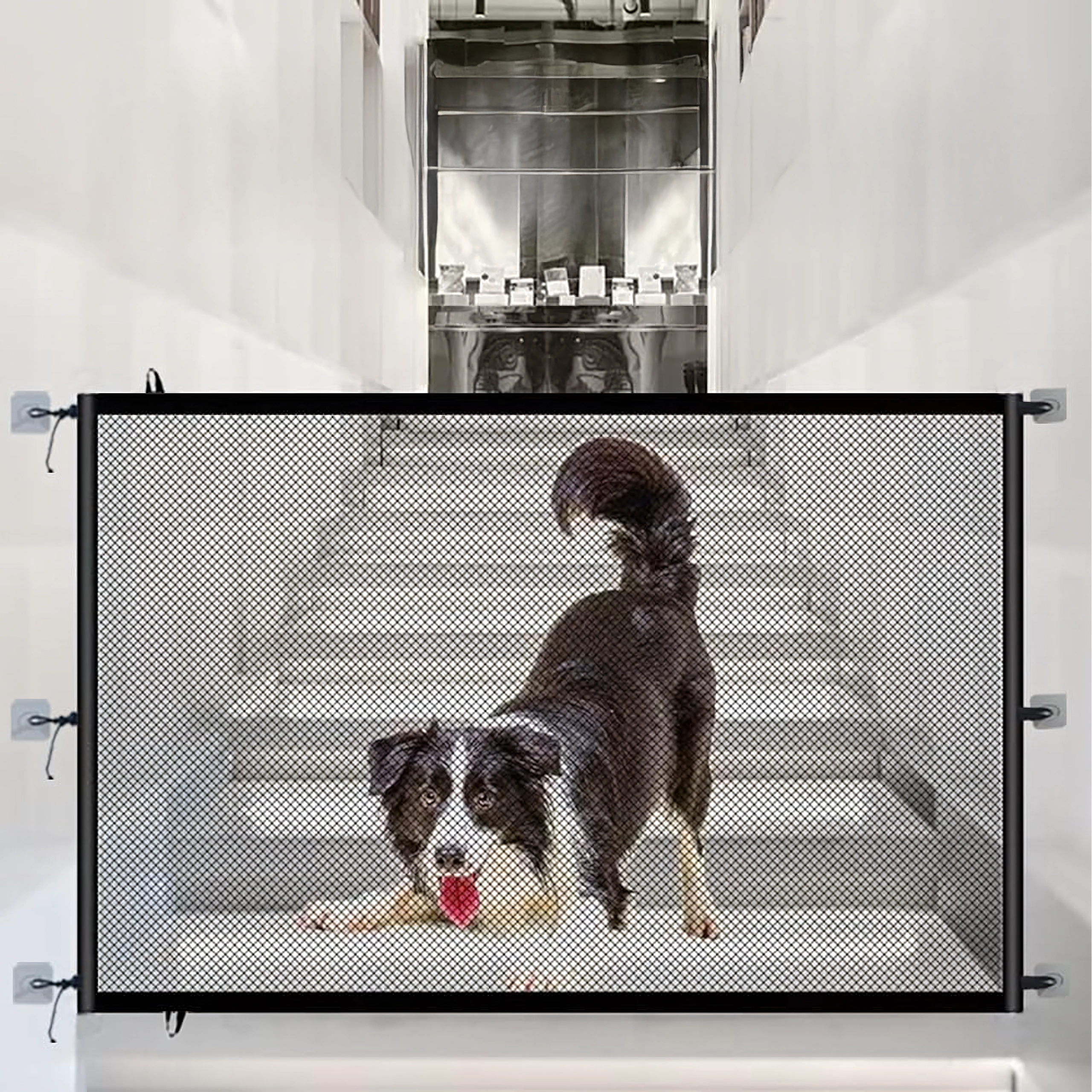 Denne universelle netlåge er den ideelle løsning, når du midlertidigt skal begrænse en hunds eller kats bevægelse. Det gennemsigtige, åndbare net giver dig løbende kontrol over kæledyrene, mens den robuste kant og fastgørelsen til væggen sikrer barrieren stabilitet. Passer til døråbninger, gange og nederste del af trapper.