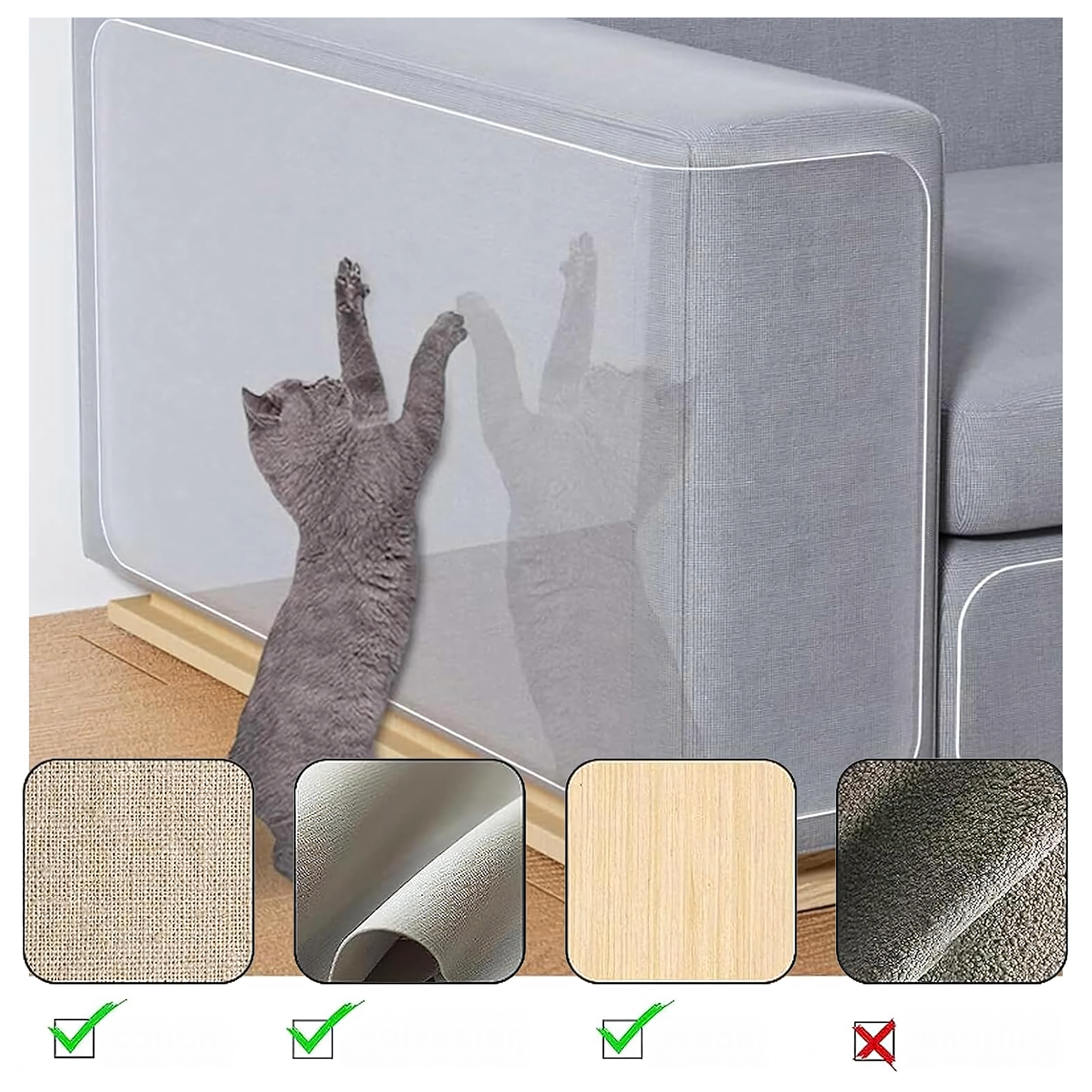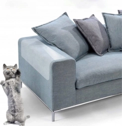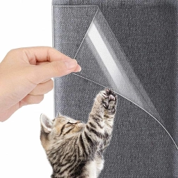 Praktisk sæt med gennemsigtige film 45 × 15 cm (5 stk.), der pålideligt beskytter møbler, døre og polstring mod kattekløer. Filmene er diskrete, nemme at montere, kan fjernes uden at beskadige overfladen og bruges igen. Sikre for kæledyr og ideelle til stof, læder og træ.