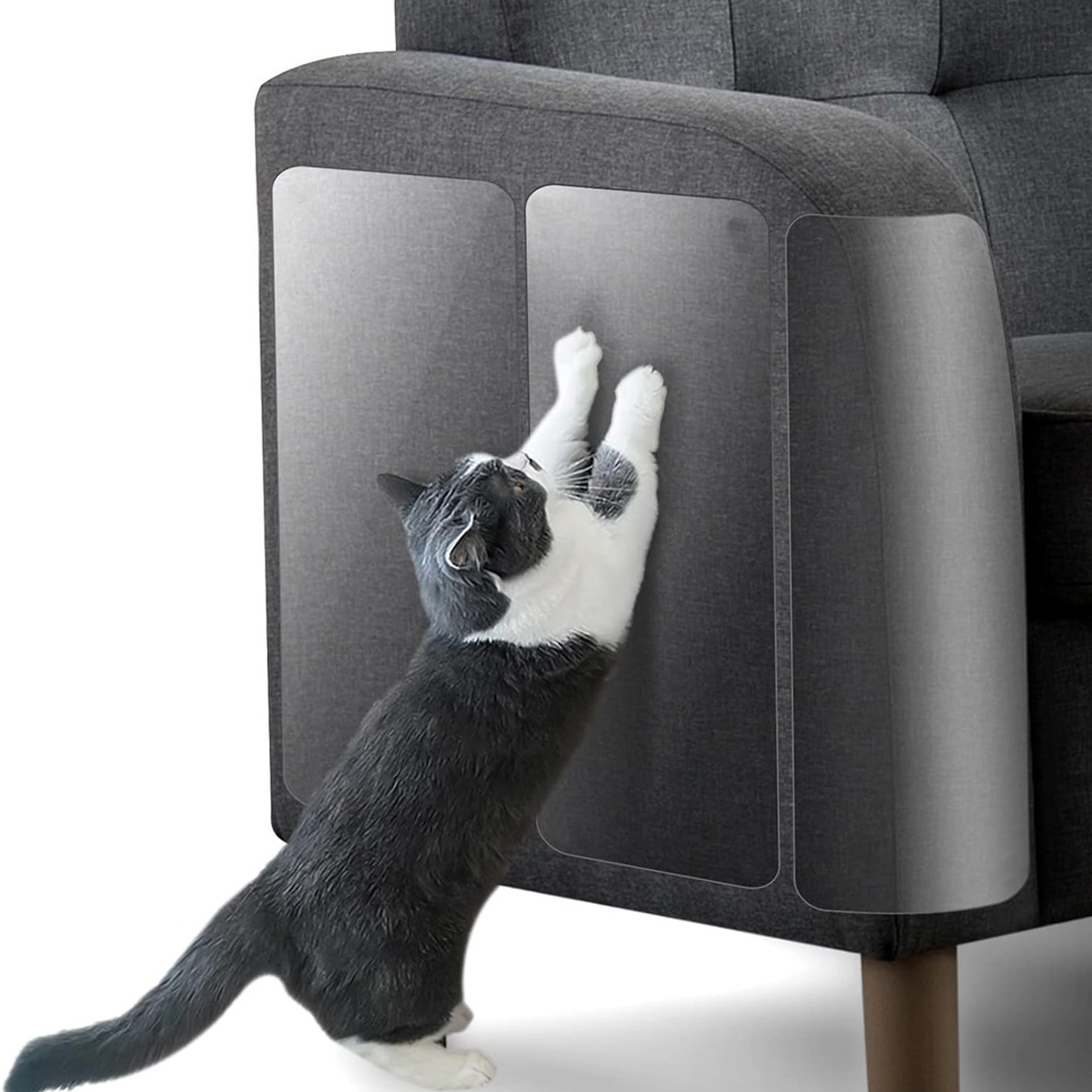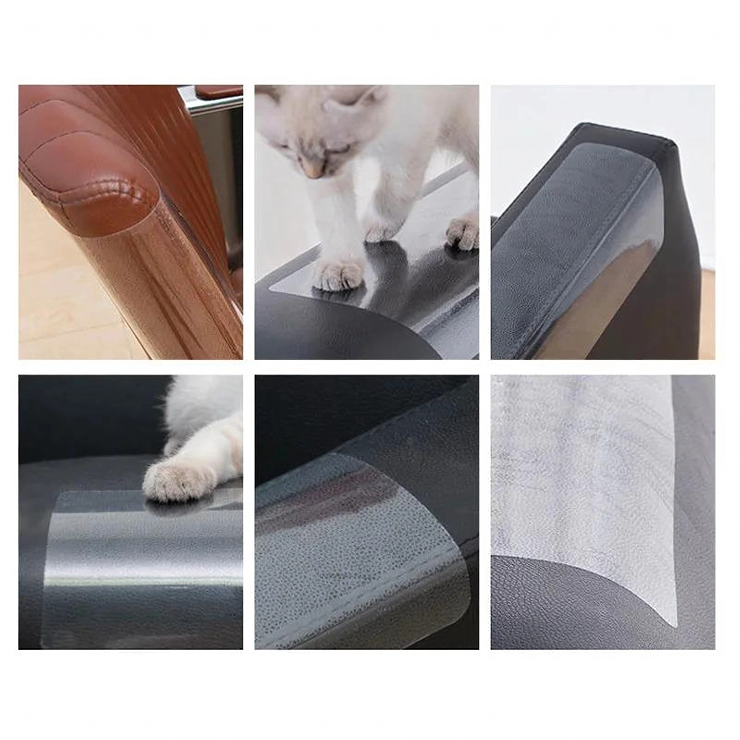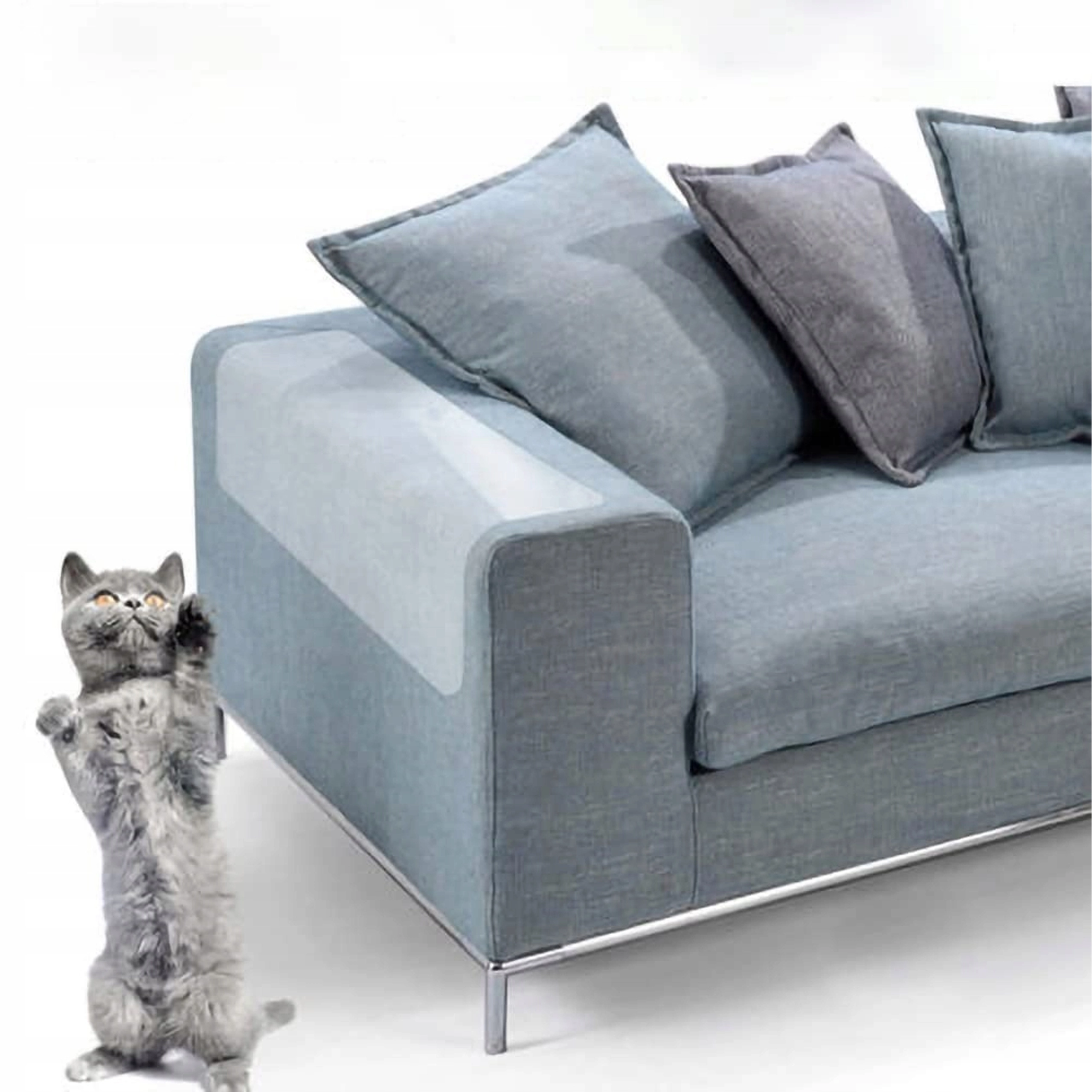 Den transparente film går i ét med møbelfladen og stopper effektivt kattens kløer uden at forstyrre indretningens design.