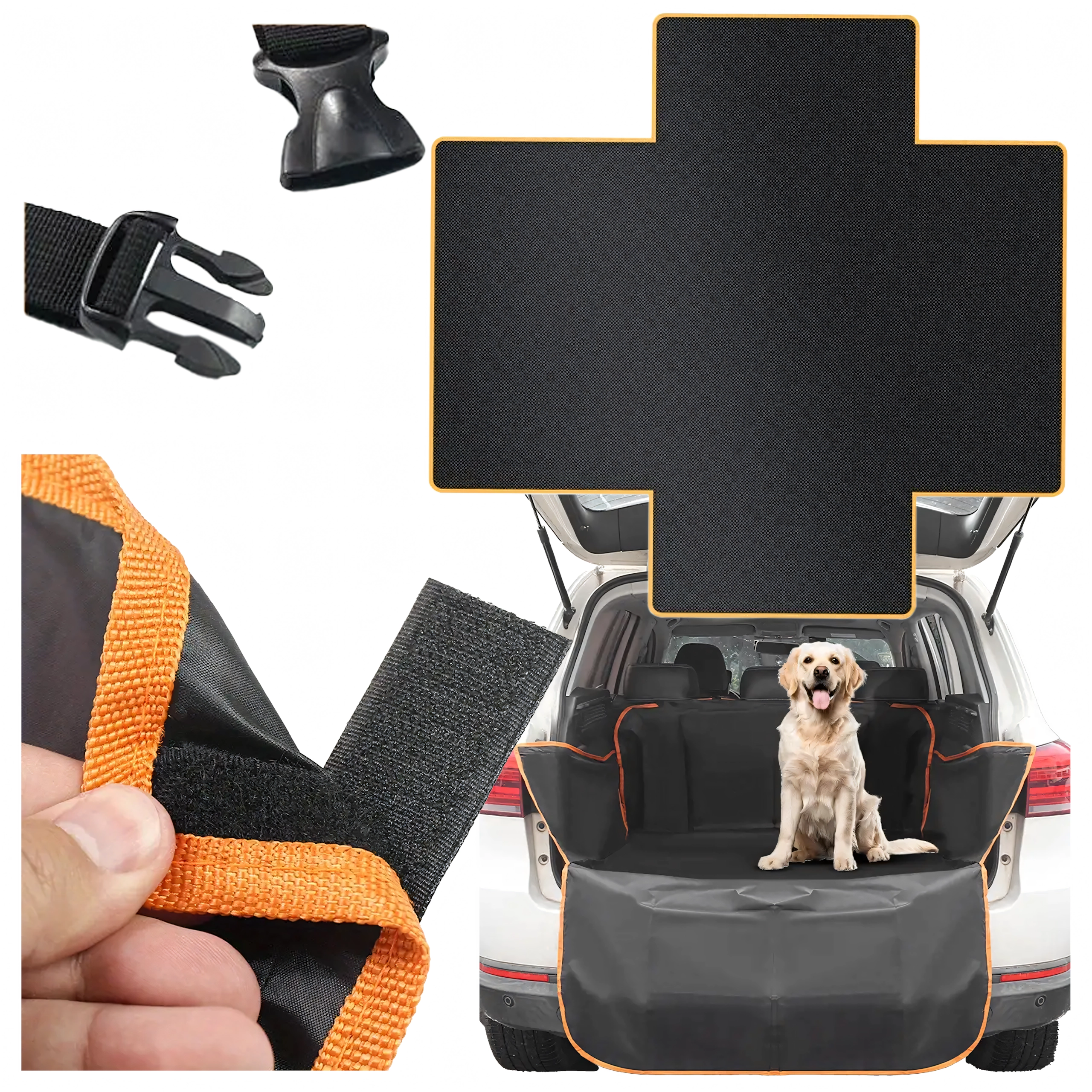 Hold dit bagagerum rent og uden skader med dette vandtætte beskyttelsestæppe til transport af kæledyr og last. Med forhøjede sider og en udklappelig flap over kofangeren forhindrer det effektivt ridser, snavs og fugt. Montering er hurtig med stropper og velcro, og vedligeholdelsen er gjort på få øjeblikke.