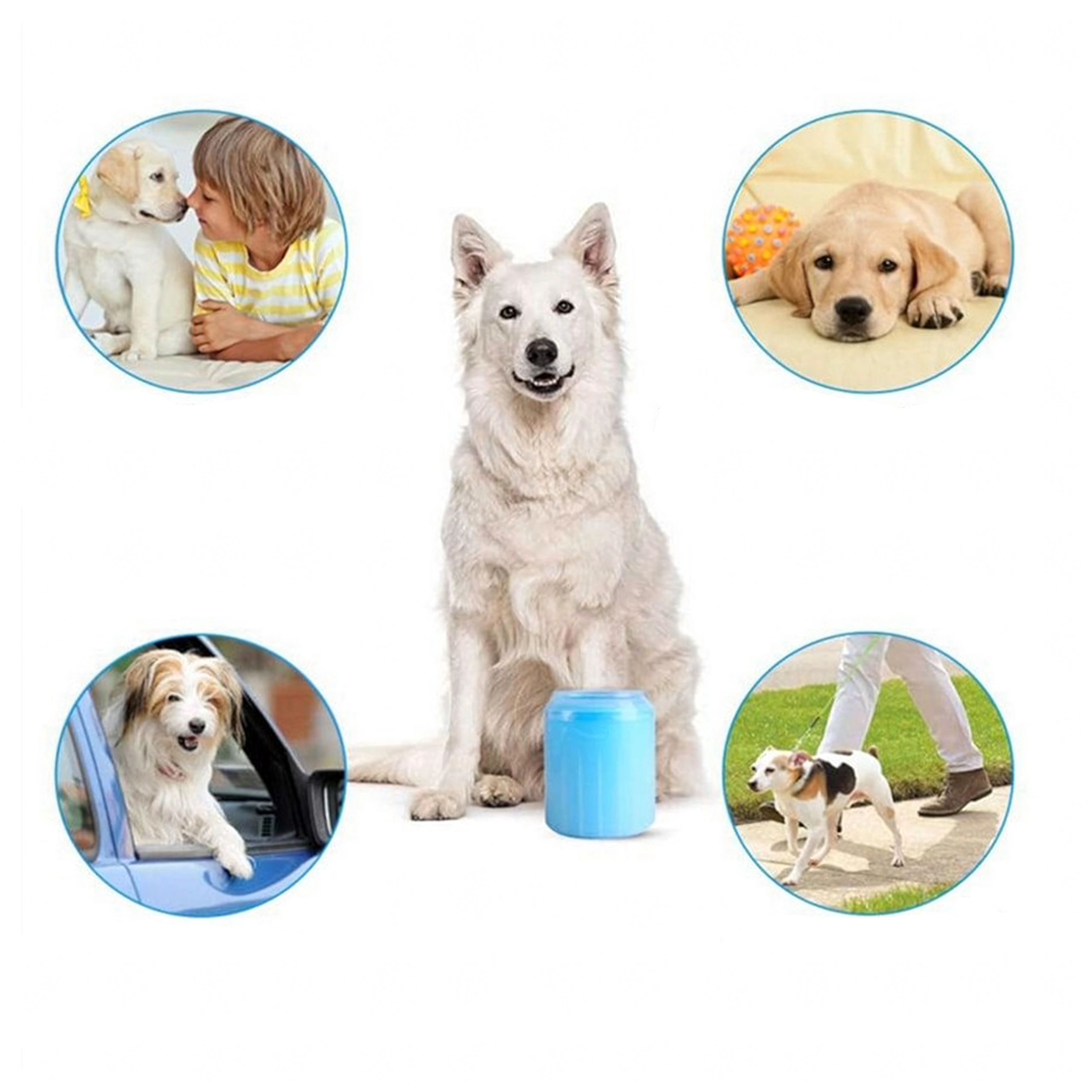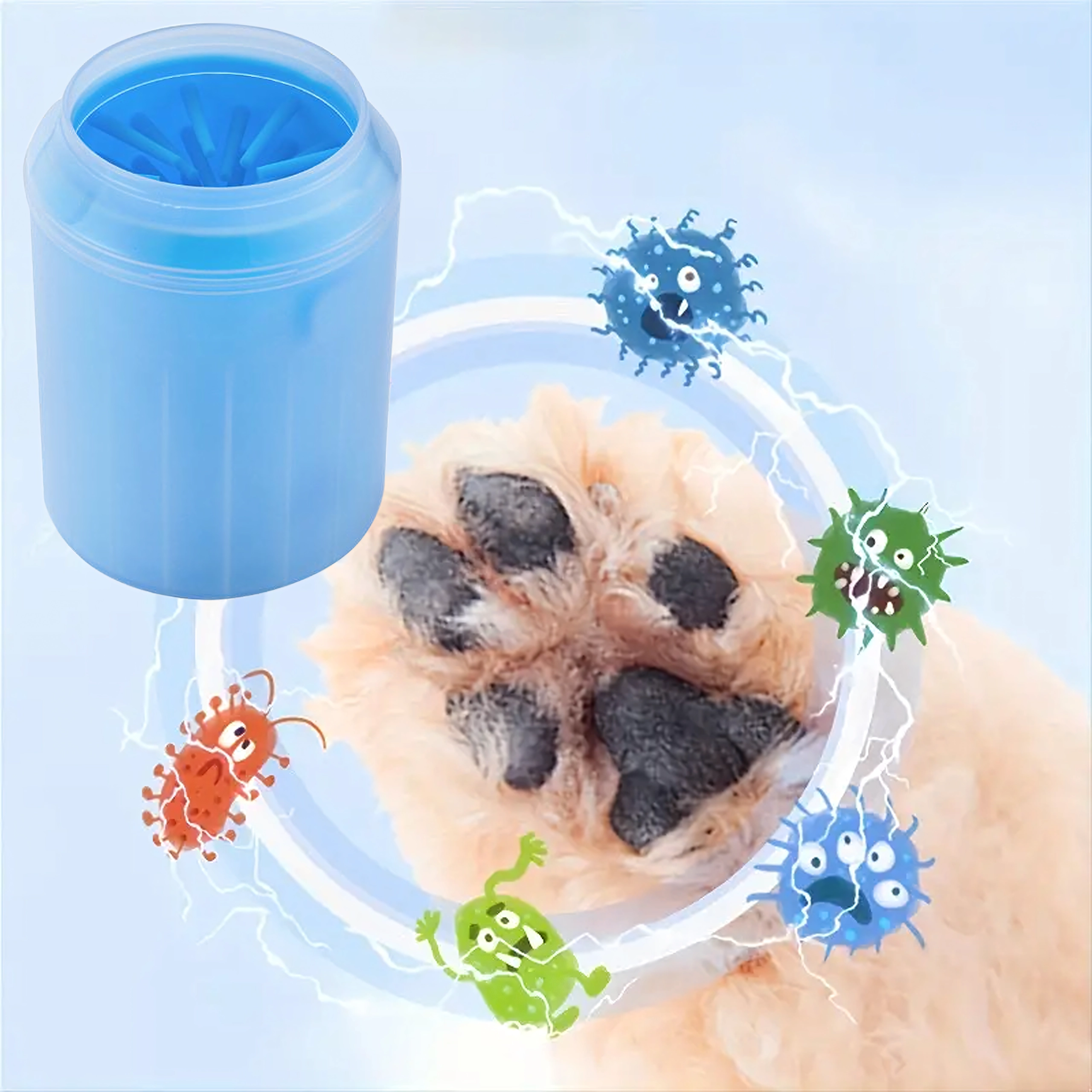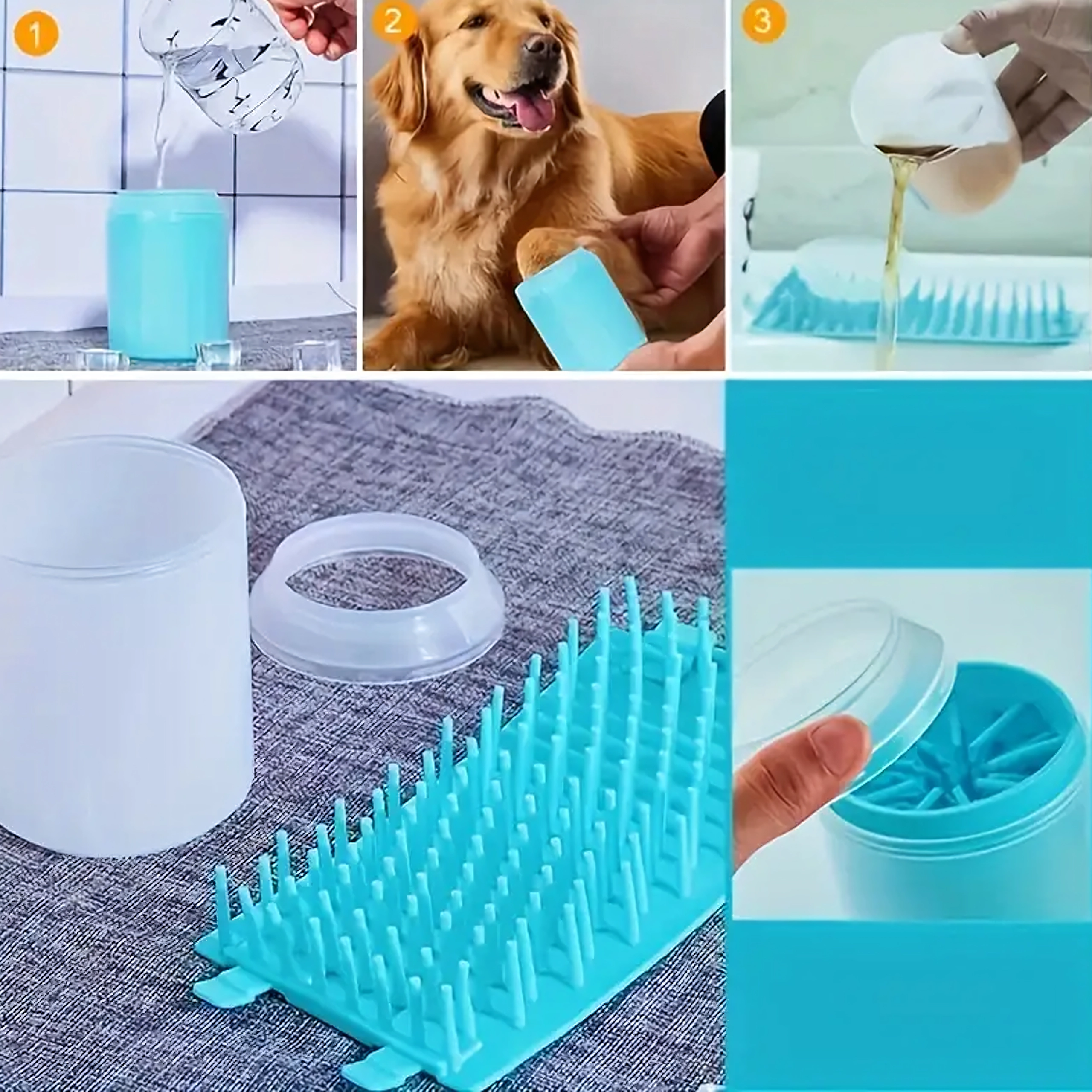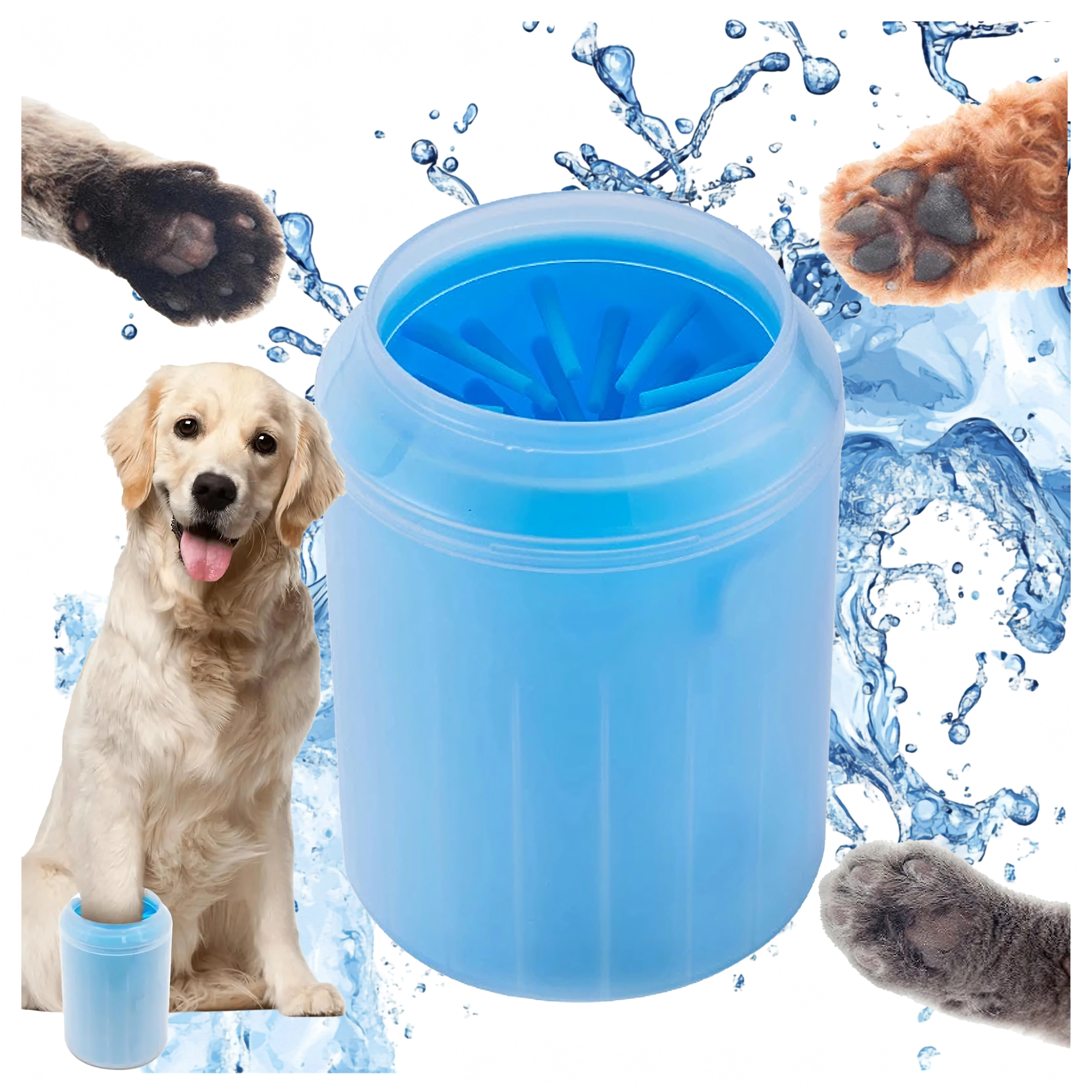 Farvel til beskidte poteaftryk efter gåturen. Denne silikone pote-renser bruger tætte, bløde børster, som ved tilsætning af vand og let rotation hurtigt løsner og skyller snavs væk fra pelslagene og trædepuderne. Ideel til brug hjemme, på rejser og efter ture i parken.