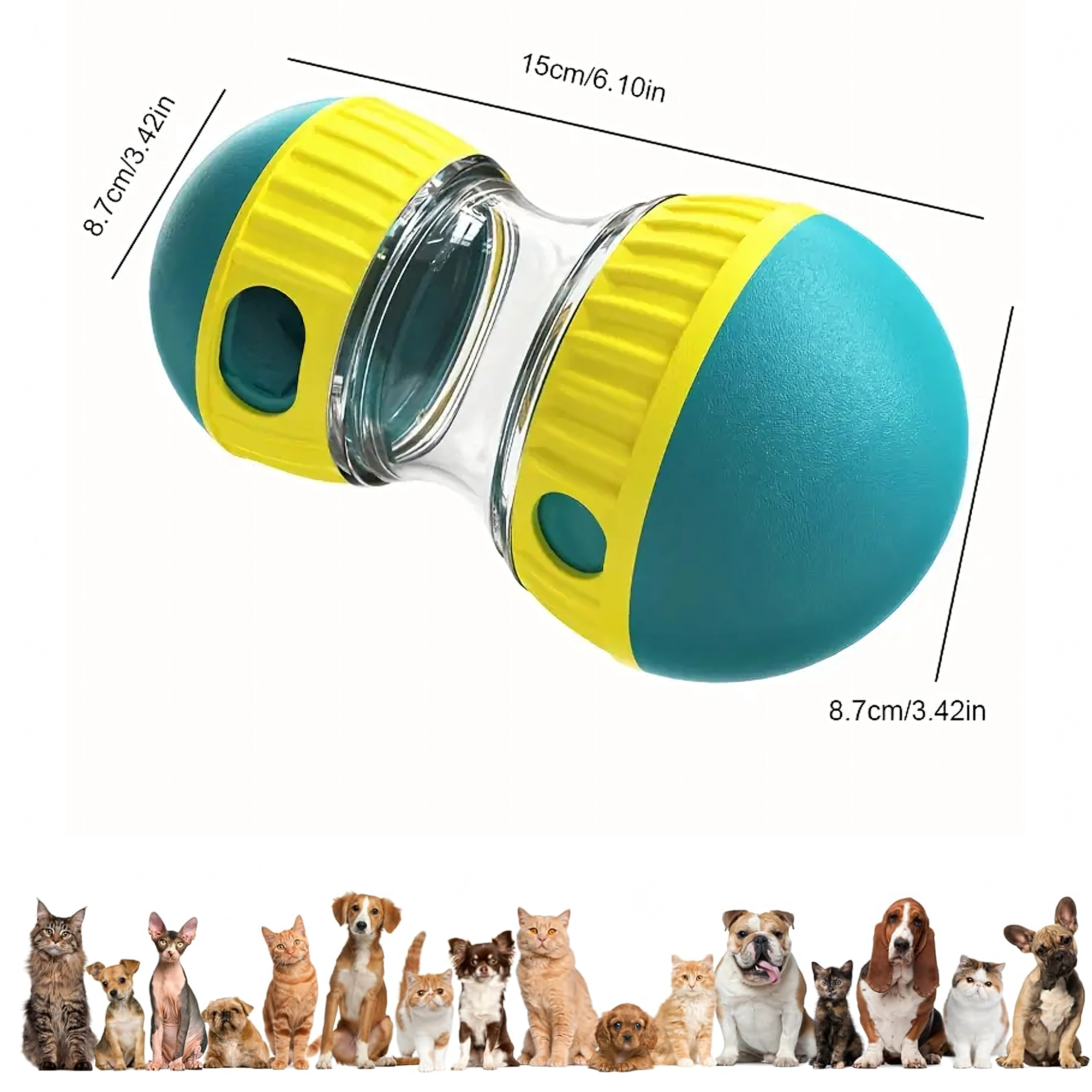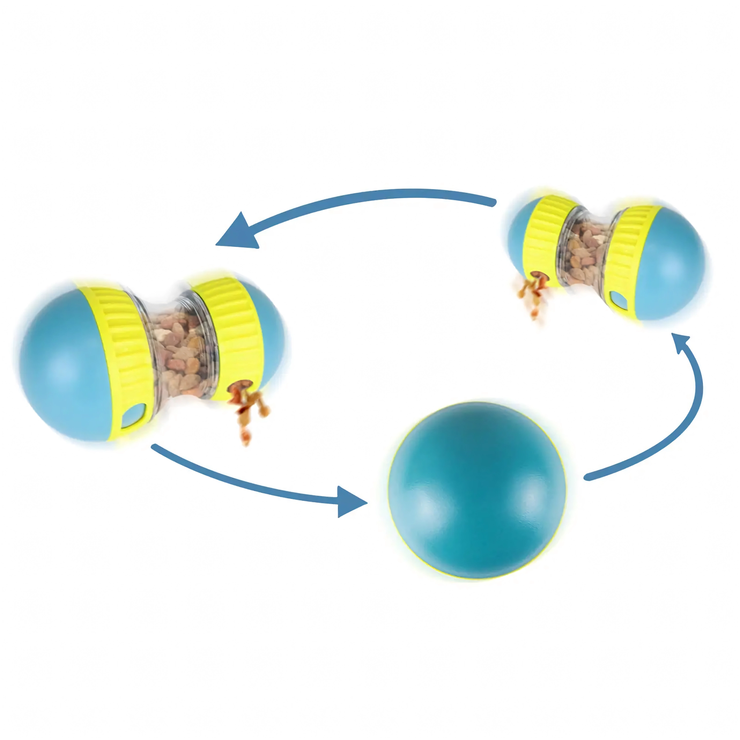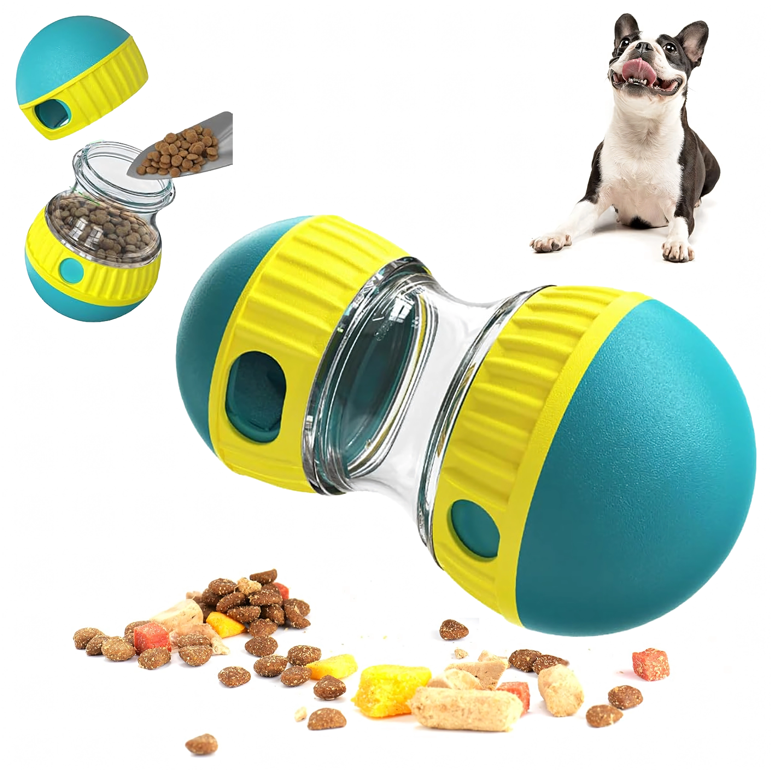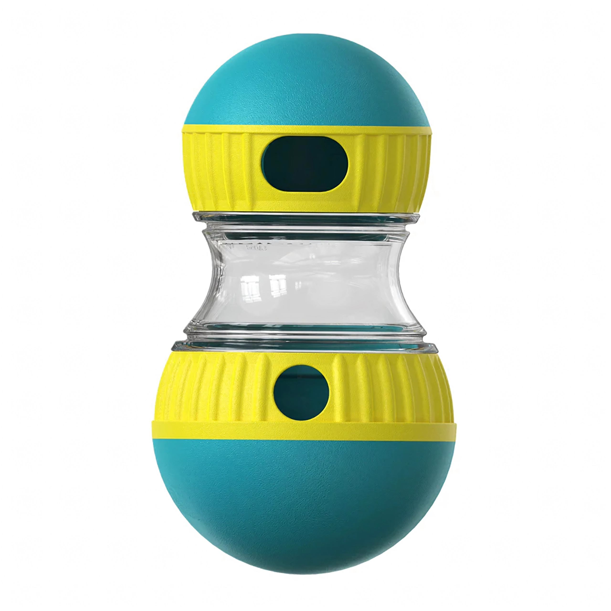 Klog leg og fodring i ét. Det gennemsigtige kammer lader dig se foderpillerne indeni, de justerbare åbninger frigiver godbidder gradvist, og hunden motiveres til at rulle og puffe til legetøjet med pote eller snude. Takket være den langsommere dosering fremmer den korrekt fordøjelse og mindsker slugning.