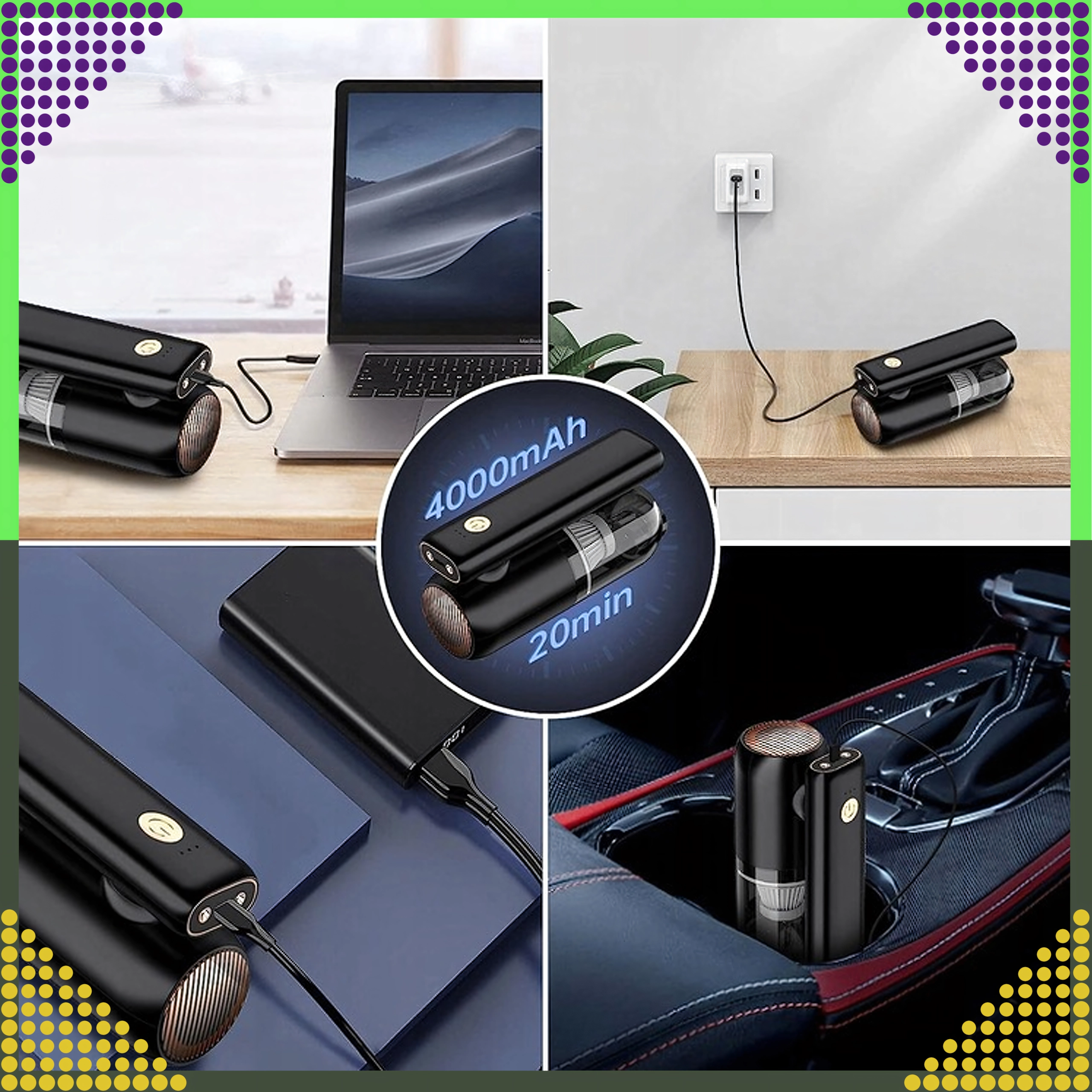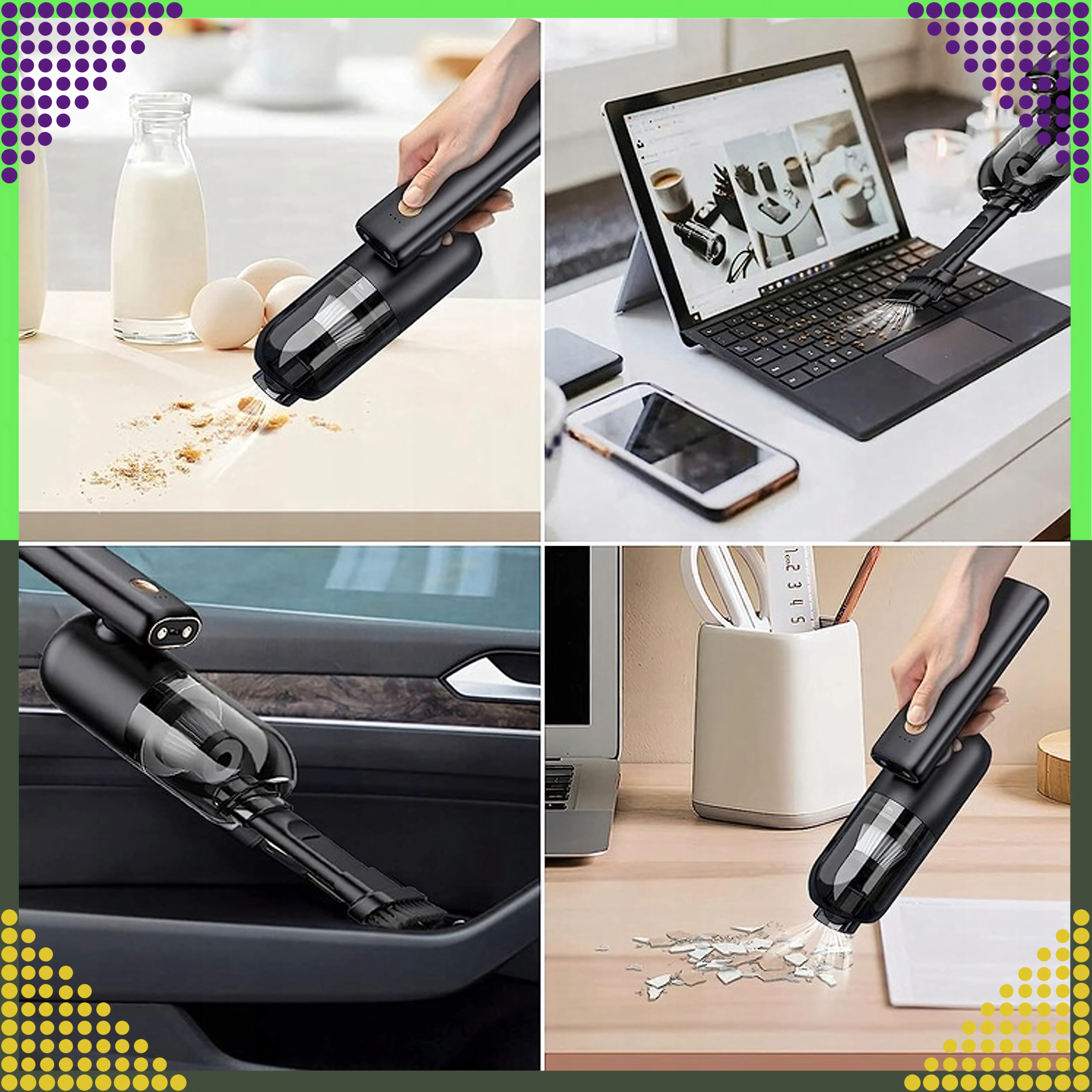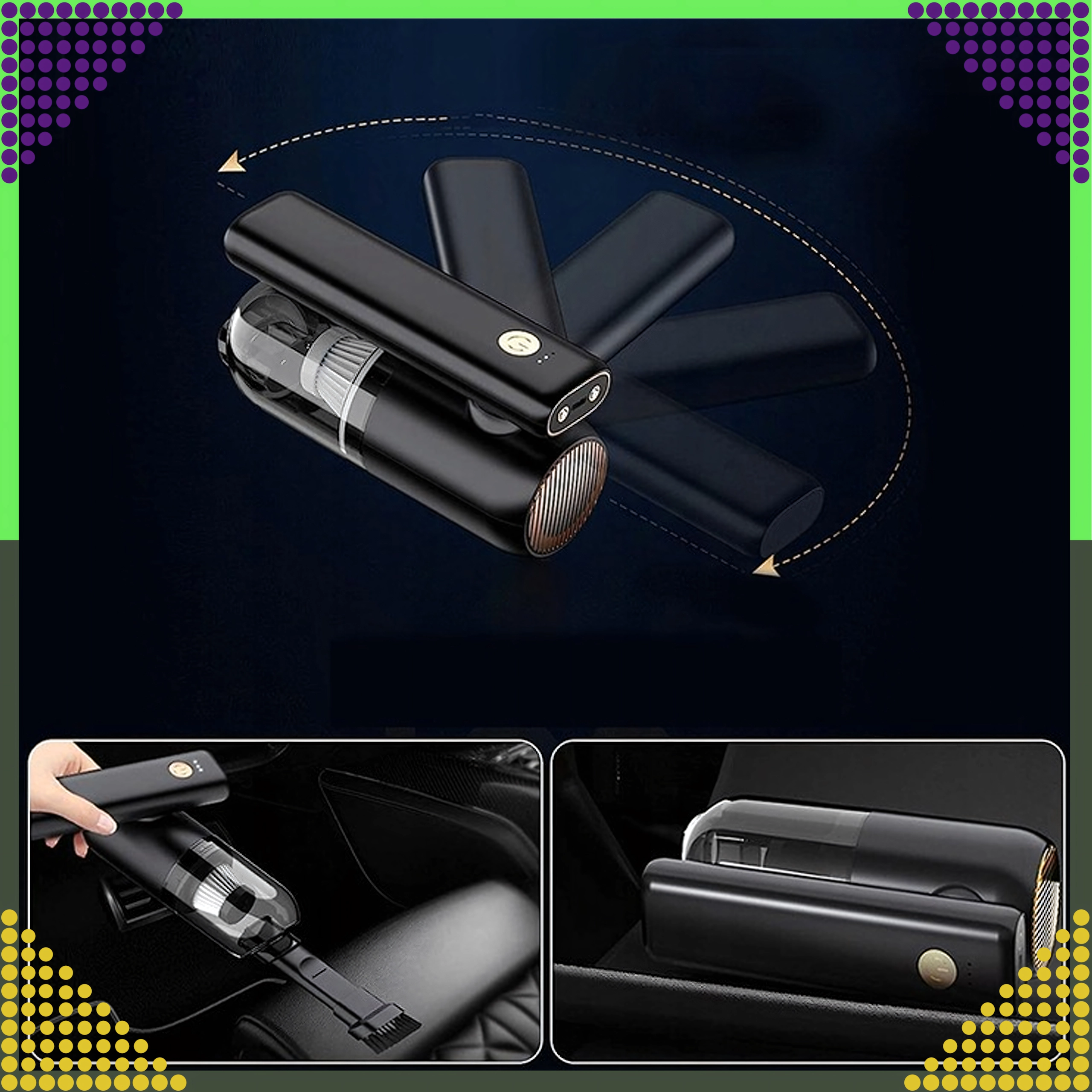 Praktisk posefri støvsuger med 50 W motor og arbejdstryk op til 5000 Pa fjerner let hverdagssnavs i bilens kabine og i hjemmet. Den lette konstruktion og trådløse drift lader dig gøre rent hvor som helst uden kabelbegrænsninger, mens den gennemsigtige støvbeholder gør det nemt at tømme hurtigt.