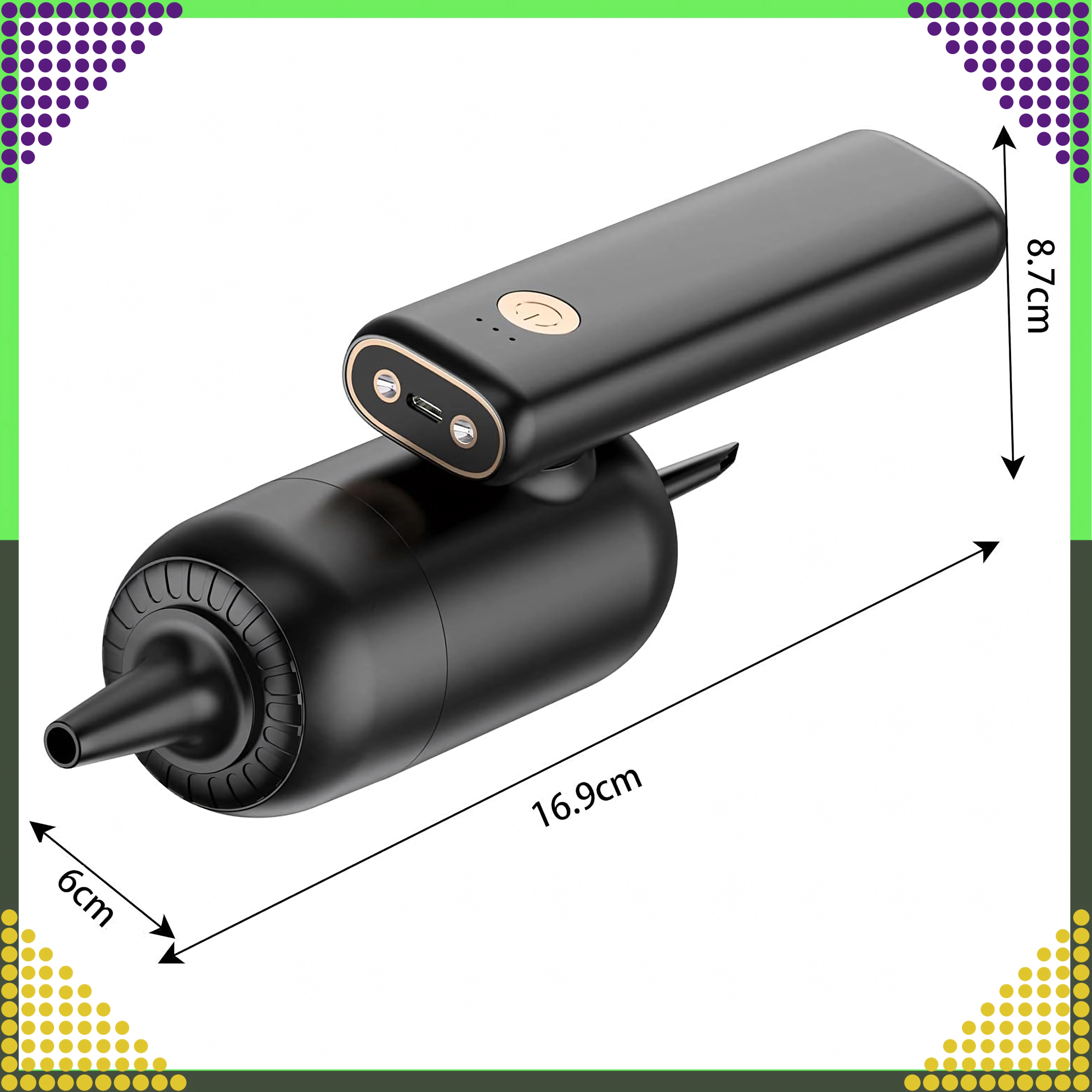 - 2‑i‑1: støvsugning og blæs til alsidig brug i bil og hjem